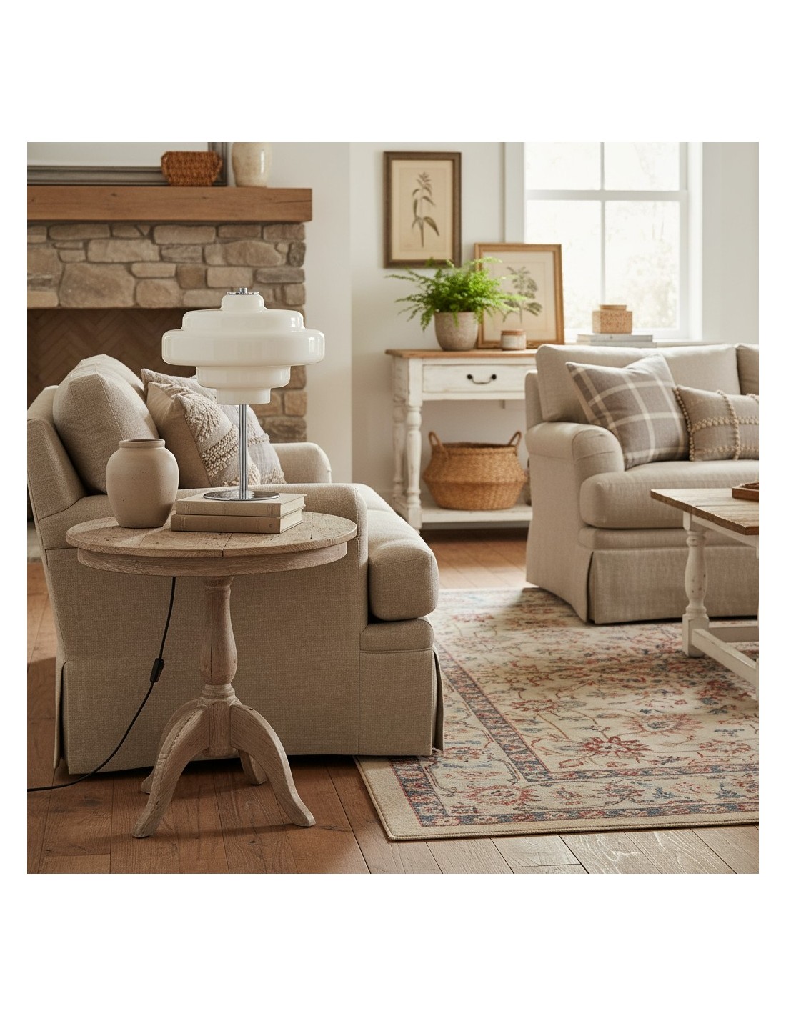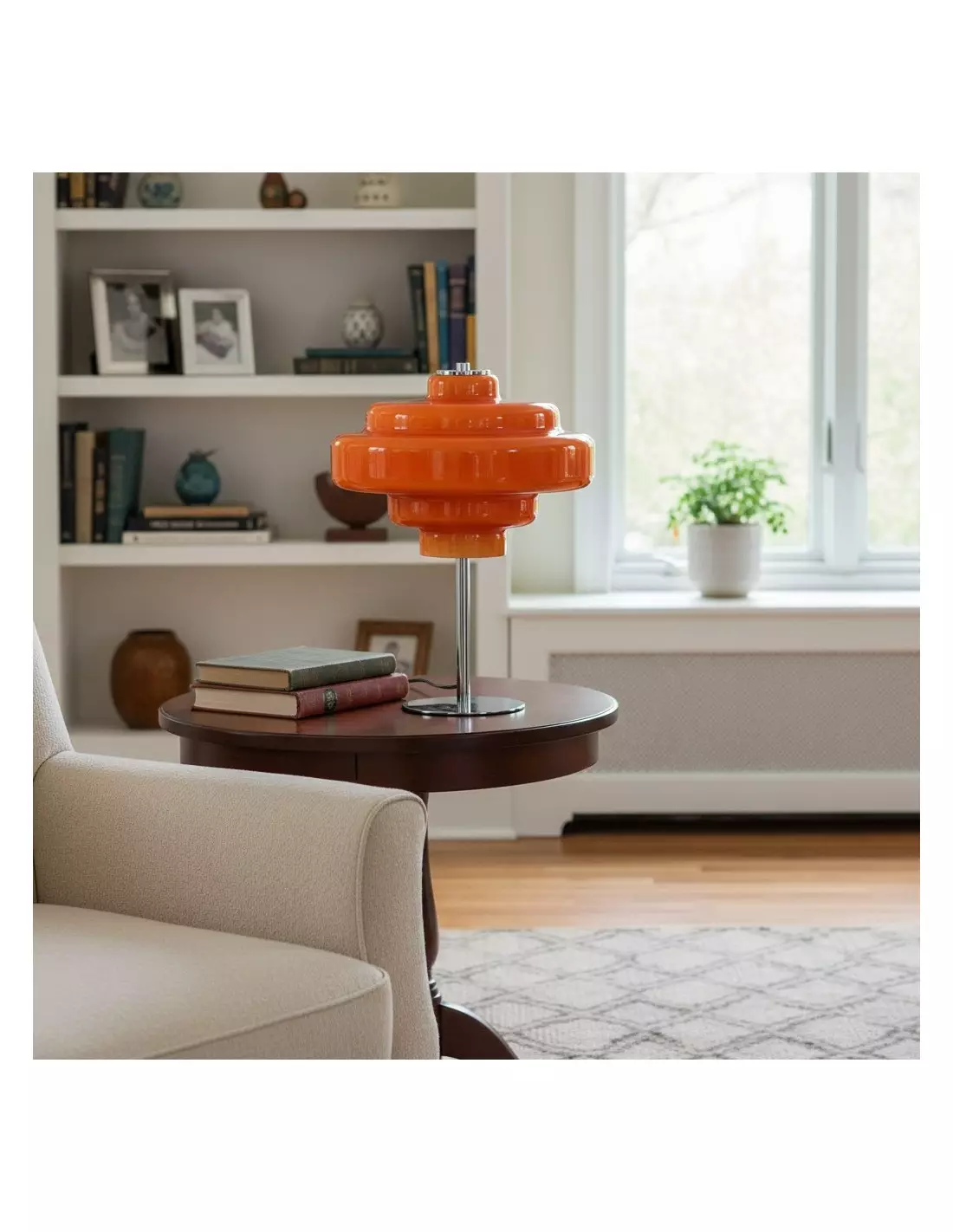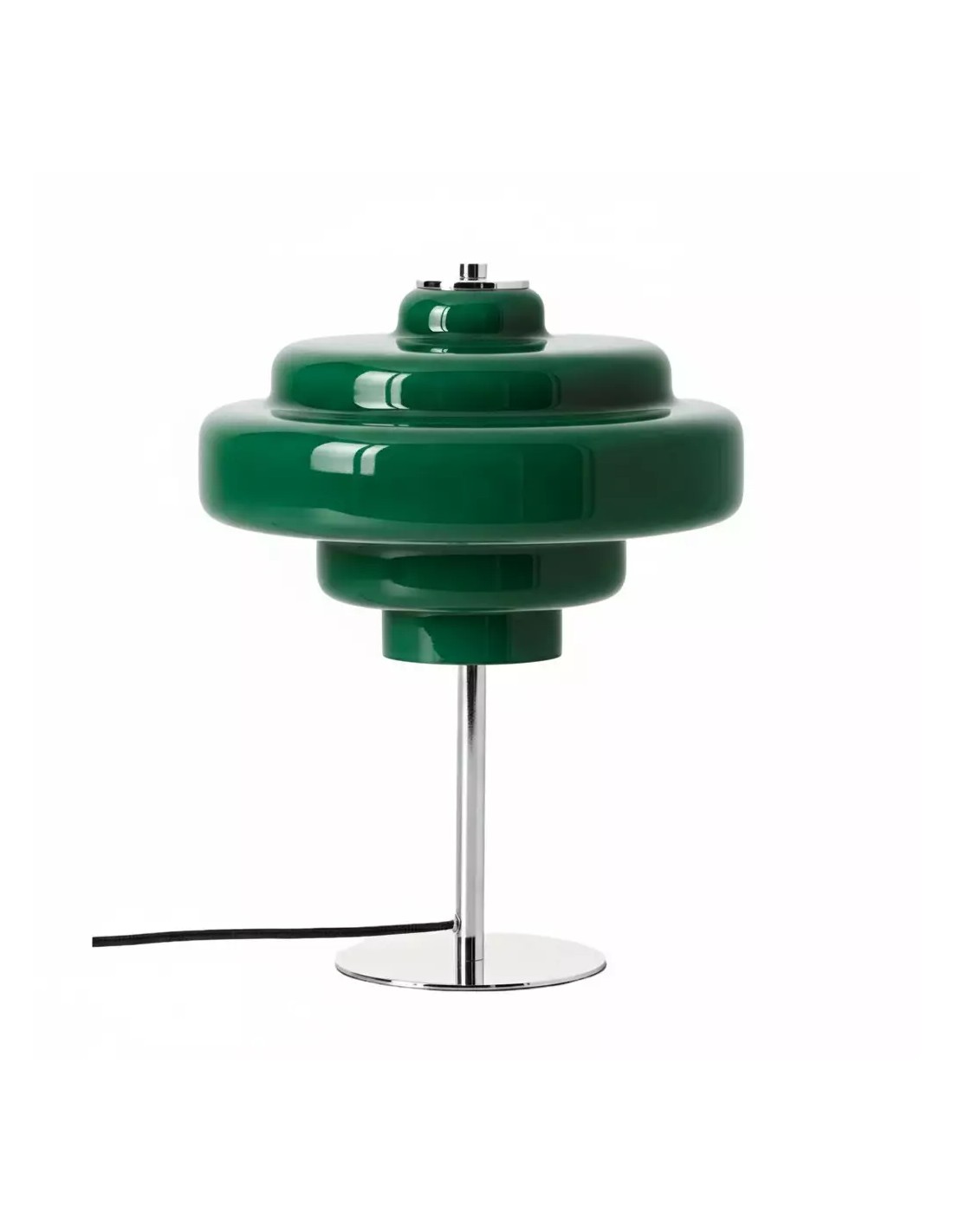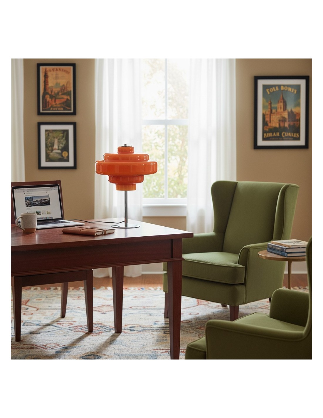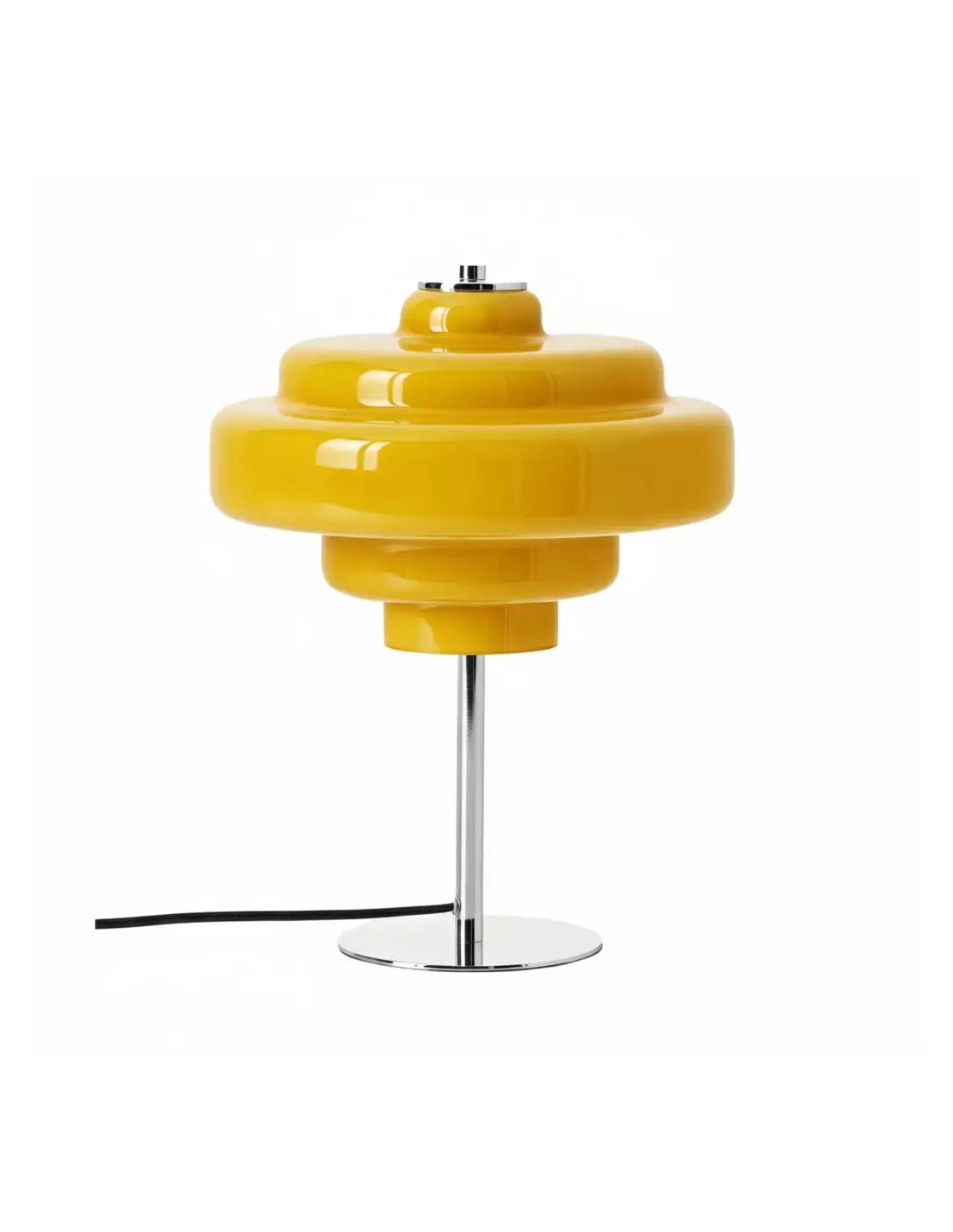 Elegante glazen tafellamp met een strak silhouet. Deze lamp verspreidt zacht licht voor een warme, uitnodigende gloed. Uitgerust met een handige schakelaar op het snoer en een verfijnde compositie van glas en metaal, past hij naadloos in zowel moderne als klassieke interieurs.