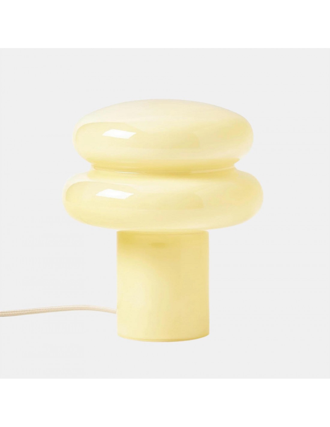 Deze tafellamp is voorzien van strak opaalglas met een zachtgele of roze kap, die een warme en uitnodigende gloed uitstraalt – perfect voor een ontspannen sfeer. De compacte paddenstoelvorm is zowel modern als klassiek en past naadloos in elk interieur. Het met stof omwikkelde snoer voegt een vleugje verfijning toe en garandeert tegelijkertijd veiligheid.