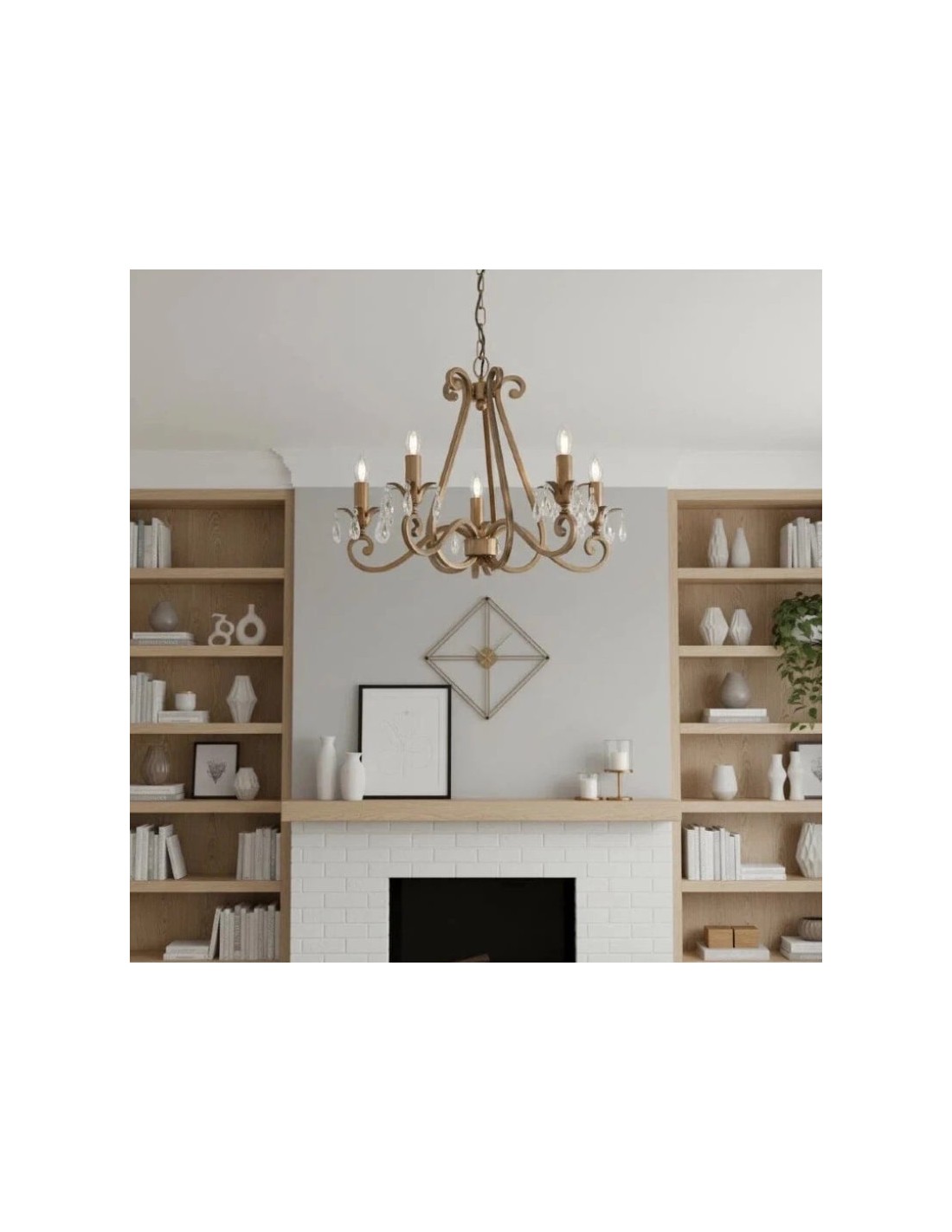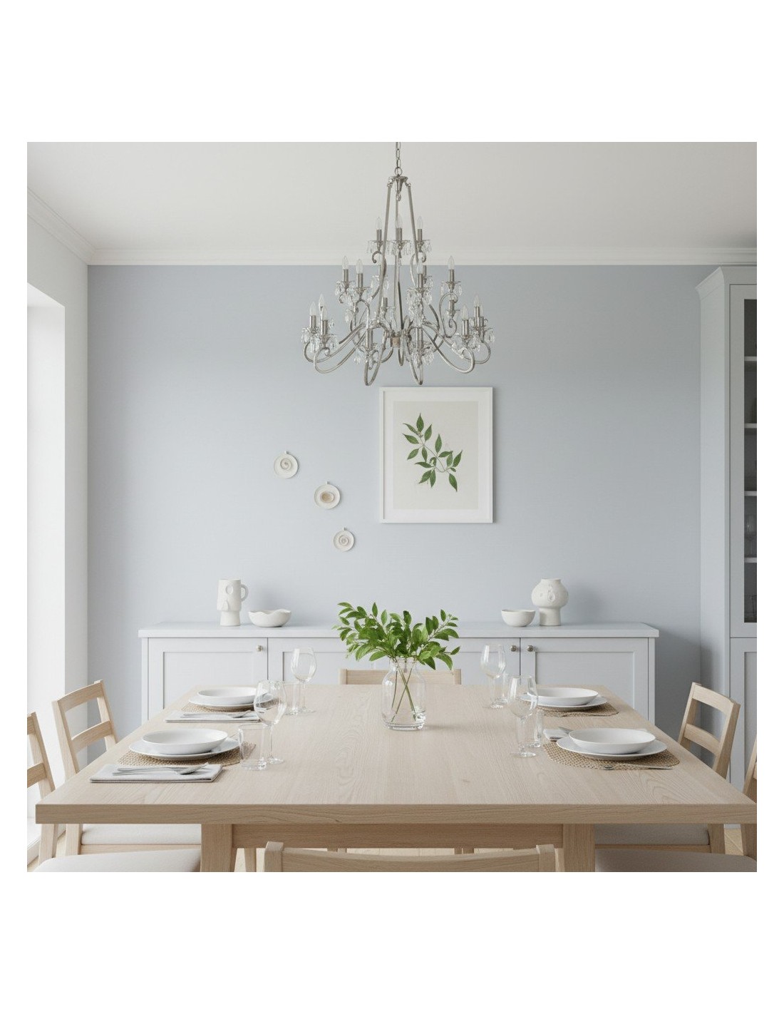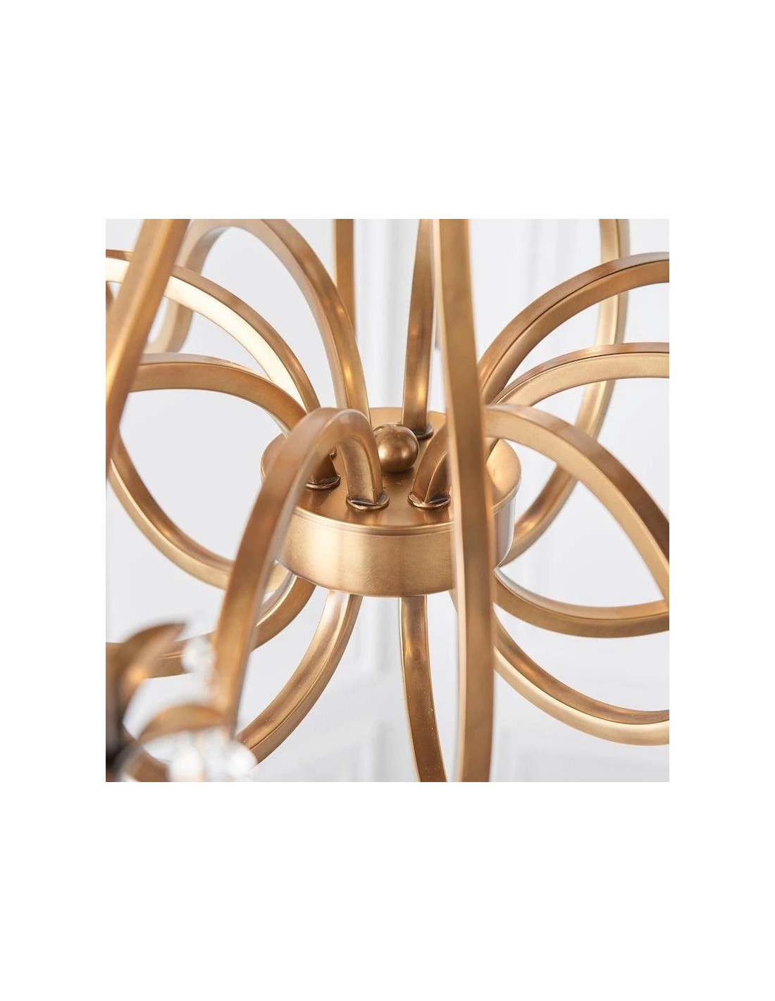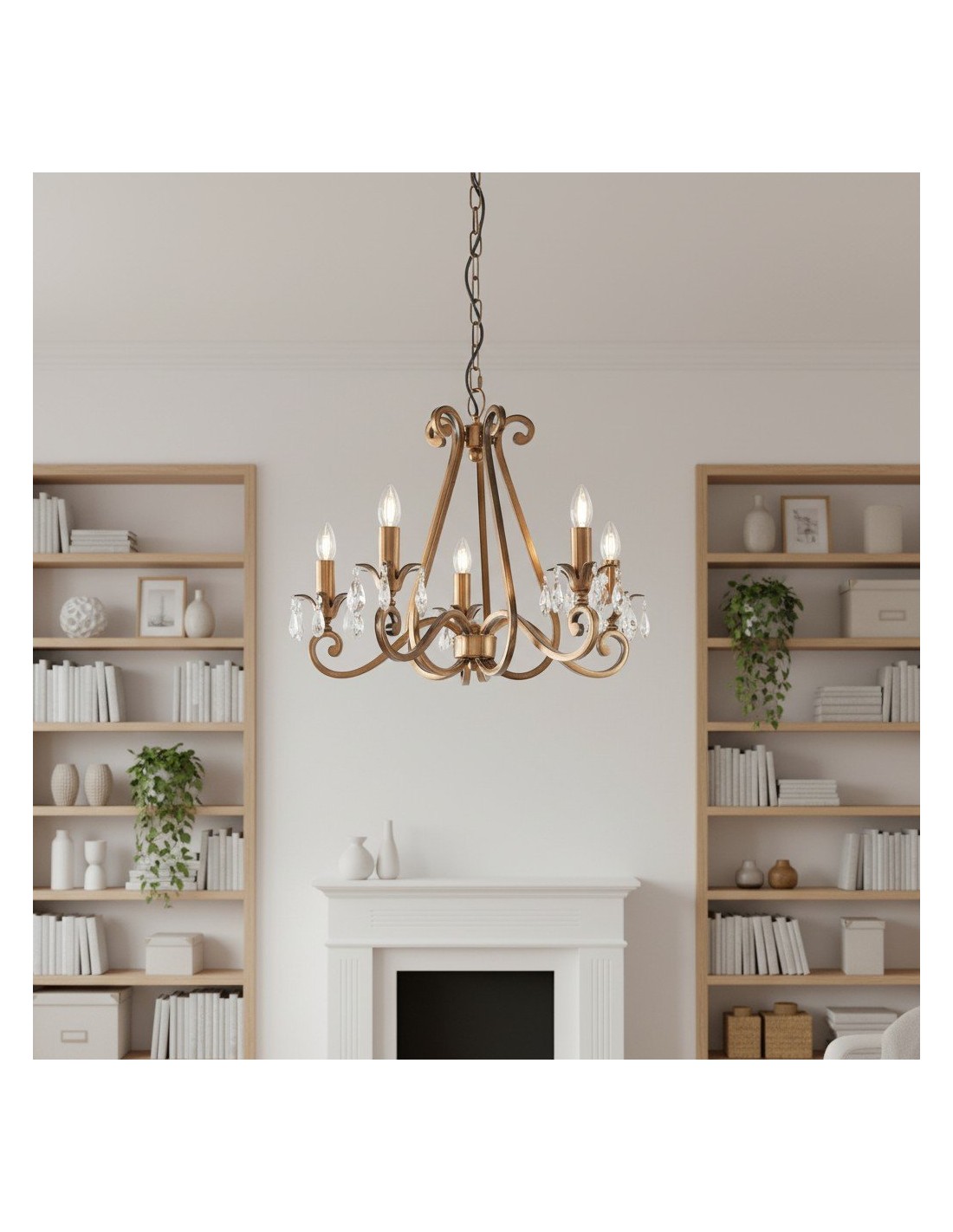 Deze prachtige lamp heeft sierlijk gebogen armen, versierd met delicate kristallen druppels en kappen die bij elke reflectie fonkelen. De verstelbare ketting maakt veelzijdige installatie mogelijk in woonkamers, eetkamers of hoge hallen, en verspreidt een warme en uitnodigende gloed.