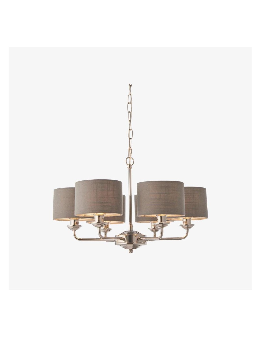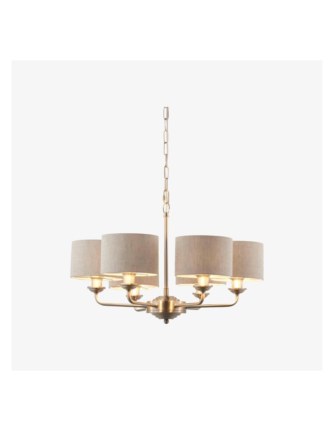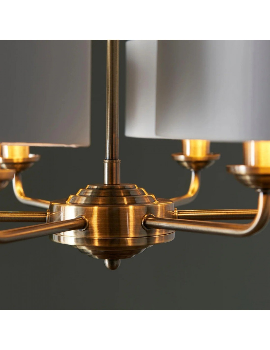 Deze kroonluchter combineert een moderne, klassieke esthetiek met een verfijnd silhouet met meerdere armen, waardoor een zachte en evenwichtige gloed ontstaat door de stoffen kappen. Ontworpen als een opvallende kroonluchter, is hij geschikt voor eetkamers, woonkamers en restaurants, en voegt hij een stijlvolle en tijdloze uitstraling toe aan elk interieur.