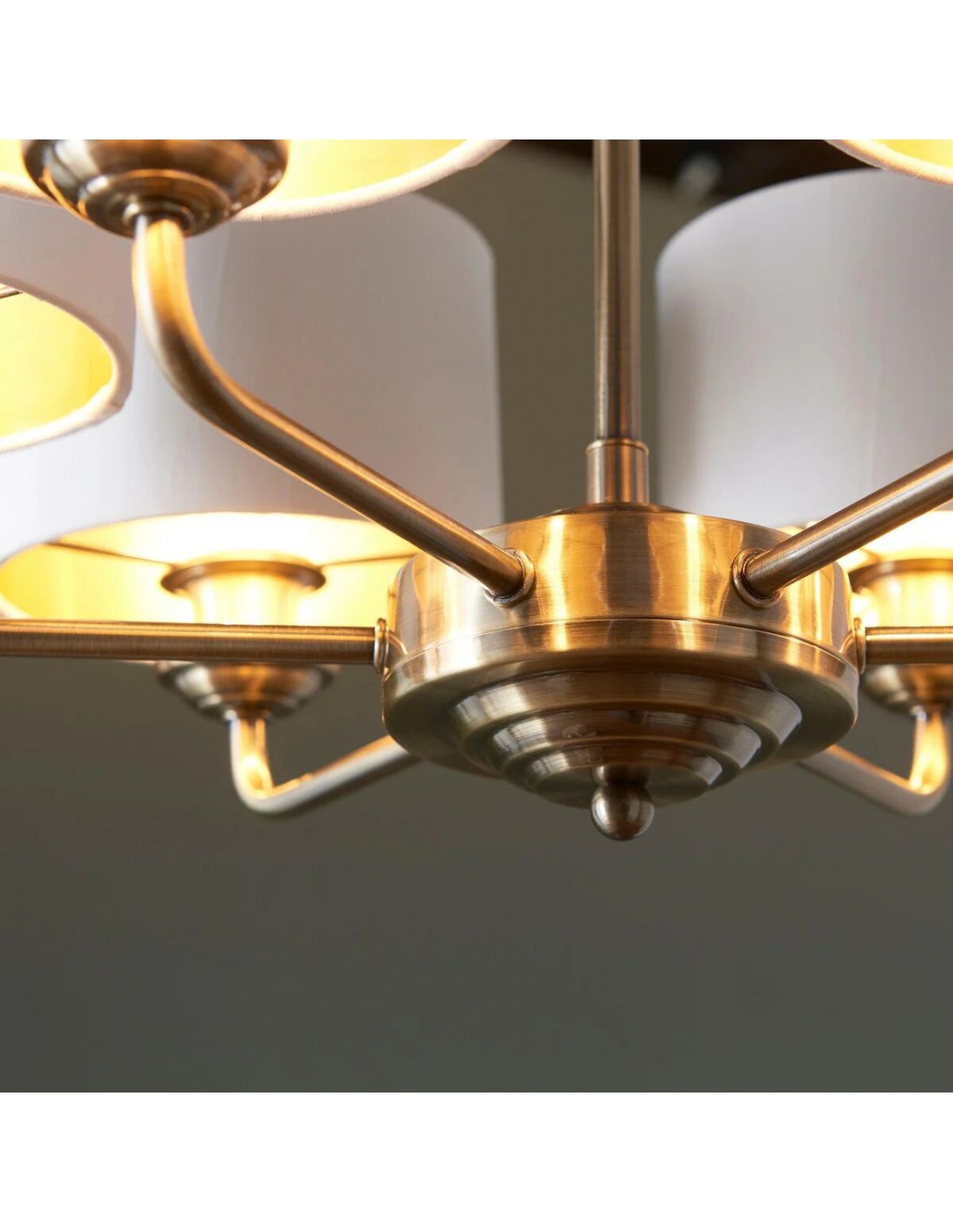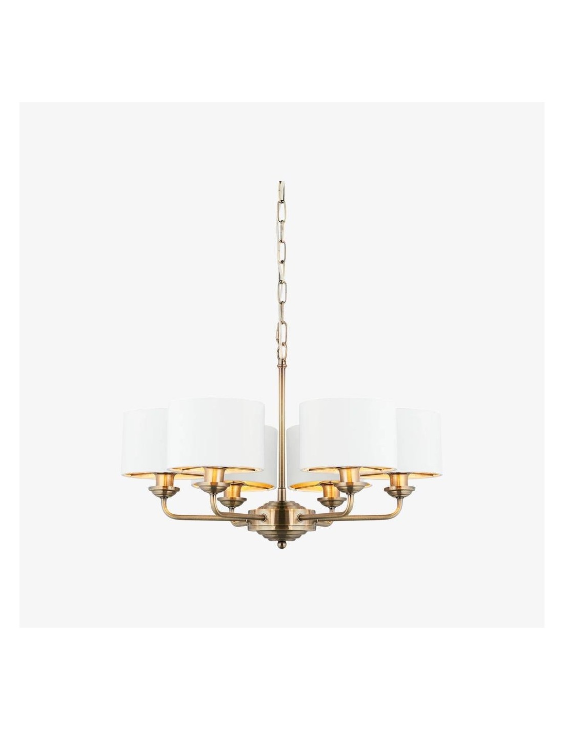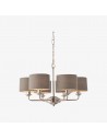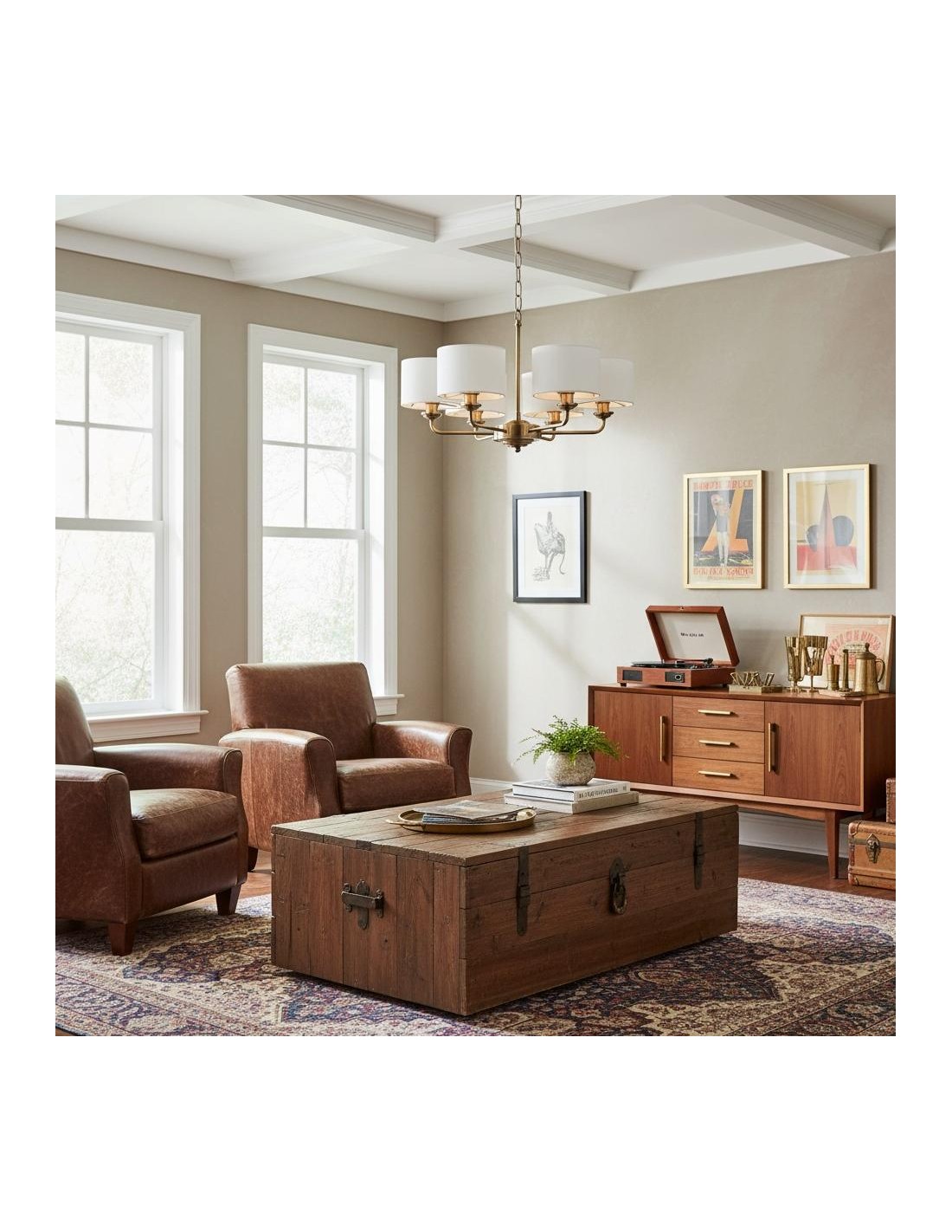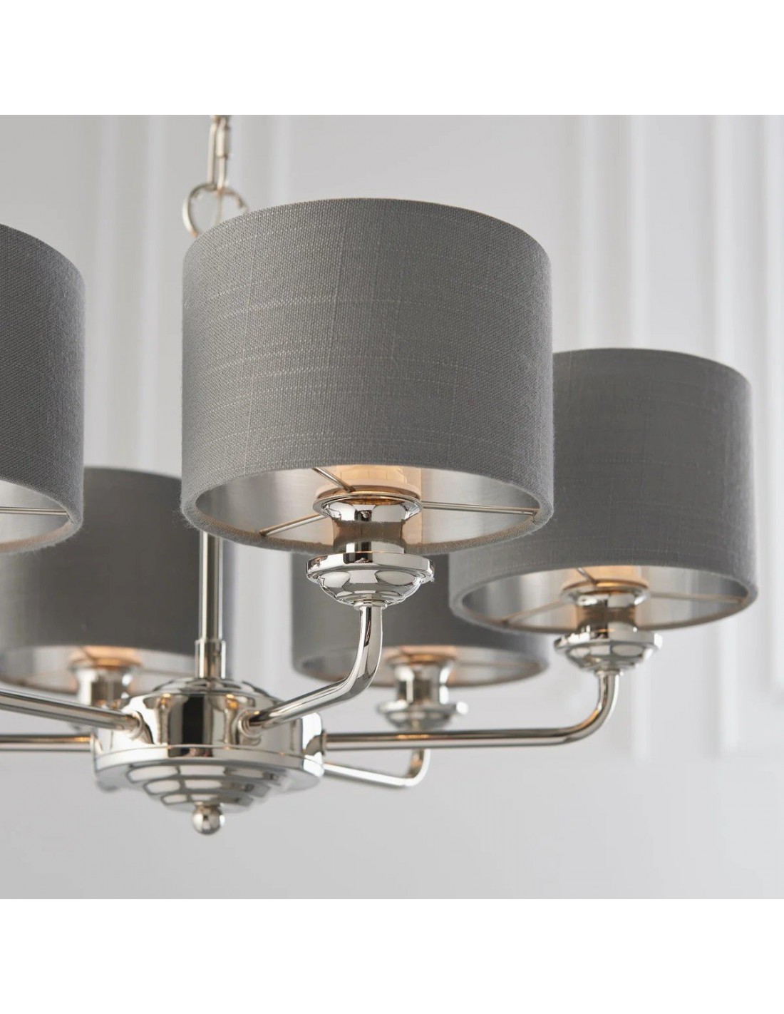 Deze kroonluchter combineert een moderne, klassieke esthetiek met een verfijnd silhouet met meerdere armen, waardoor een zachte en evenwichtige gloed ontstaat door de stoffen kappen. Ontworpen als een opvallende kroonluchter, is hij geschikt voor eetkamers, woonkamers en restaurants, en voegt hij een stijlvolle en tijdloze uitstraling toe aan elk interieur.