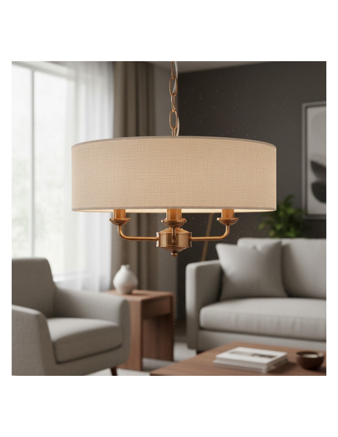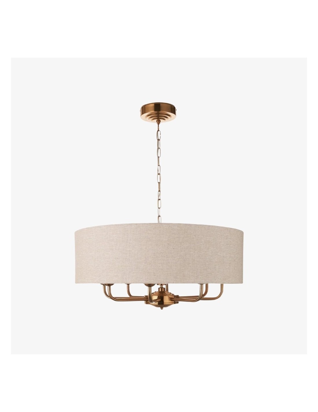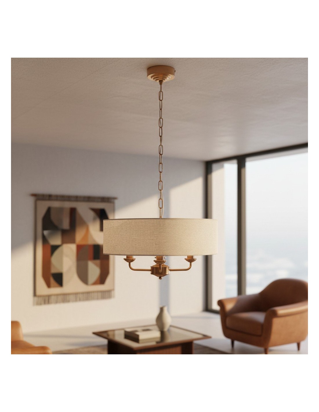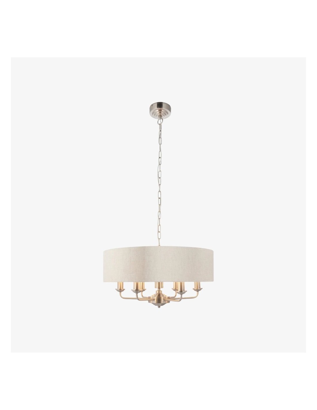 De Tela hanglamp straalt tijdloze elegantie uit met een ontwerp met meerdere armen en zachte linnen of geplooide kappen, wat resulteert in een sierlijk, sculpturaal silhouet. Geschikt voor eetkamers, hallen, woonkamers of keukens, zorgt hij voor een warme, sfeervolle verlichting.