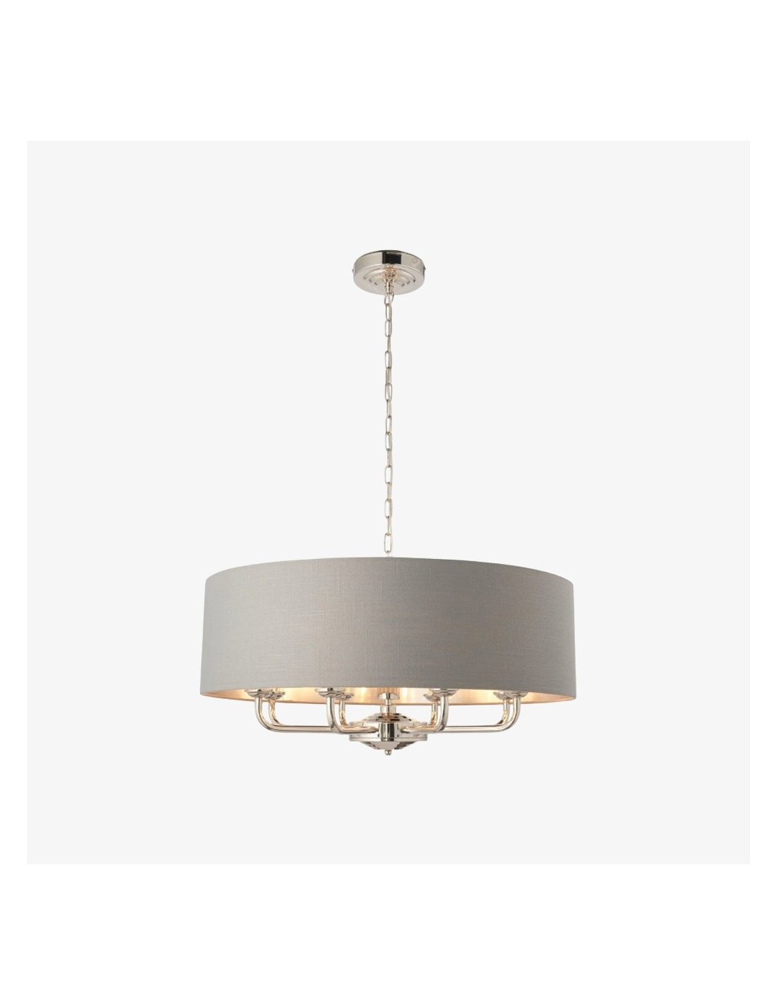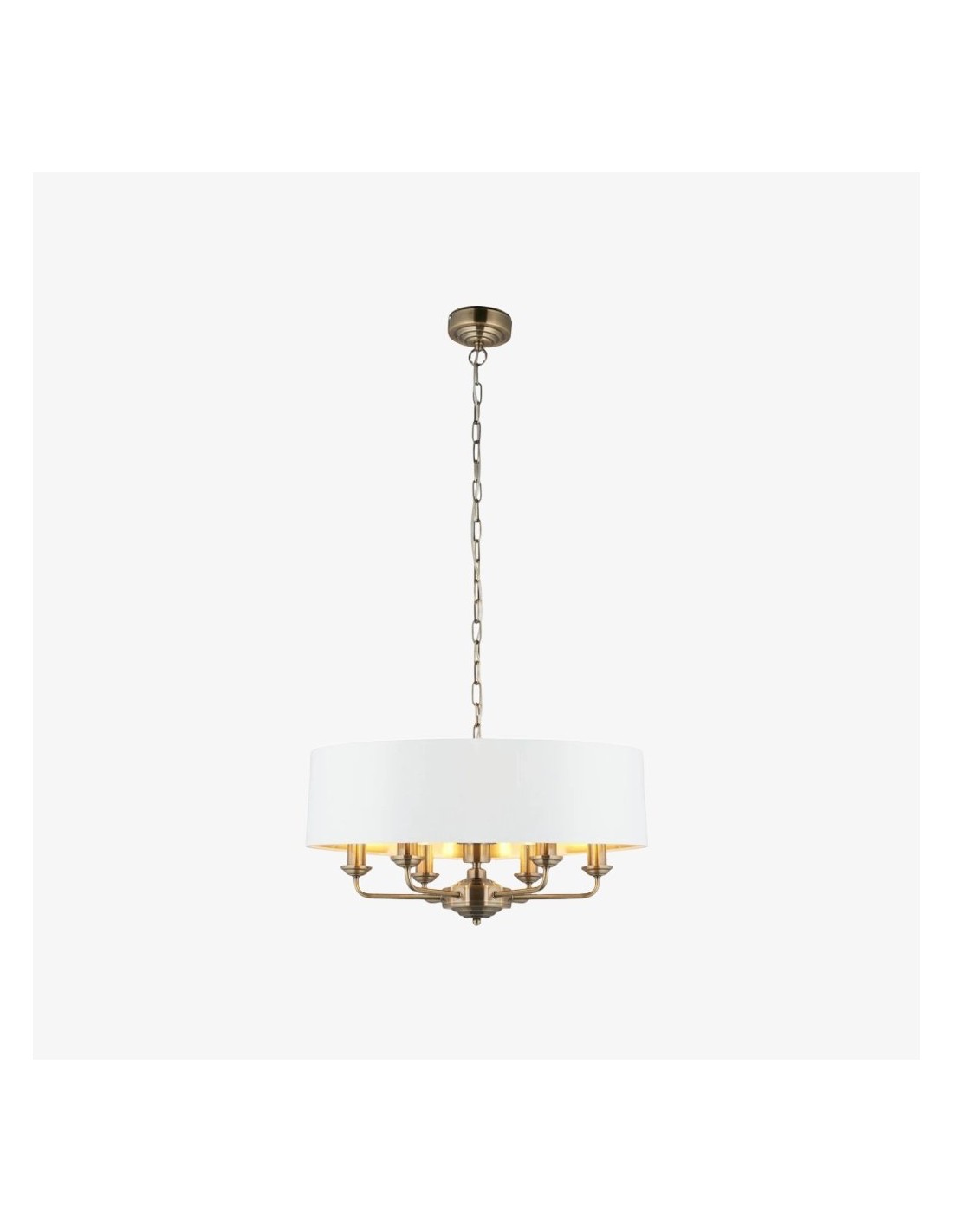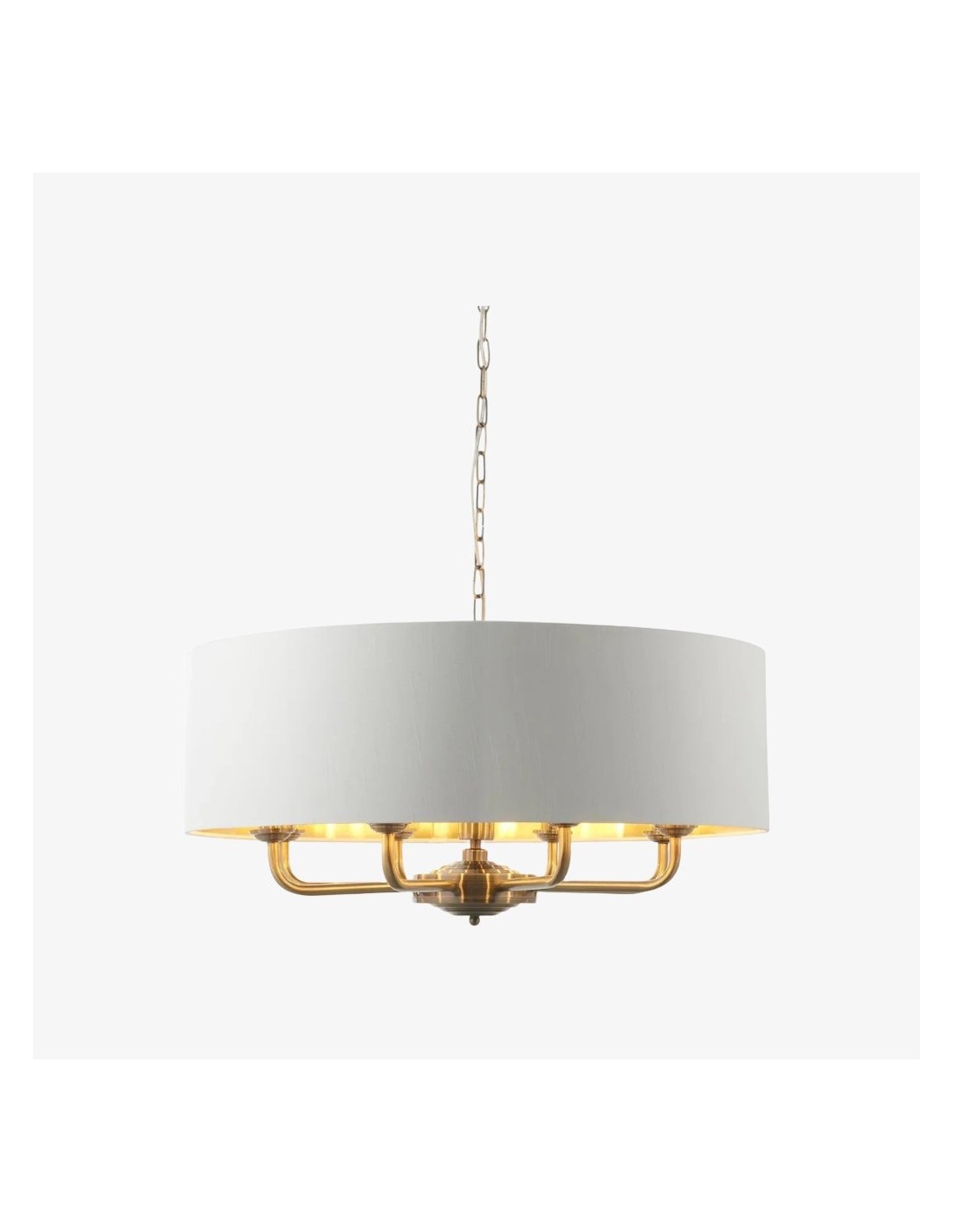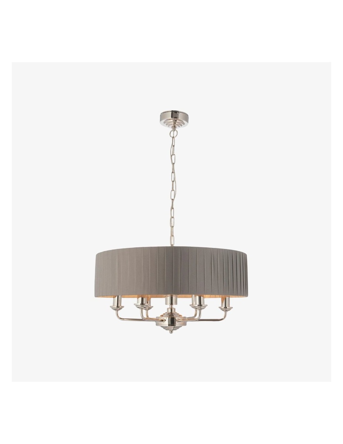 De Tela hanglamp straalt tijdloze elegantie uit met een ontwerp met meerdere armen en zachte linnen of geplooide kappen, wat resulteert in een sierlijk, sculpturaal silhouet. Geschikt voor eetkamers, hallen, woonkamers of keukens, zorgt hij voor een warme, sfeervolle verlichting.
