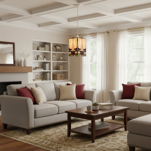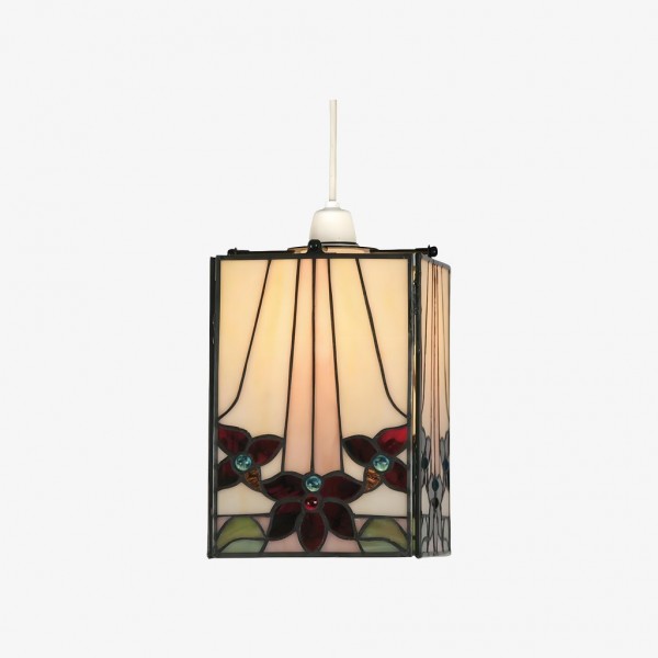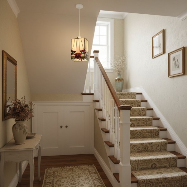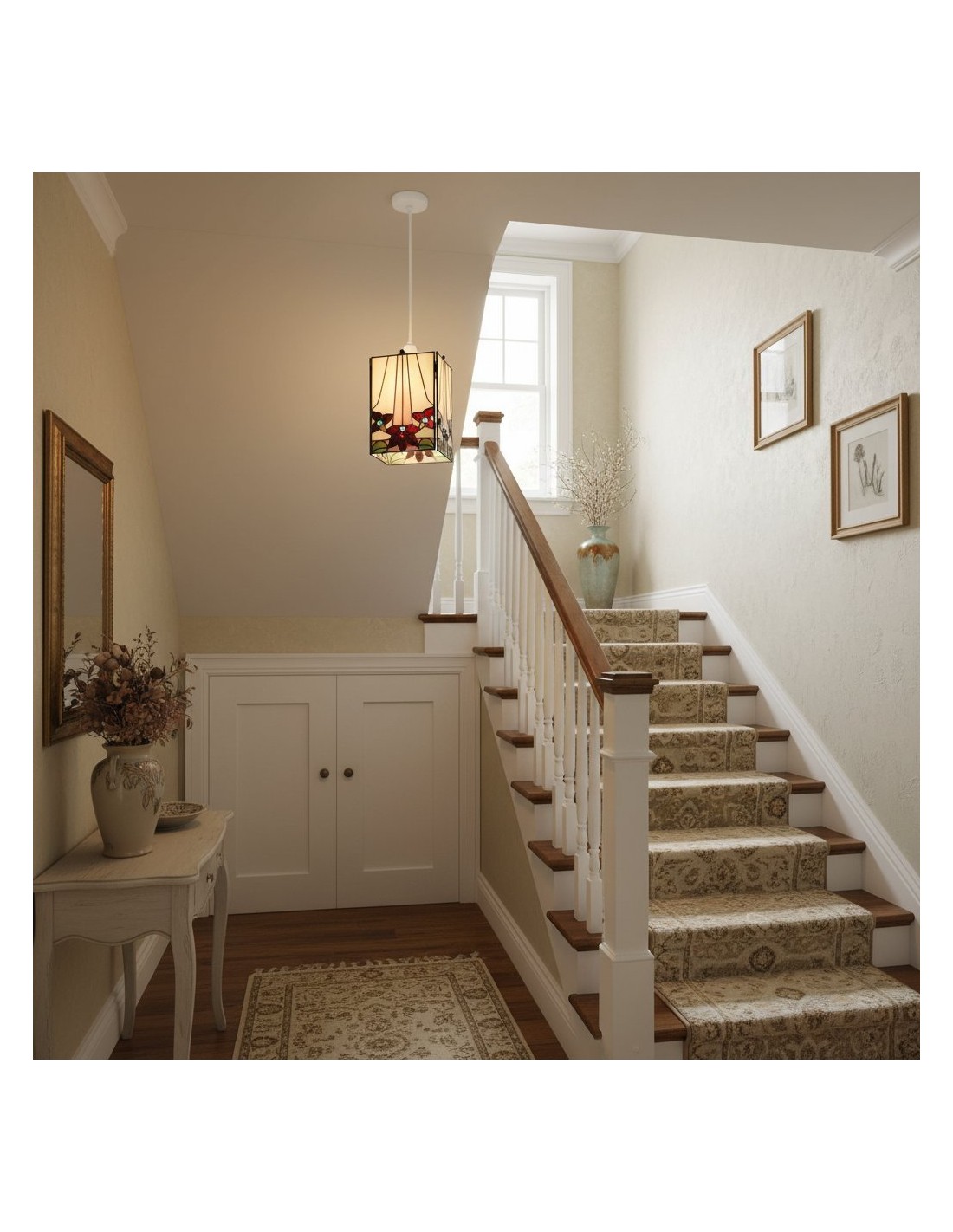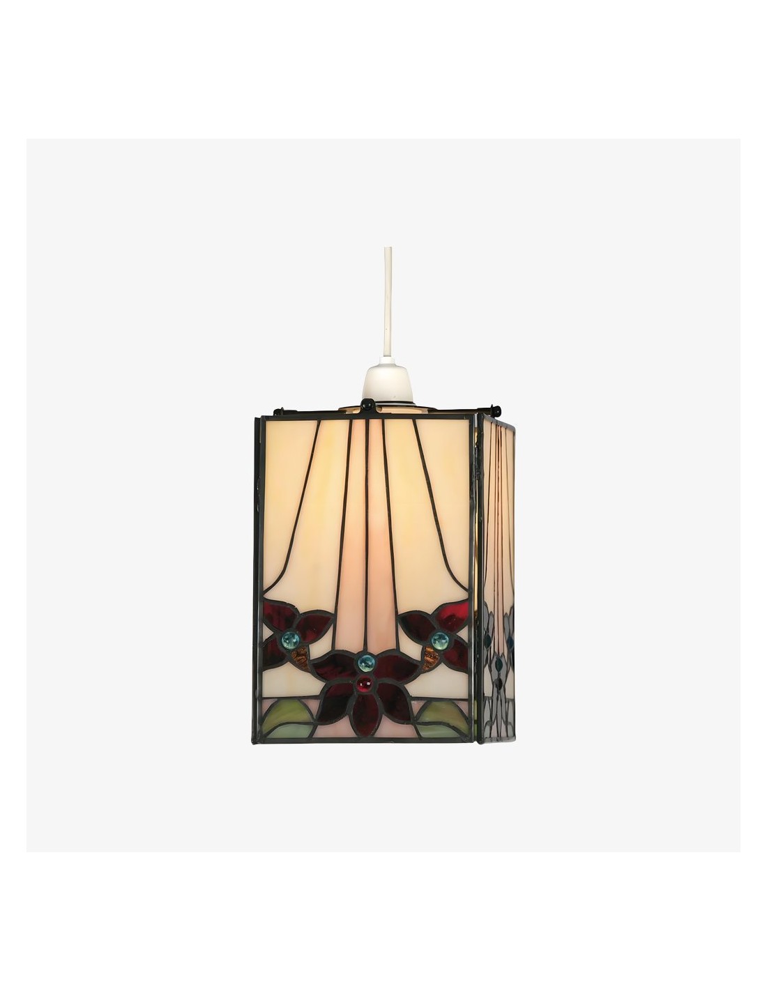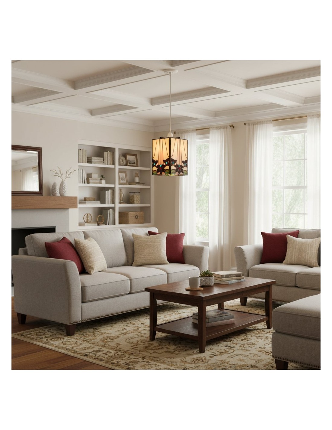 Deze lampenkap, met zijn vierkante lantaarnvorm en delicate, bloemrijke glazen randen, belichaamt perfect de tijdloze charme van Tiffany-design en creëert een warme en comfortabele sfeer. Het is een veelzijdig decoratief element voor de eetkamer, woonkamer of een knusse hoek.