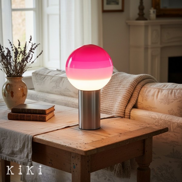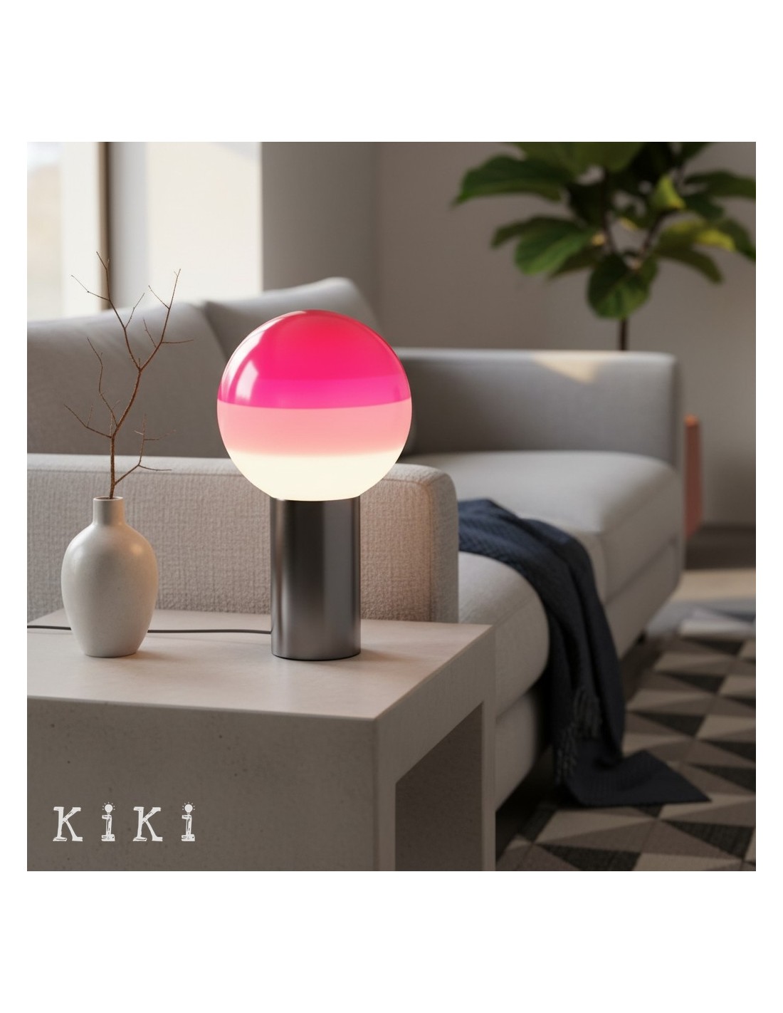 De Tintelle tafellamp combineert modern design en praktische functionaliteit met een doorschijnende glazen kap en een stevig metalen frame. Het sculpturale silhouet en de minimalistische stijl voegen elegantie toe aan elke ruimte, of het nu een woonkamer, kantoor, hal of eetkamer is.