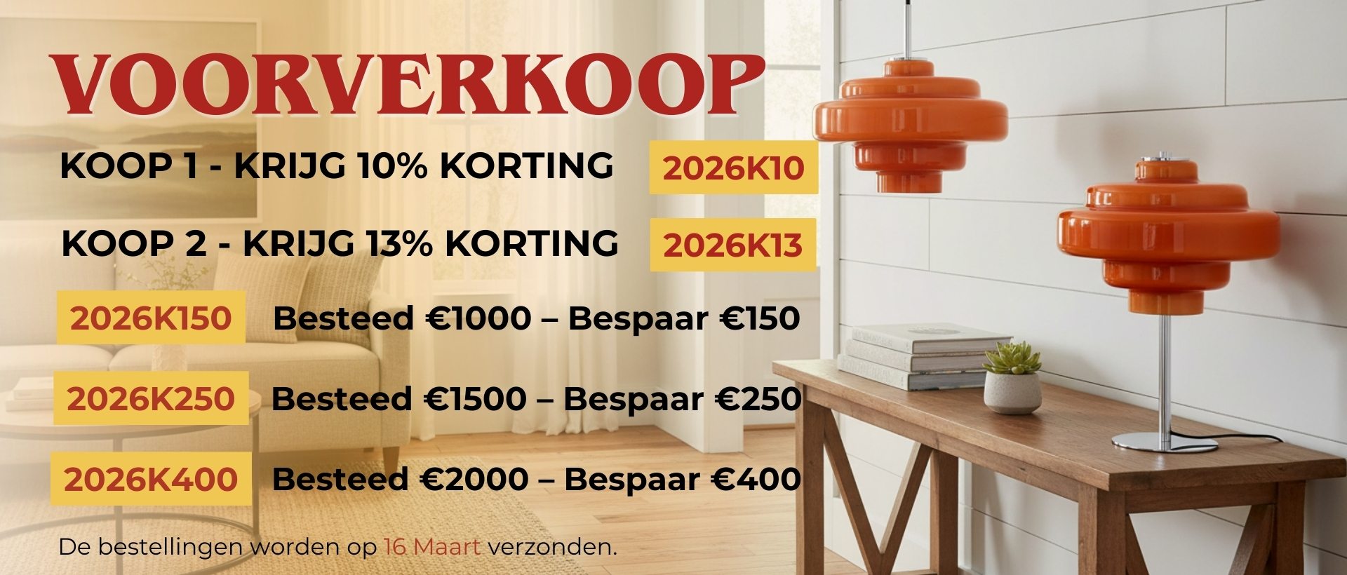 Pre-order is uw kans om geselecteerde producten te kopen terwijl onze fabriek op vakantie is. Dit betekent dat het artikel nog in productie is wanneer het wordt besteld en niet direct beschikbaar is in ons magazijn. Controleer na het afrekenen of het product is gepre-orderd. Levertijden voor pre-orders kunnen variëren.