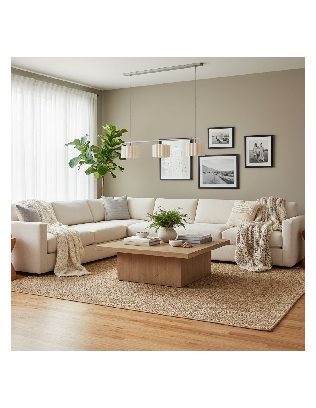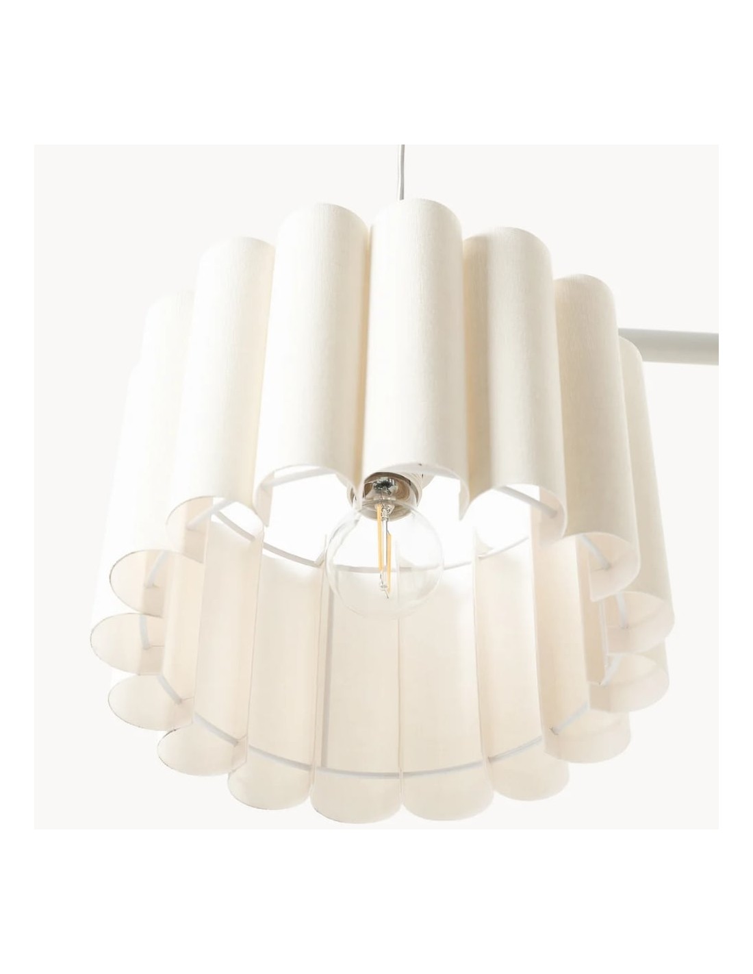 Geef uw interieur een boost met de Velura lineaire hanglamp, die vorm en functie combineert. De lichtbeige linnen lampenkap zorgt voor een warm, aangenaam licht en projecteert artistieke patronen op uw muren. De lamp is voorzien van een met textiel beklede kabel en een gecoat metalen frame voor extra duurzaamheid.