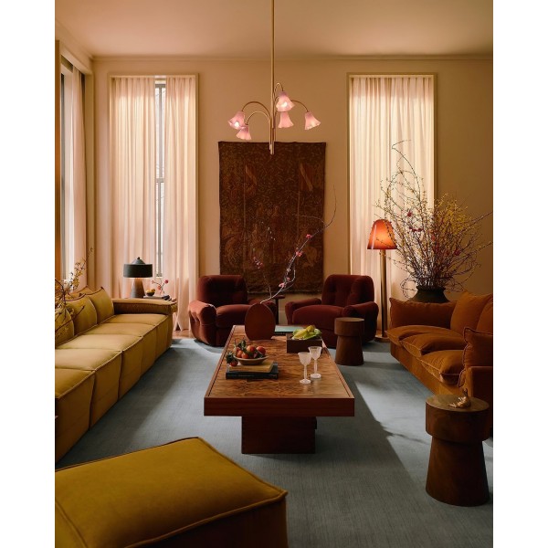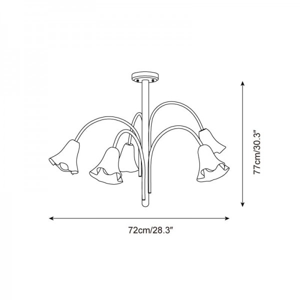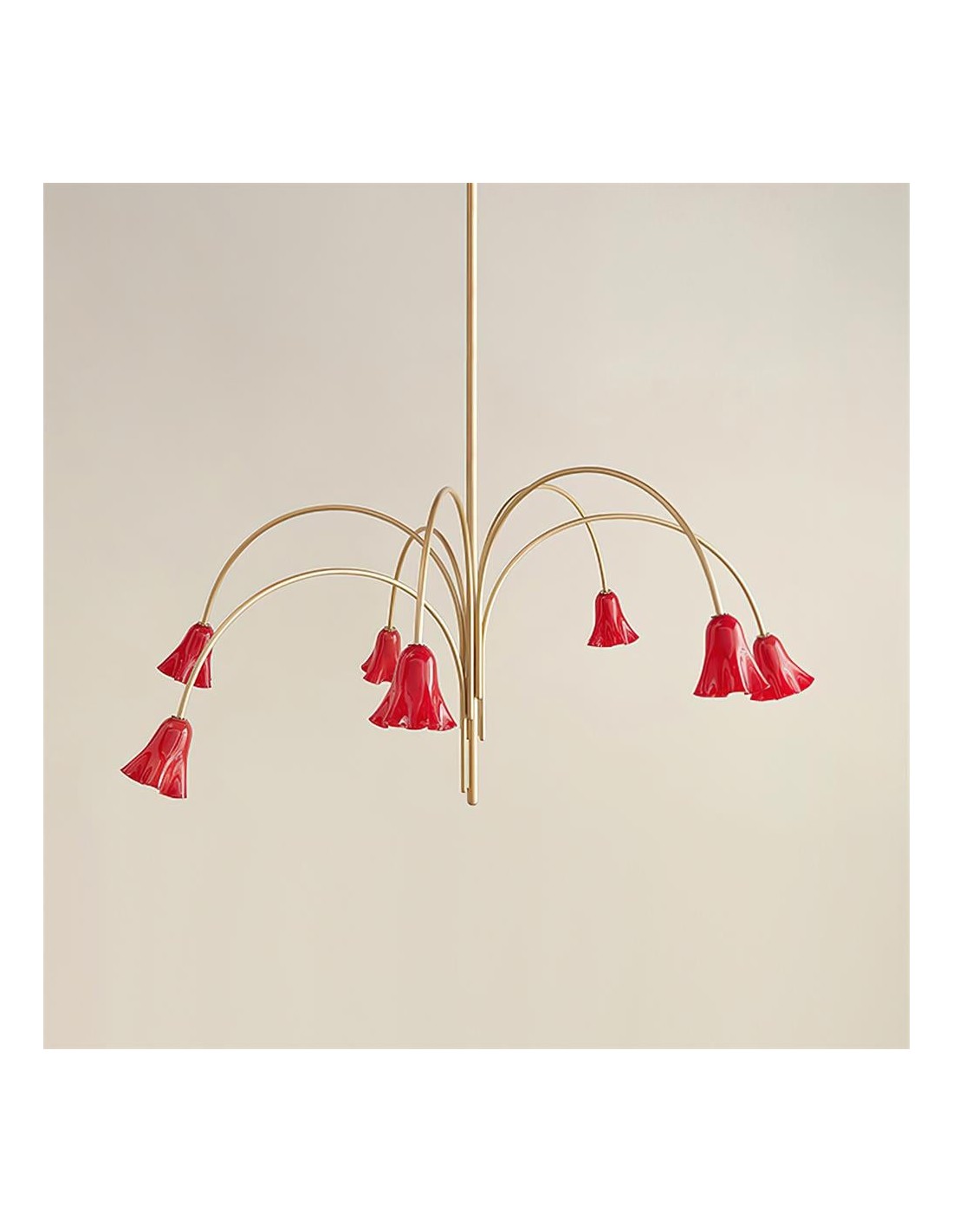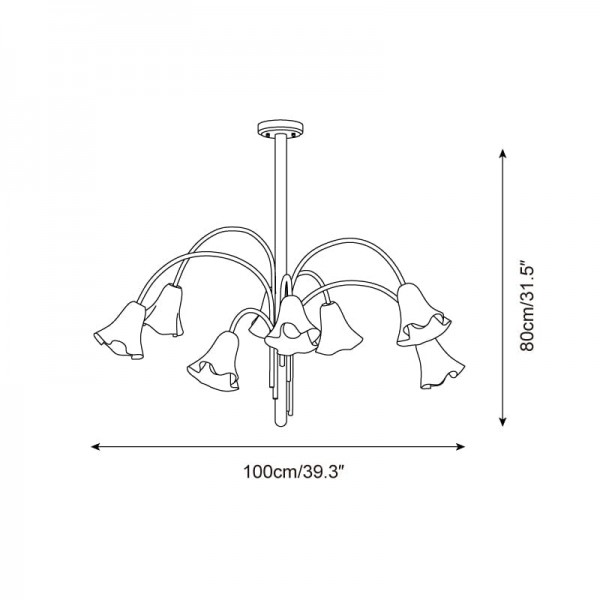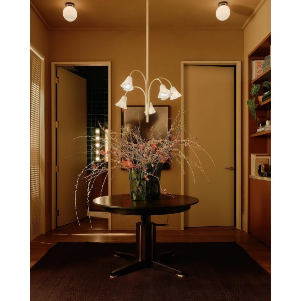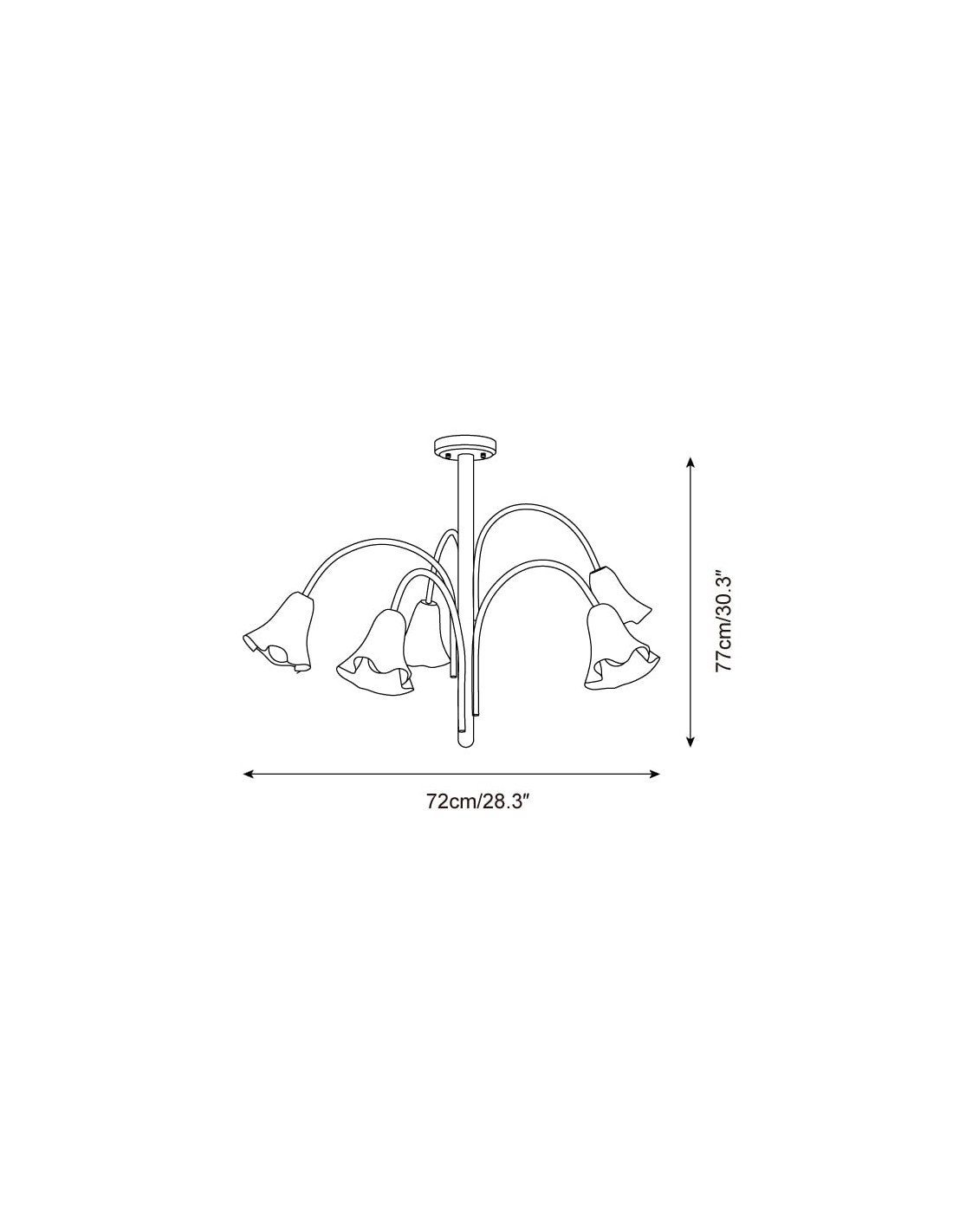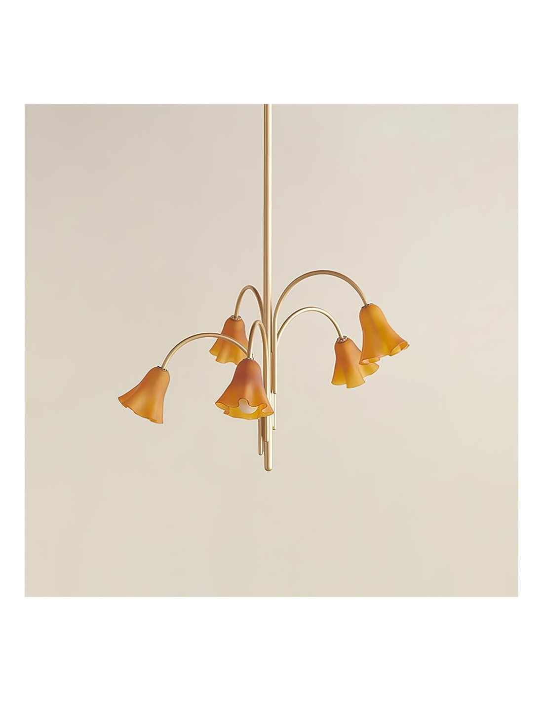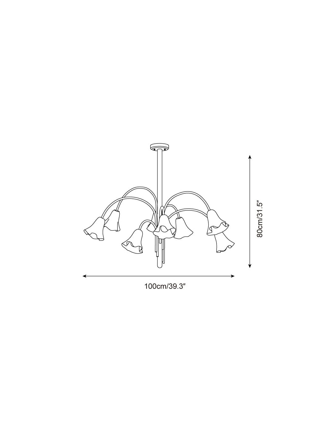 Geef je ruimte een romantische, moderne touch met de kroonluchter. Met gebogen armen van geborsteld metaal en handgevormde witte glazen kappen creëert dit armatuur een zachte, elegante gloed. Het minimalistische botanische ontwerp, geïnspireerd op lelies, voegt sierlijke beweging toe aan eetkamers, entrees of kleedkamers en combineert artisticiteit met eigentijdse elegantie.