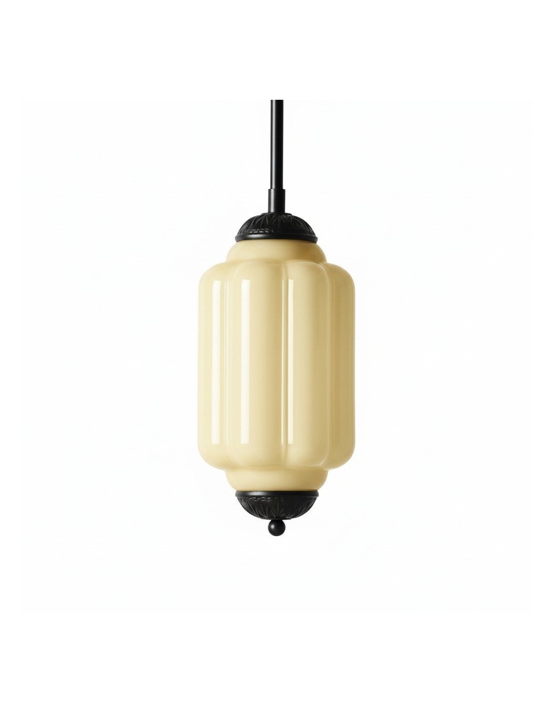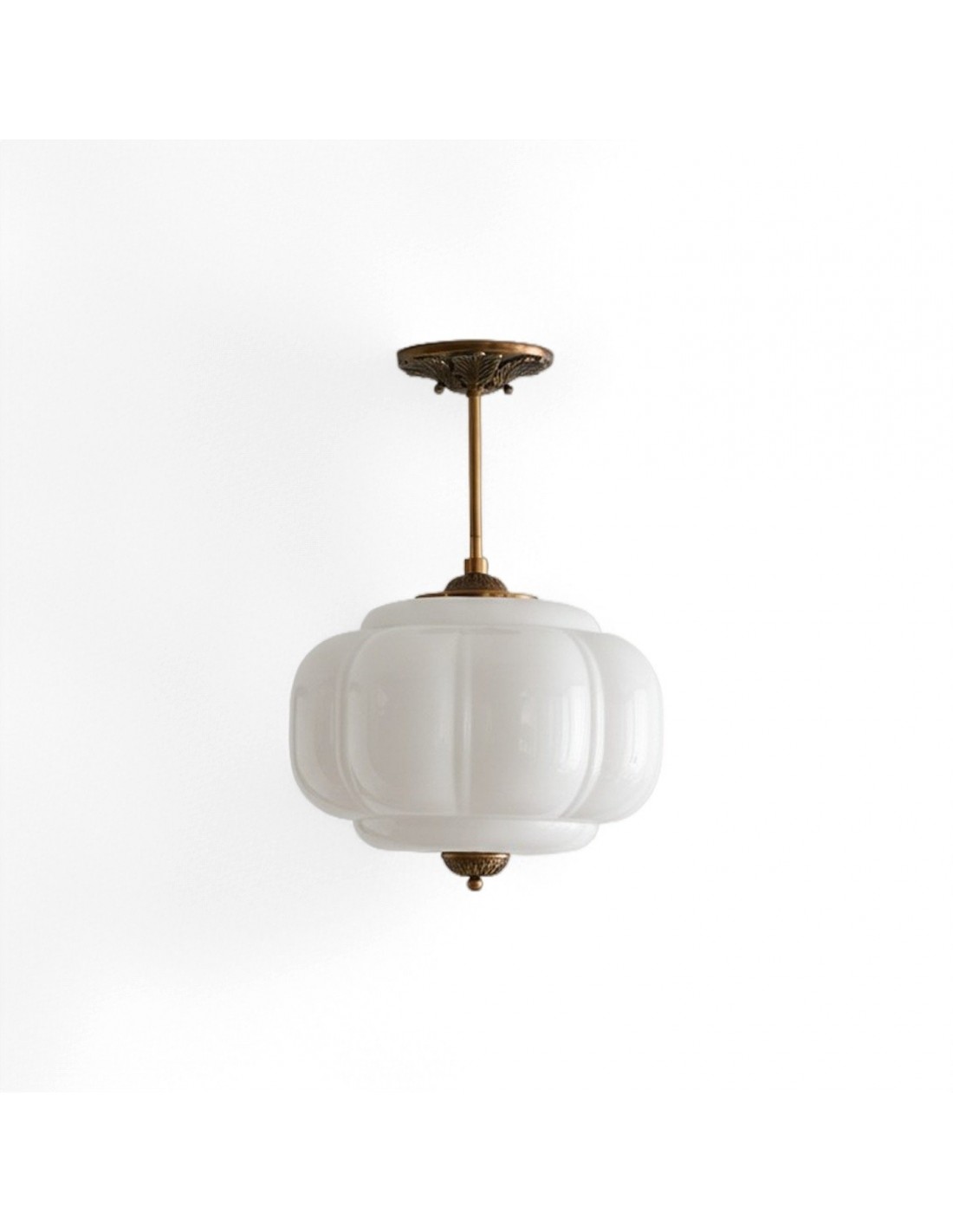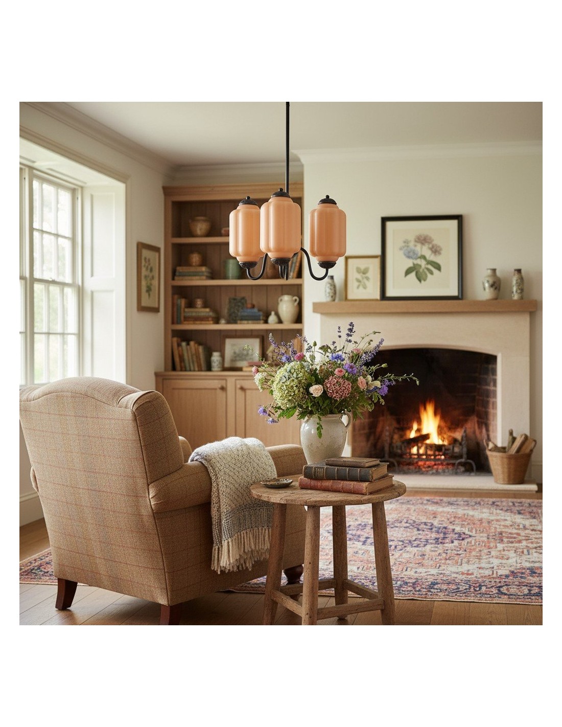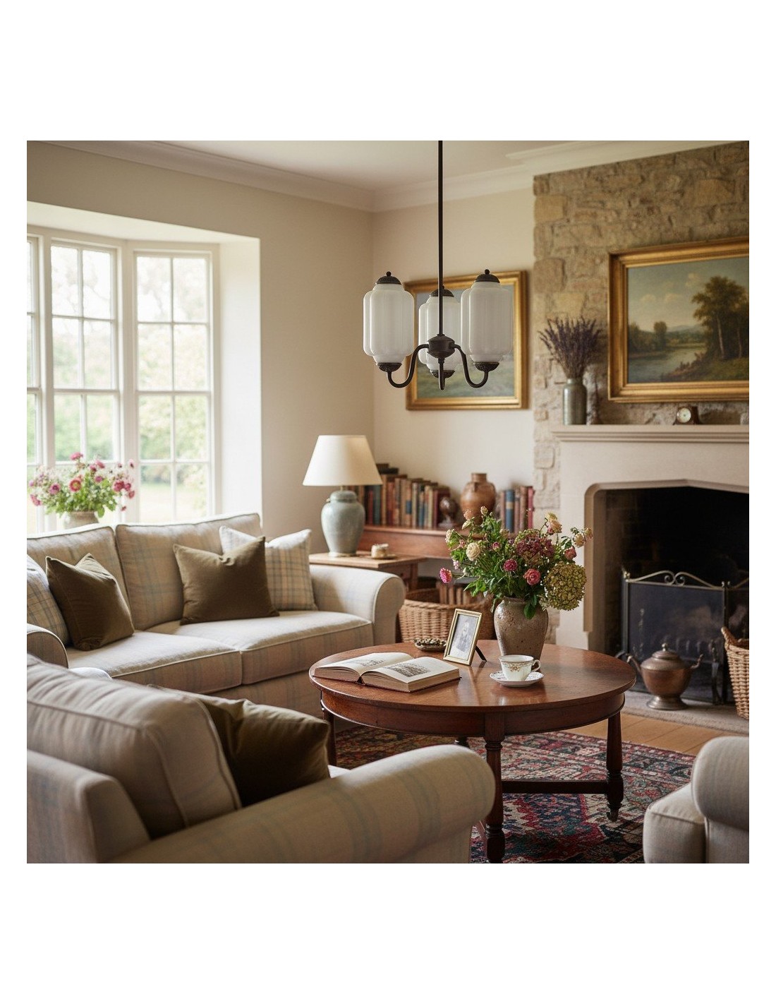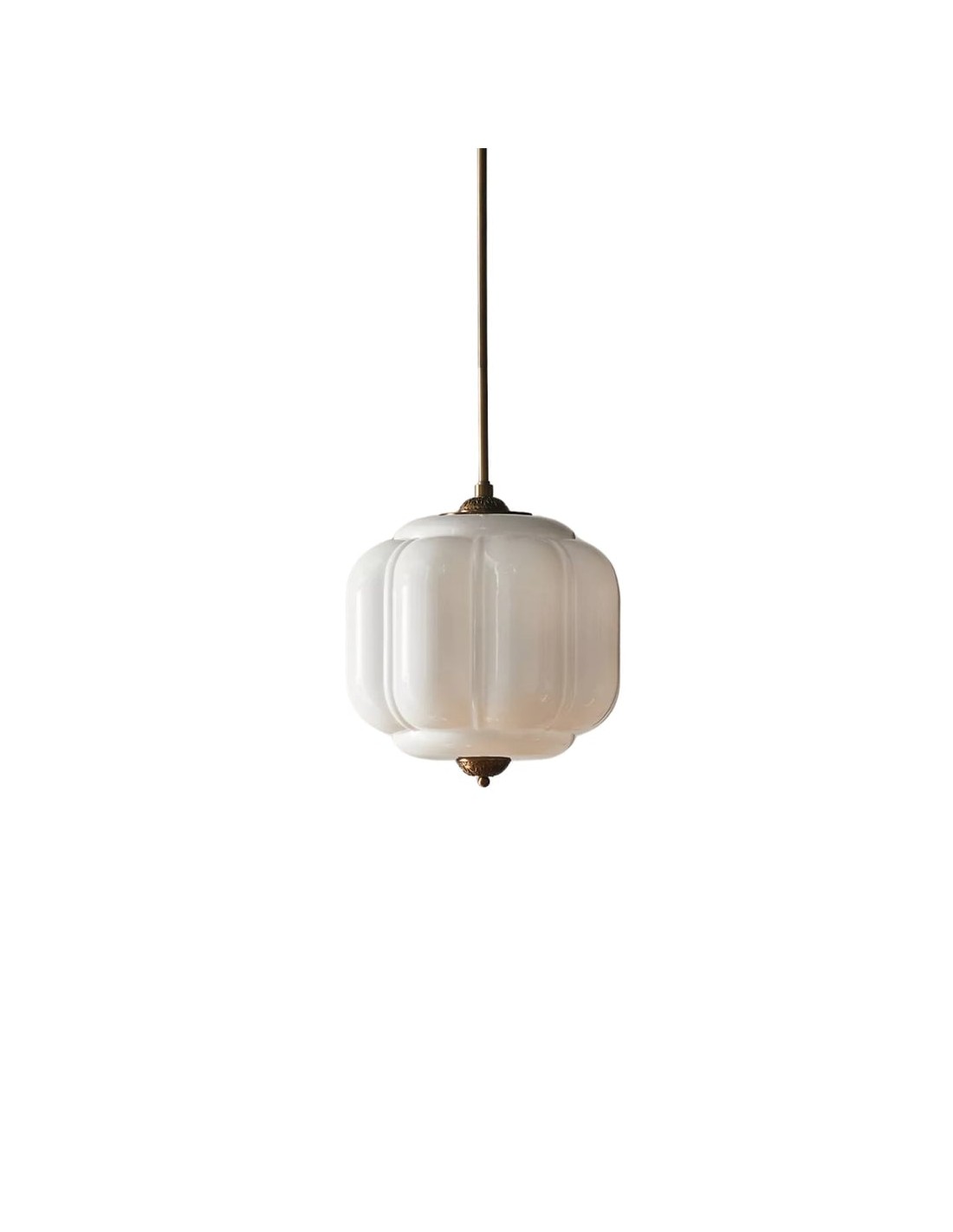De vintage glazen kroonluchter Eloise heeft een tijdloze melkglazen kap die retro elegantie uitstraalt. Ideaal voor het verfraaien van ontbijthoekjes, woonkamers of slaapkamers. Het vintage-geïnspireerde ontwerp past perfect bij landelijke, mid-century moderne en andere stijlen. De glazen kap verspreidt het licht subtiel, wat zorgt voor extra gezelligheid en tegelijkertijd een onderscheidend decoratief element vormt.