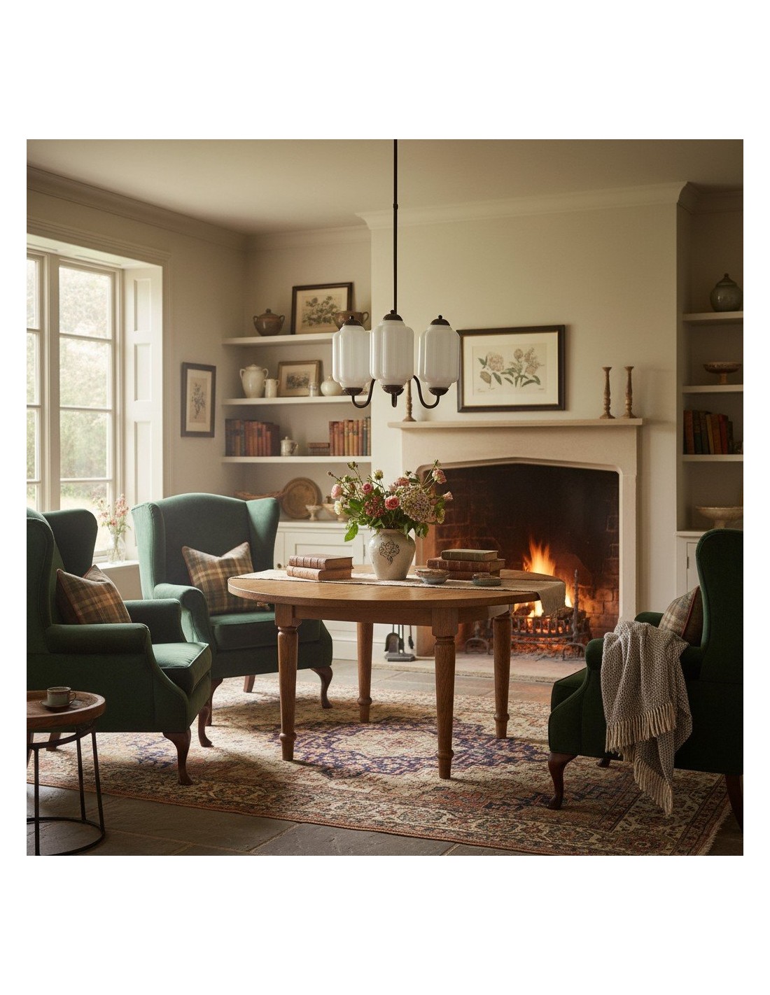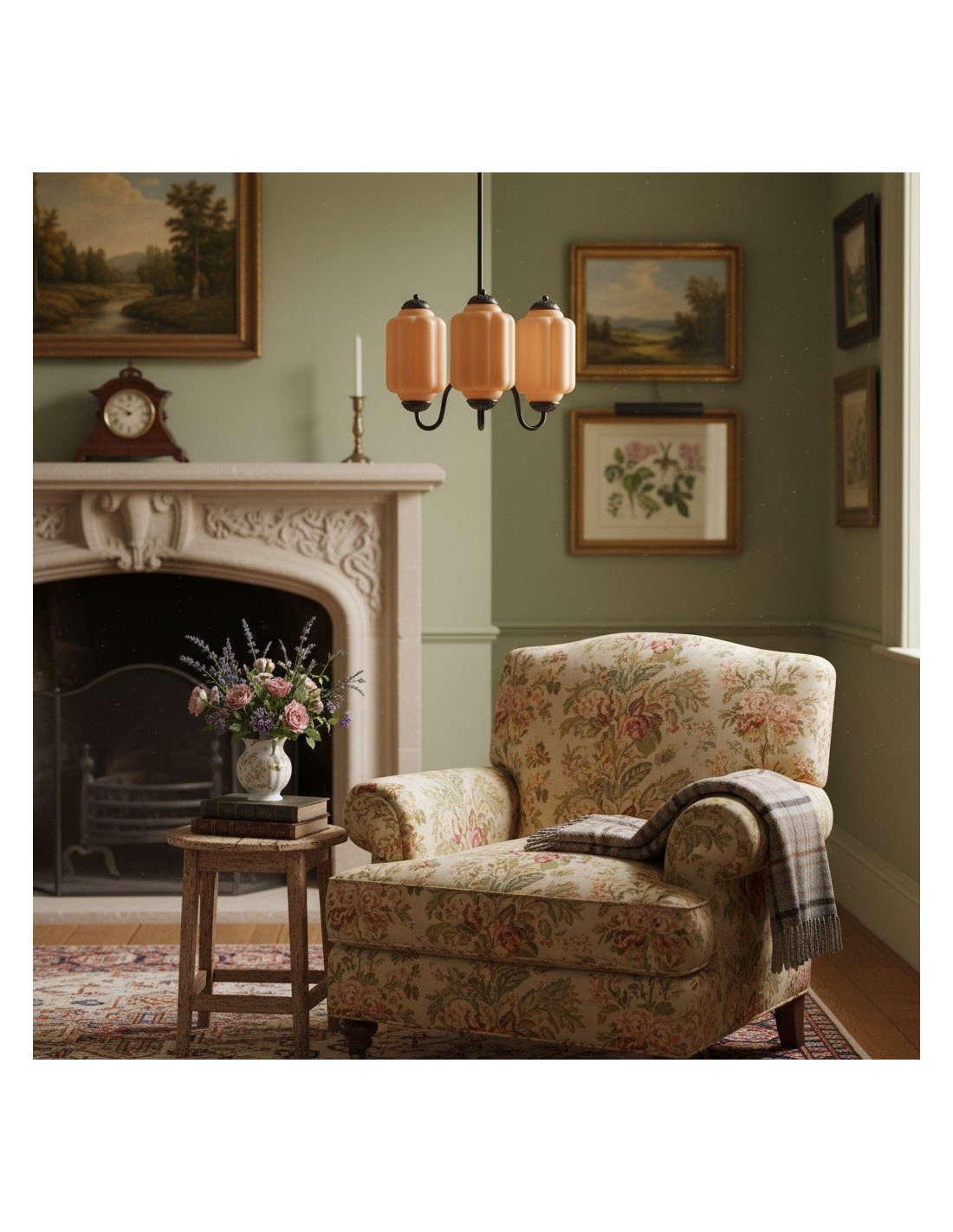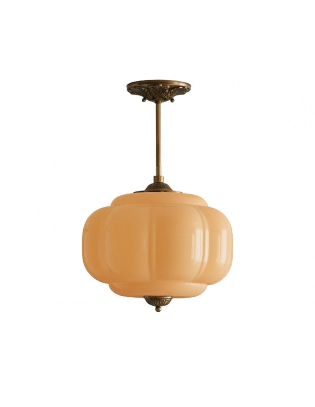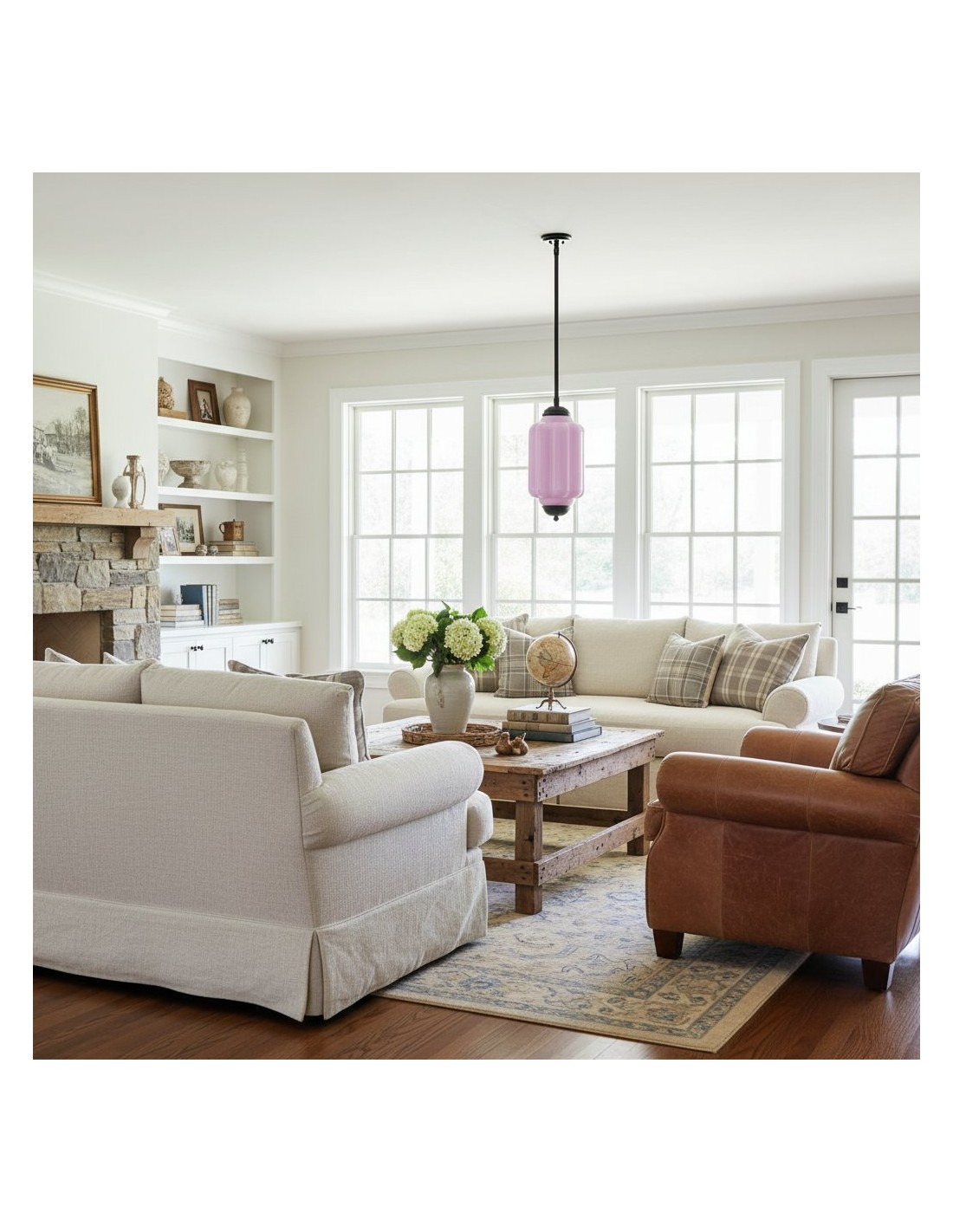 De vintage glazen kroonluchter Eloise heeft een tijdloze melkglazen kap die retro elegantie uitstraalt. Ideaal voor het verfraaien van ontbijthoekjes, woonkamers of slaapkamers. Het vintage-geïnspireerde ontwerp past perfect bij landelijke, mid-century moderne en andere stijlen. De glazen kap verspreidt het licht subtiel, wat zorgt voor extra gezelligheid en tegelijkertijd een onderscheidend decoratief element vormt.