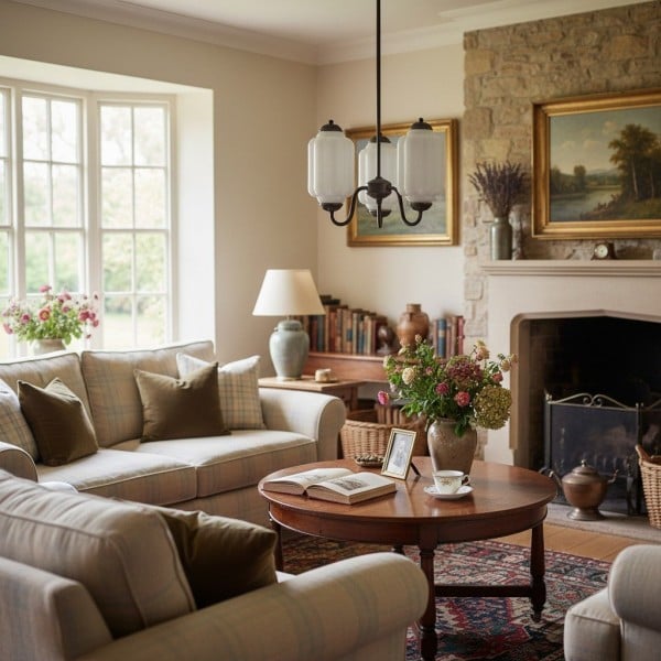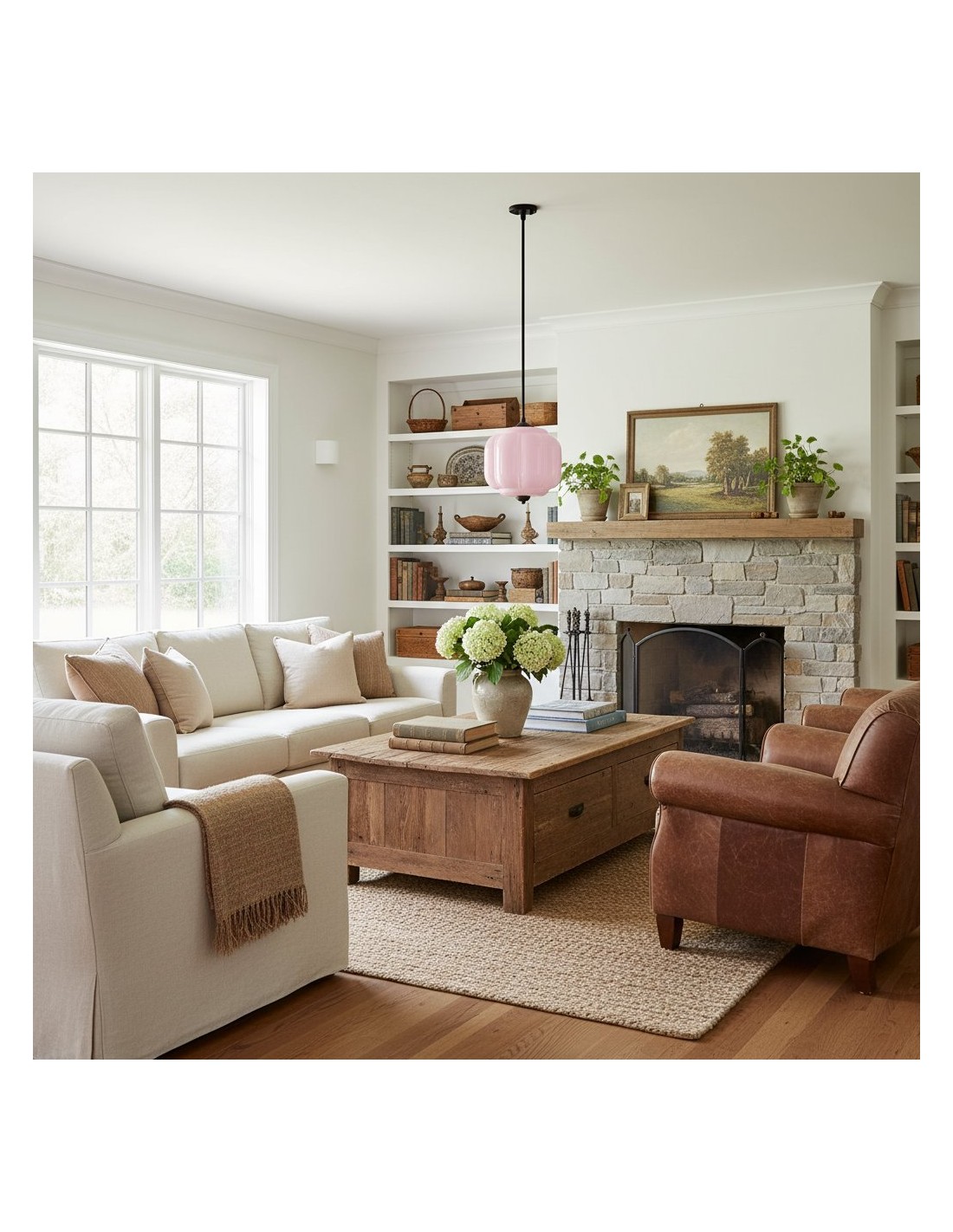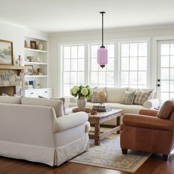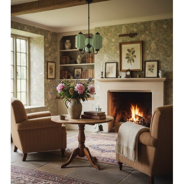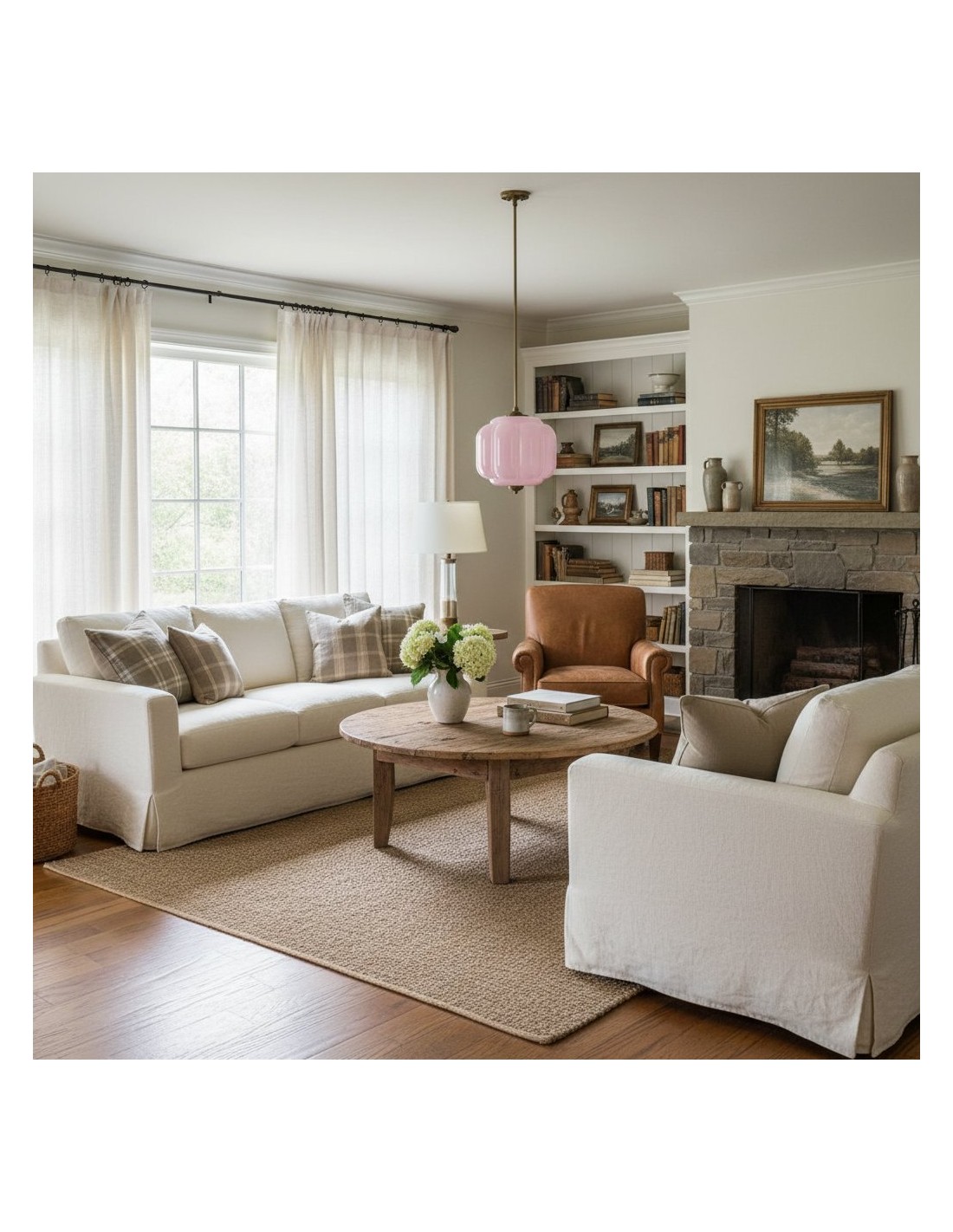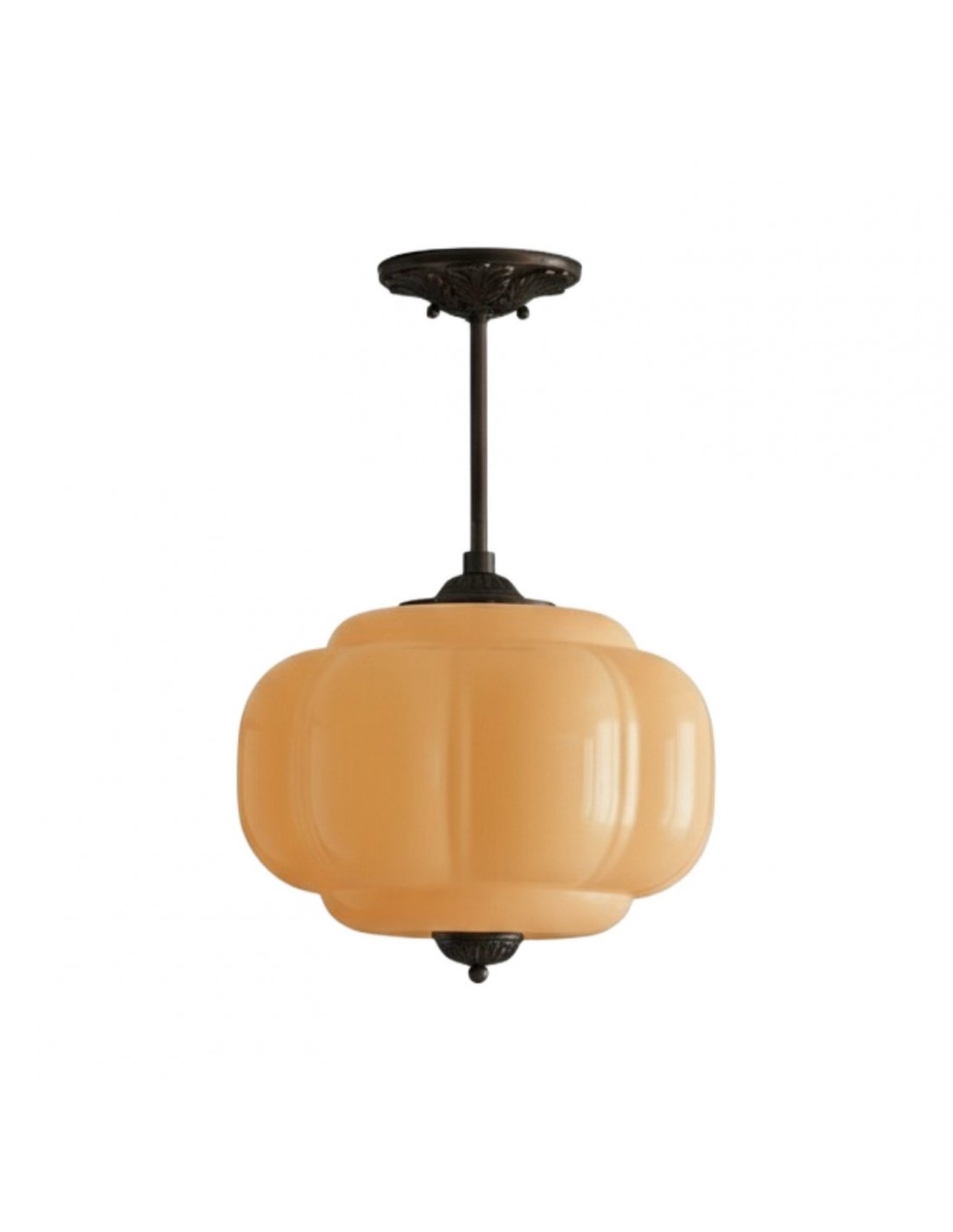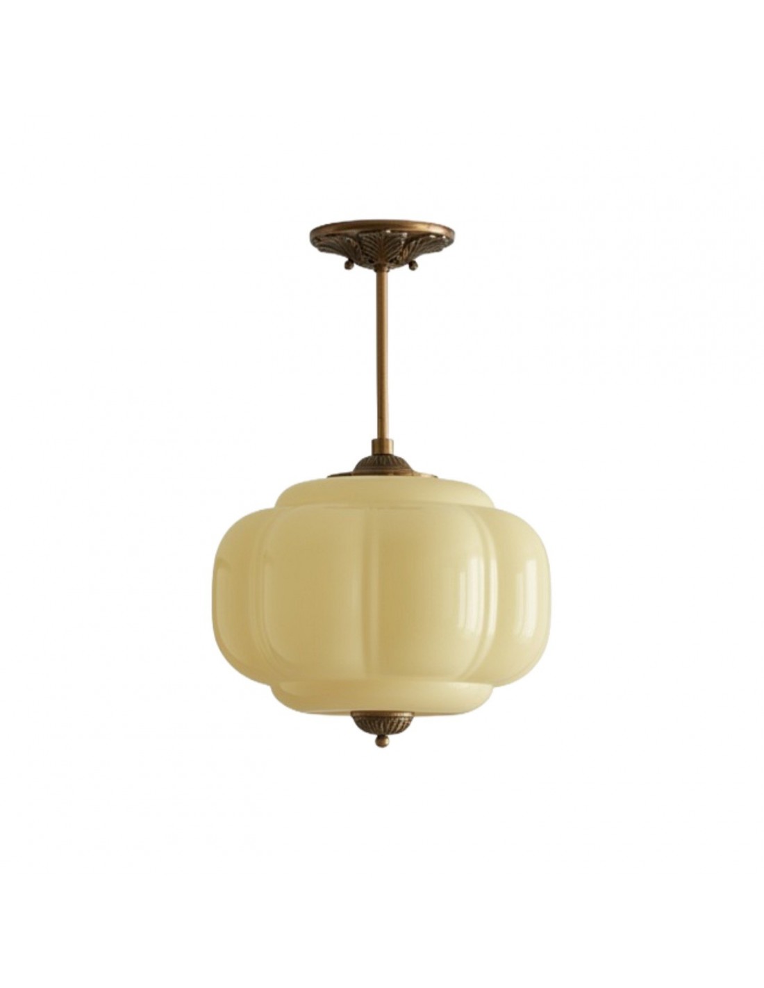 De vintage glazen kroonluchter Eloise heeft een tijdloze melkglazen kap die retro elegantie uitstraalt. Ideaal voor het verfraaien van ontbijthoekjes, woonkamers of slaapkamers. Het vintage-geïnspireerde ontwerp past perfect bij landelijke, mid-century moderne en andere stijlen. De glazen kap verspreidt het licht subtiel, wat zorgt voor extra gezelligheid en tegelijkertijd een onderscheidend decoratief element vormt.