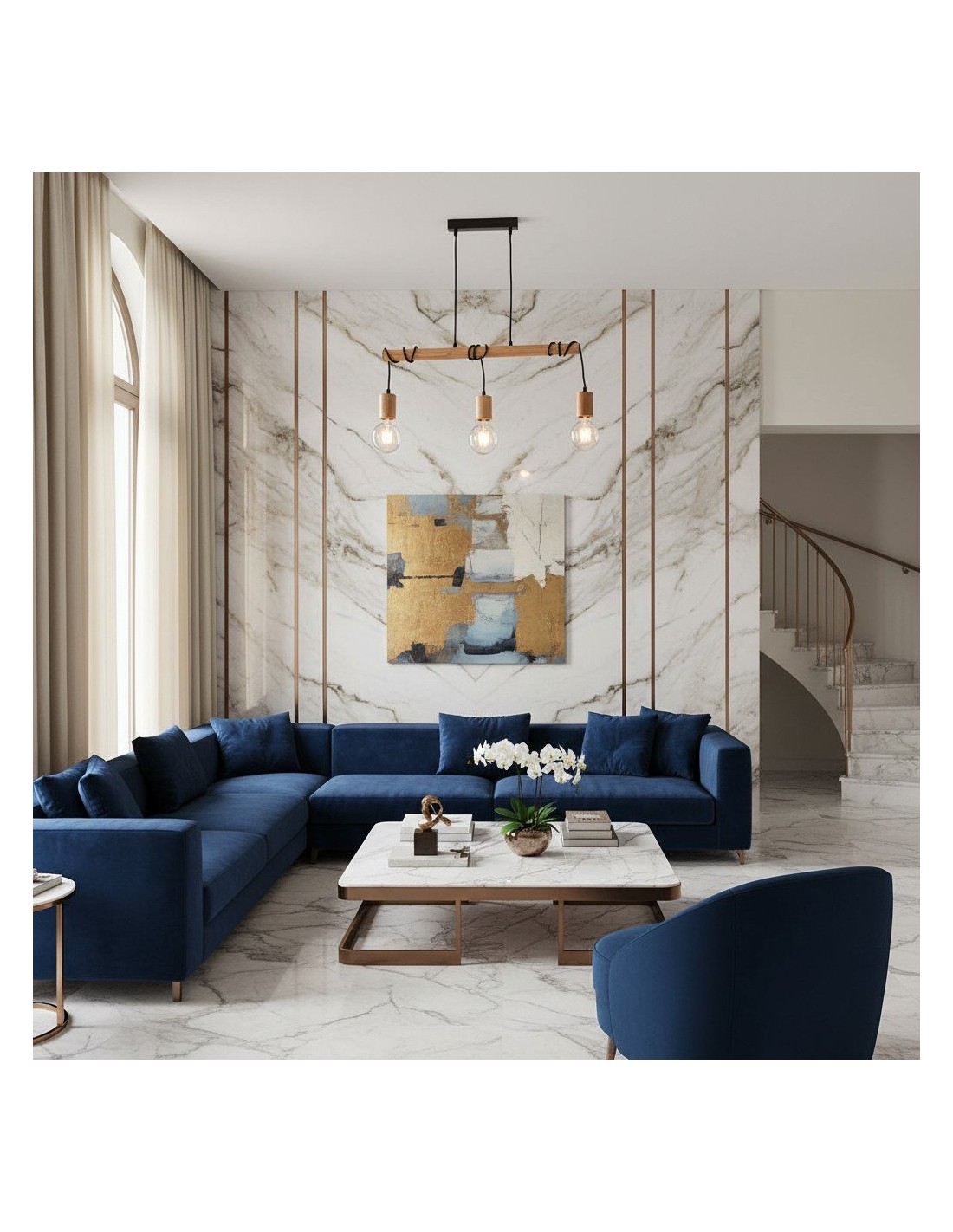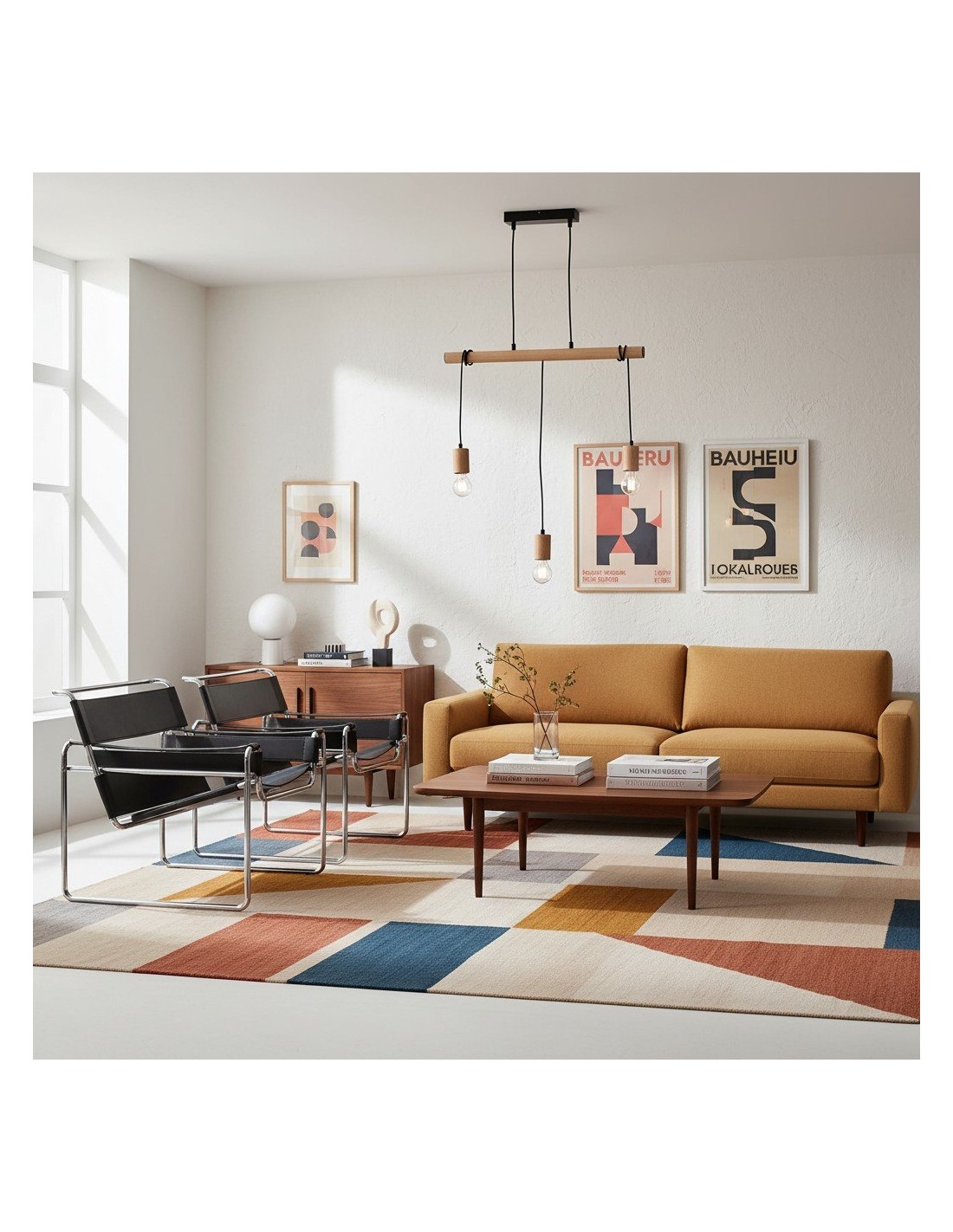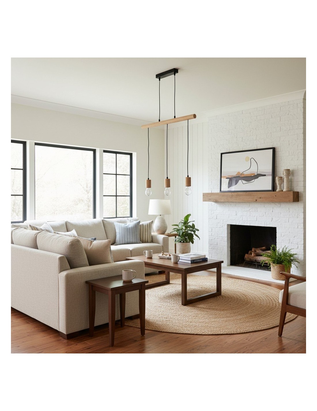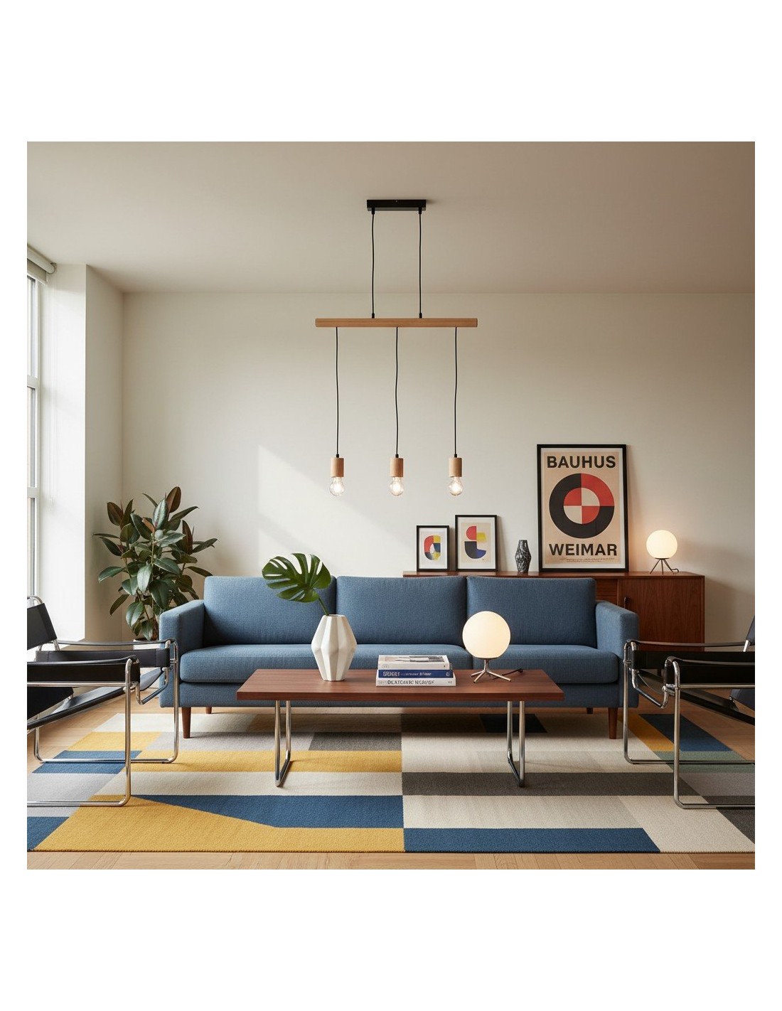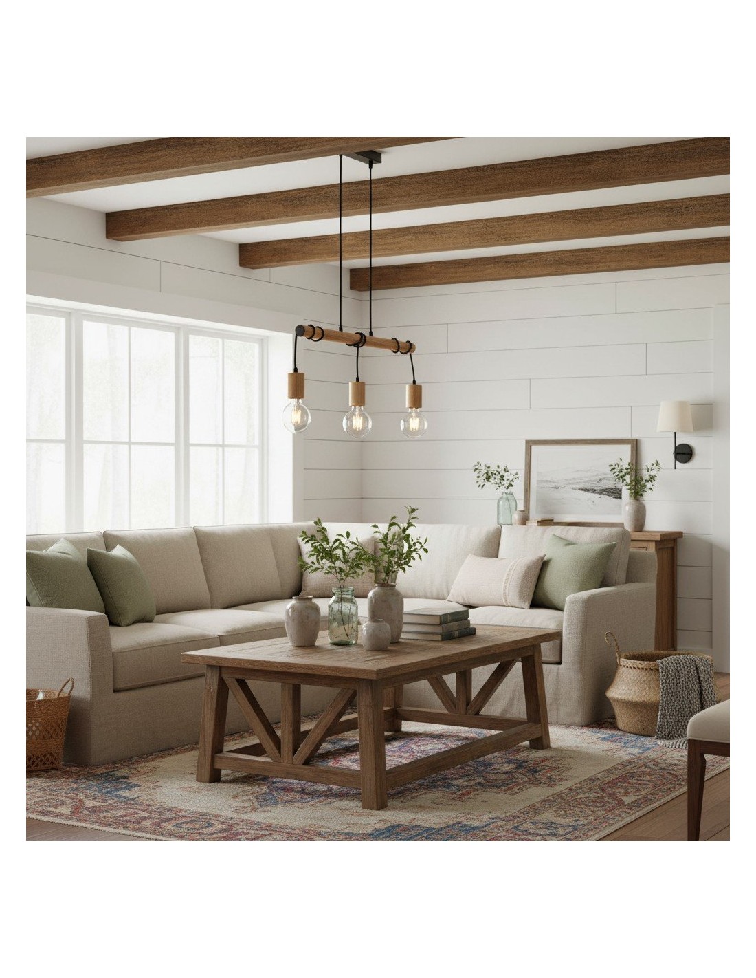 De Virell 3-lichts houten lineaire hanglamp combineert op meesterlijke wijze natuurlijk hout met industrieel metaal tot een modern, milieubewust verlichtingsarmatuur. Deze armatuur is vervaardigd uit duurzaam geproduceerd licht hout en omlijst met matzwart metaal. De ophanghoogte is verstelbaar dankzij een zwart stoffen snoer. De lamp is perfect te combineren met gloeilampen en zorgt voor een warme, sfeervolle gloed, waardoor hij ideaal is voor eetkamers, keukens of werkruimtes waar stijl en functionaliteit hand in hand gaan.