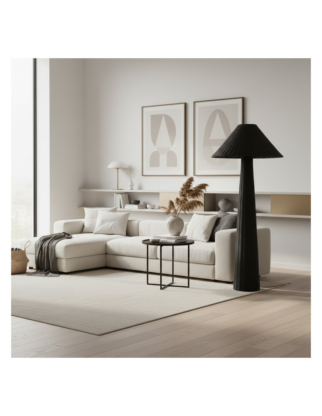 Deze vloerlamp, met oog voor detail vervaardigd, combineert op perfecte wijze natuurlijke texturen met sculpturale elegantie. De kap, geweven van rotan of wilgentakken, omhult de gebogen rand en vormt een zacht, natuurlijk silhouet dat warmte en dynamiek aan elke ruimte toevoegt. De lamp is licht maar stevig en straalt een vleugje natuurlijke charme uit.