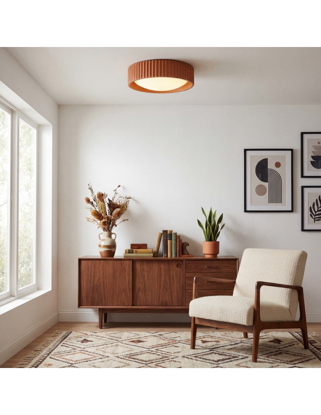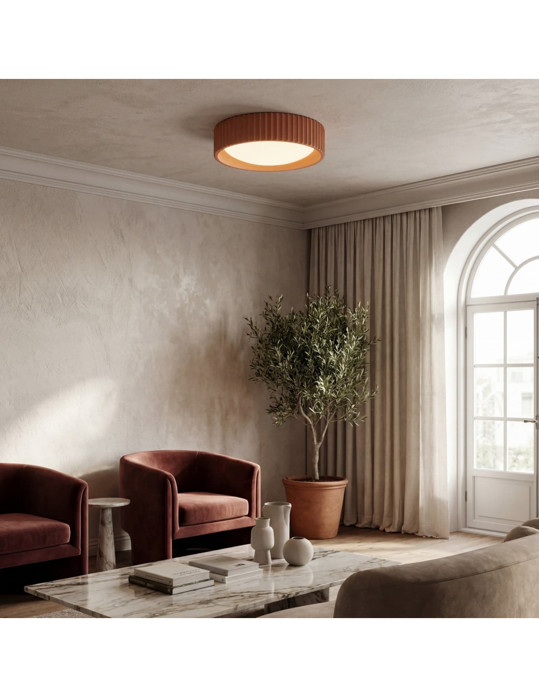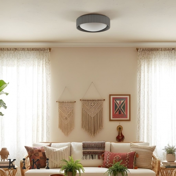 Apportez une touche contemporaine et raffinée à votre intérieur avec ce plafonnier rond Acrion. Son design minimaliste et sa silhouette circulaire créent un contraste élégant entre la douceur de l’acrylique et la structure solide du métal et du béton.