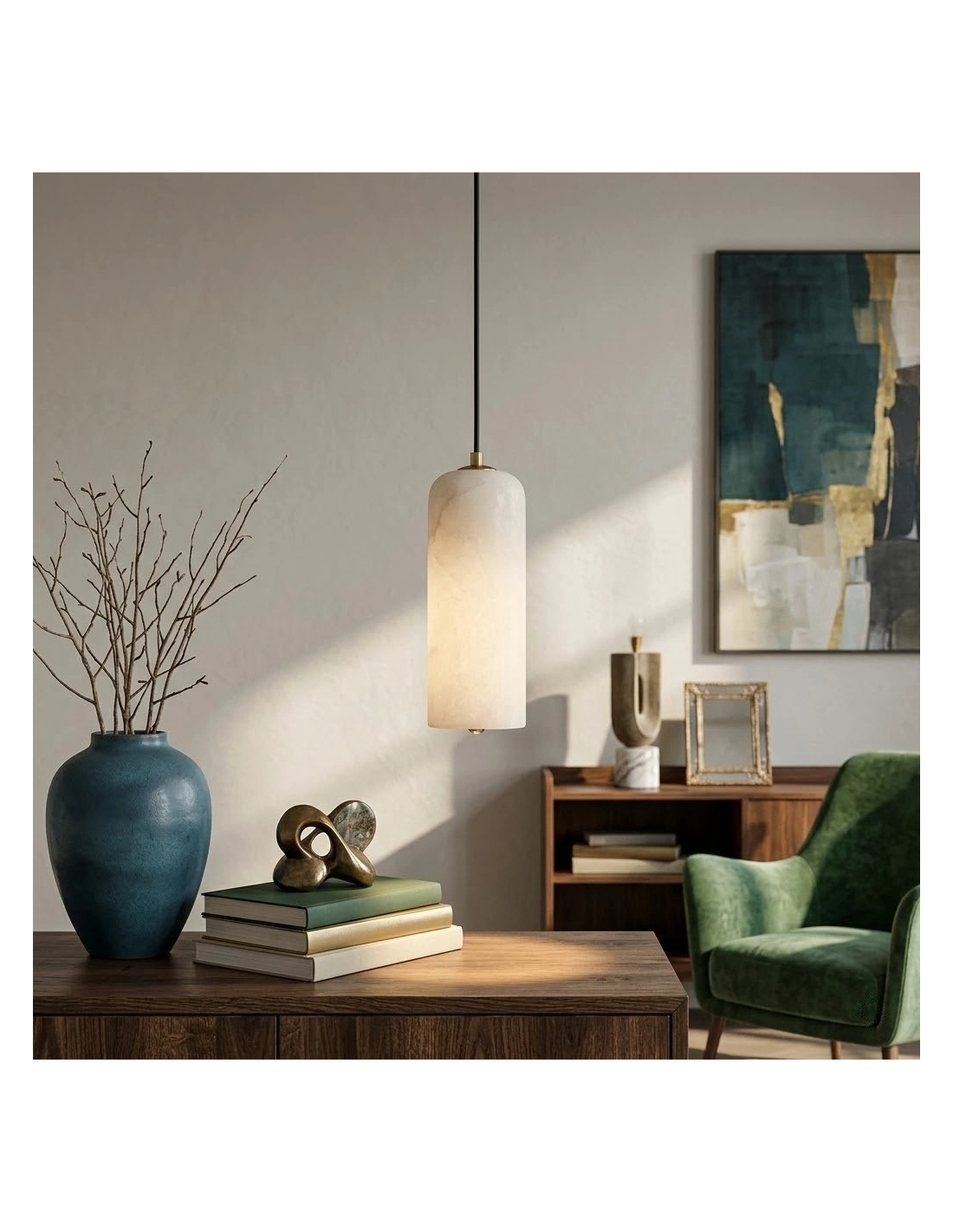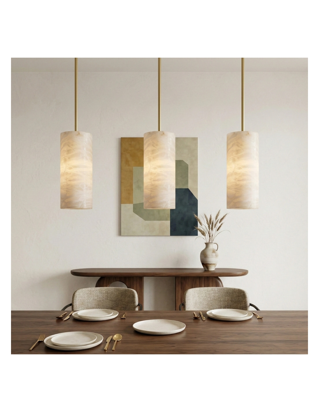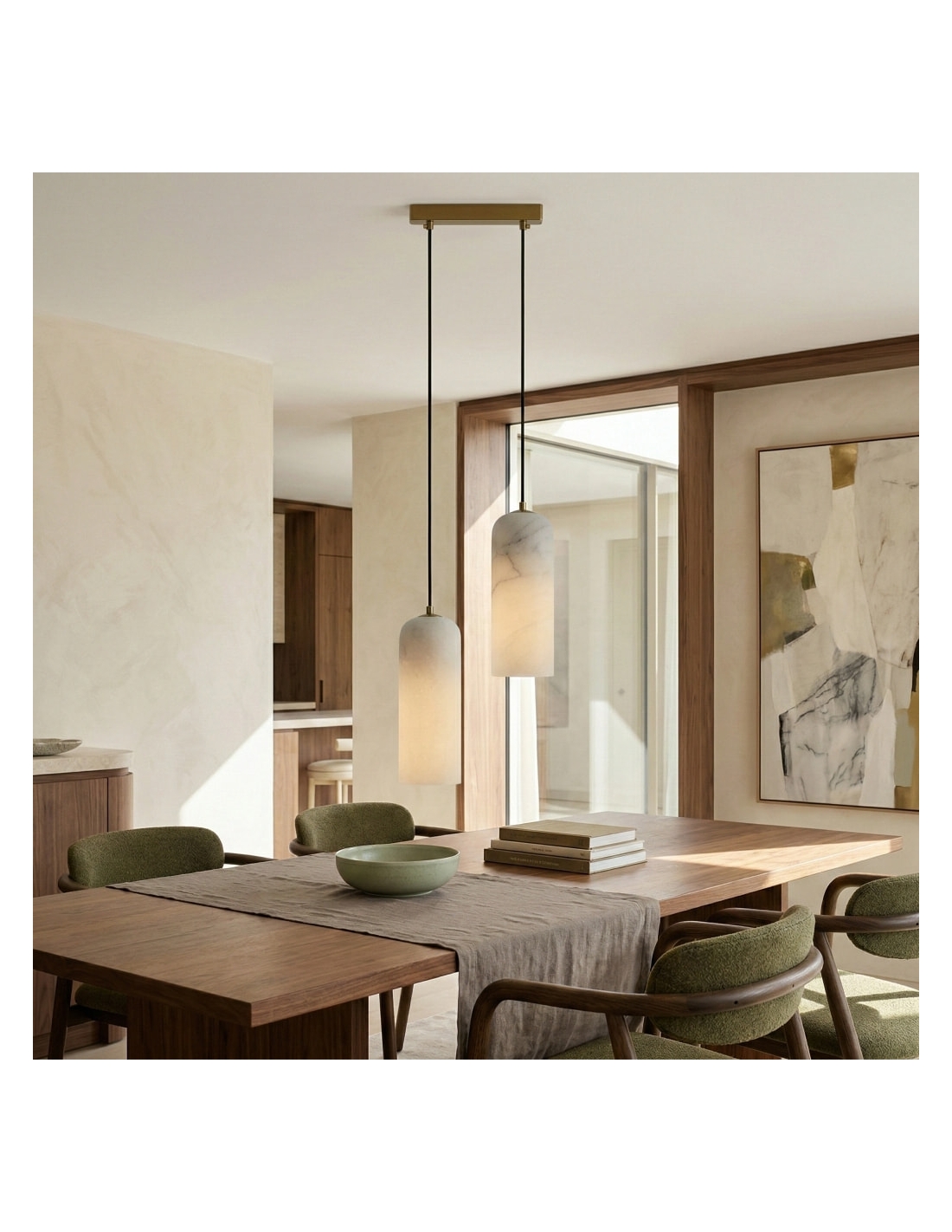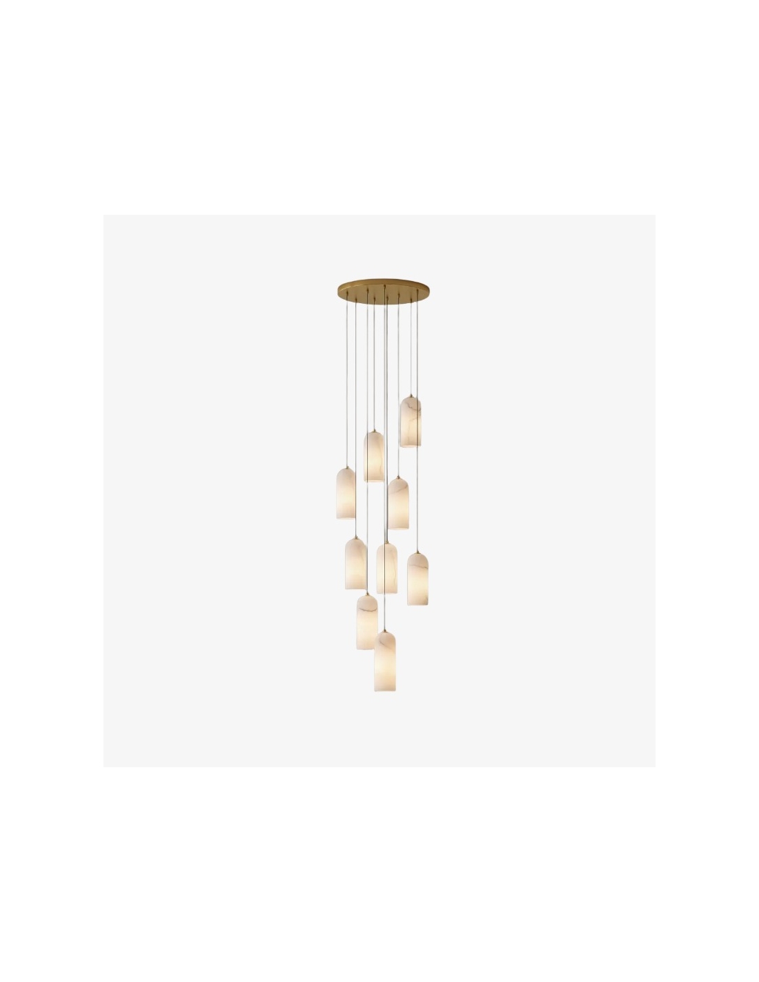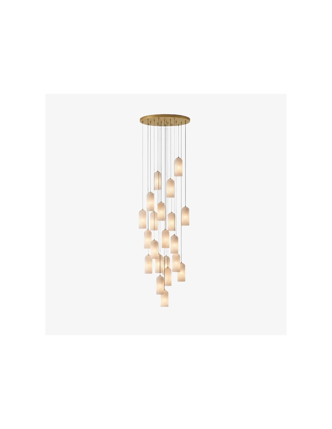 Cette collection de suspensions modernes allie une silhouette tubulaire raffinée à des configurations multi-têtes polyvalentes, permettant aussi bien une élégance discrète qu'une installation en grappe spectaculaire. Confectionnée avec des abat-jour en pierre naturelle et des finitions métalliques haut de gamme, elle diffuse une lumière chaude et douce qui met en valeur les îlots de cuisine, les tables à manger et les grands halls d'entrée.