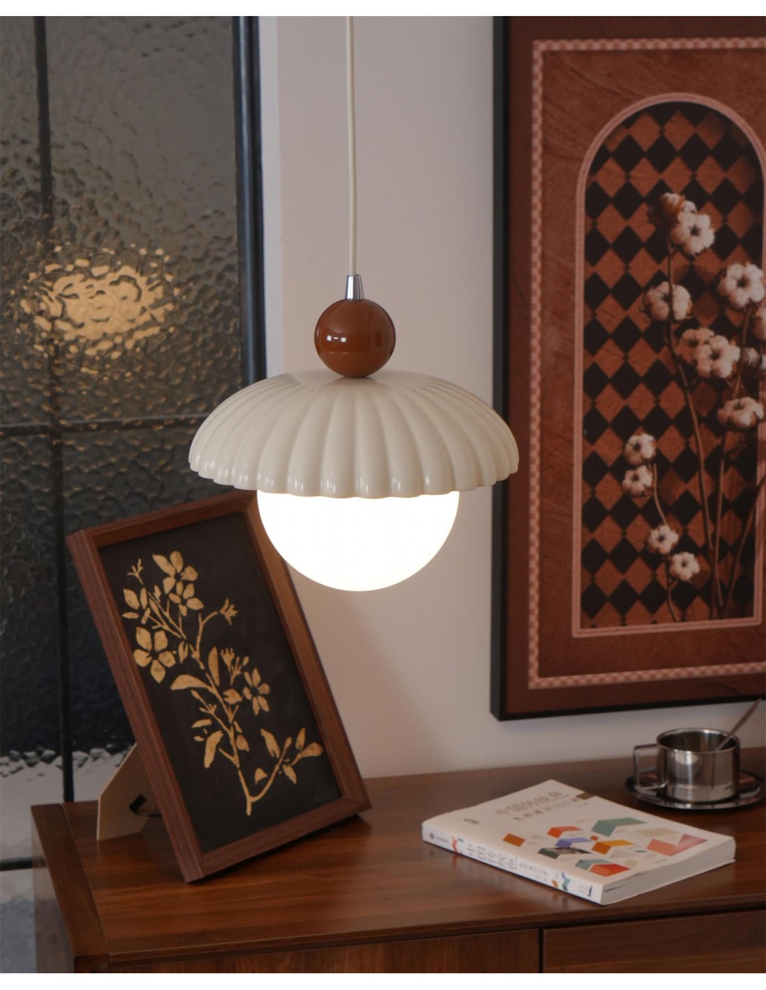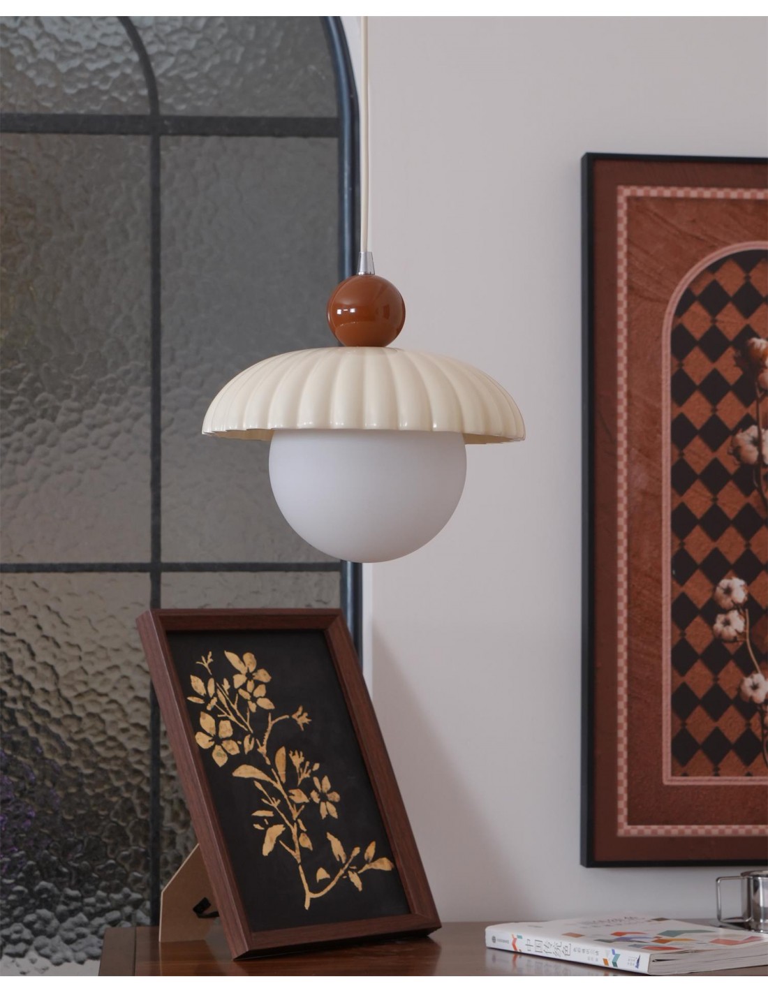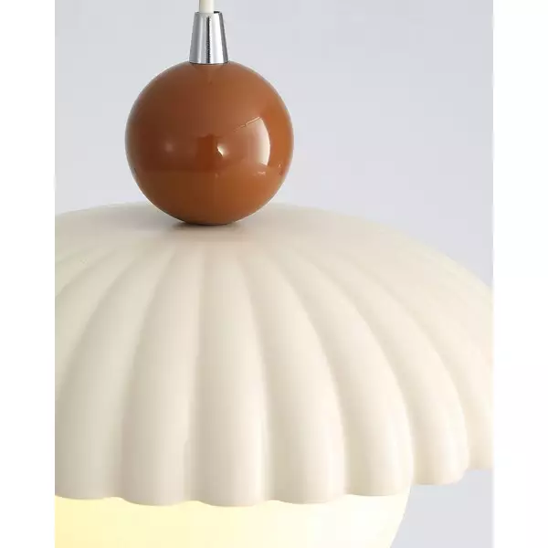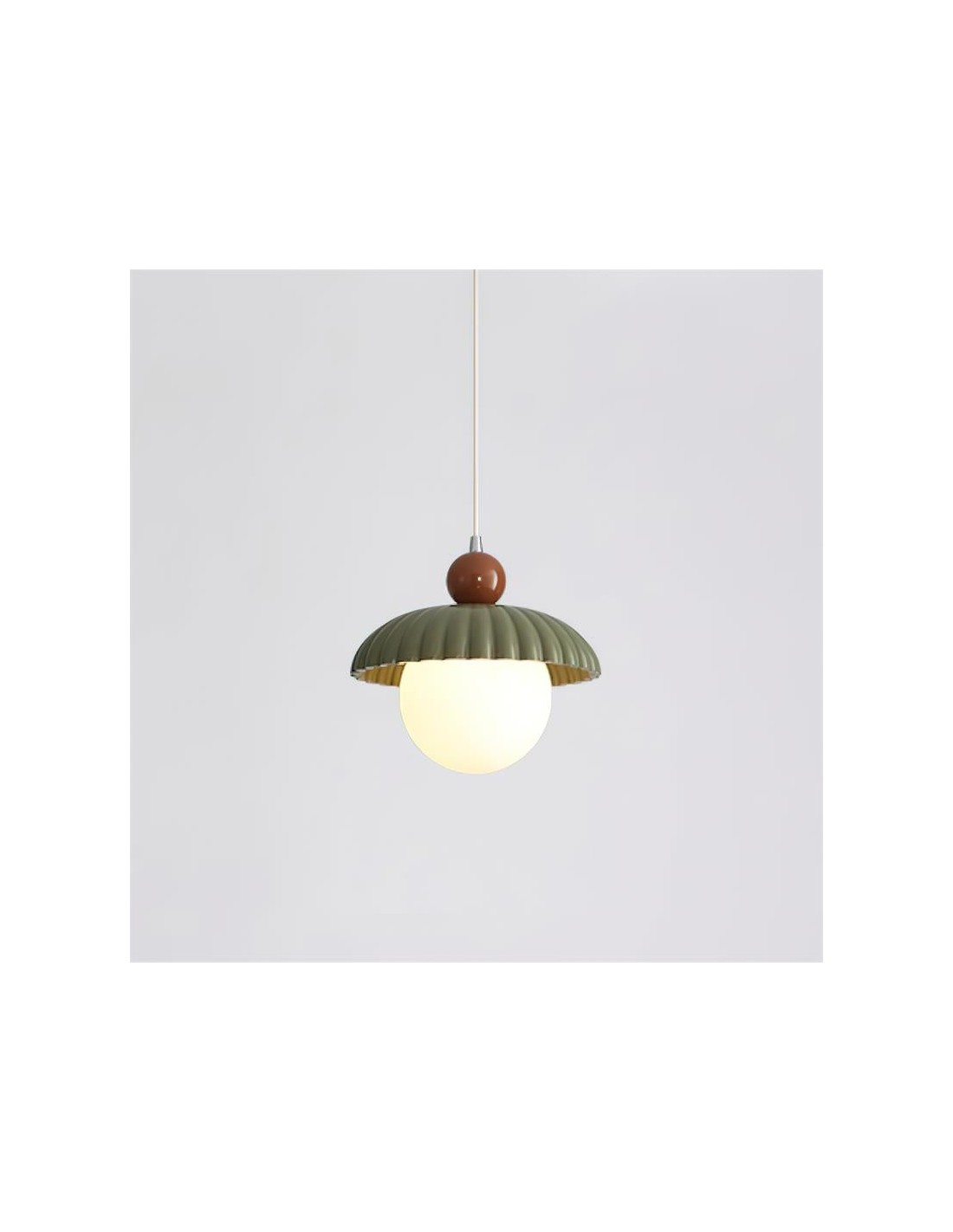 Cette suspension apporte une présence sculpturale et audacieuse à toute pièce grâce à son abat-jour en verre en forme de dôme et à son globe lumineux central. Ses lignes épurées et sa silhouette rétro-moderne lui confèrent du caractère, qu'elle soit installée seule ou en groupe. Conçue pour les salles à manger, les cuisines, les salons ou les entrées, elle offre un éclairage chaleureux et accueillant qui sublime les intérieurs, du classique au contemporain.