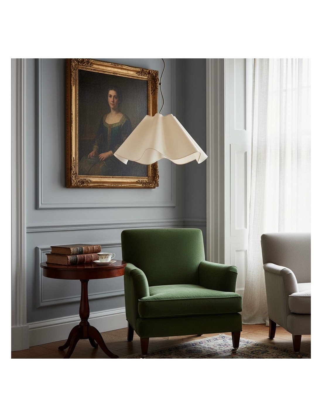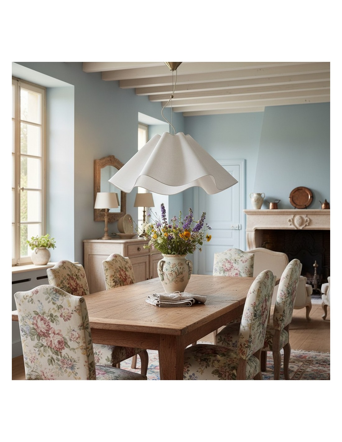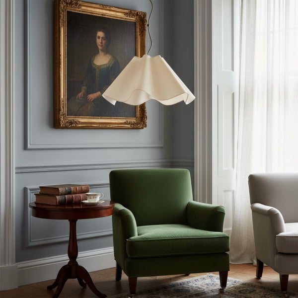 Suspension Oslan en lin ivoire - Abat-jour festonné - Plafonnier moderne KL1262