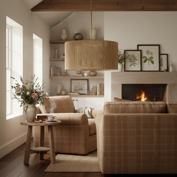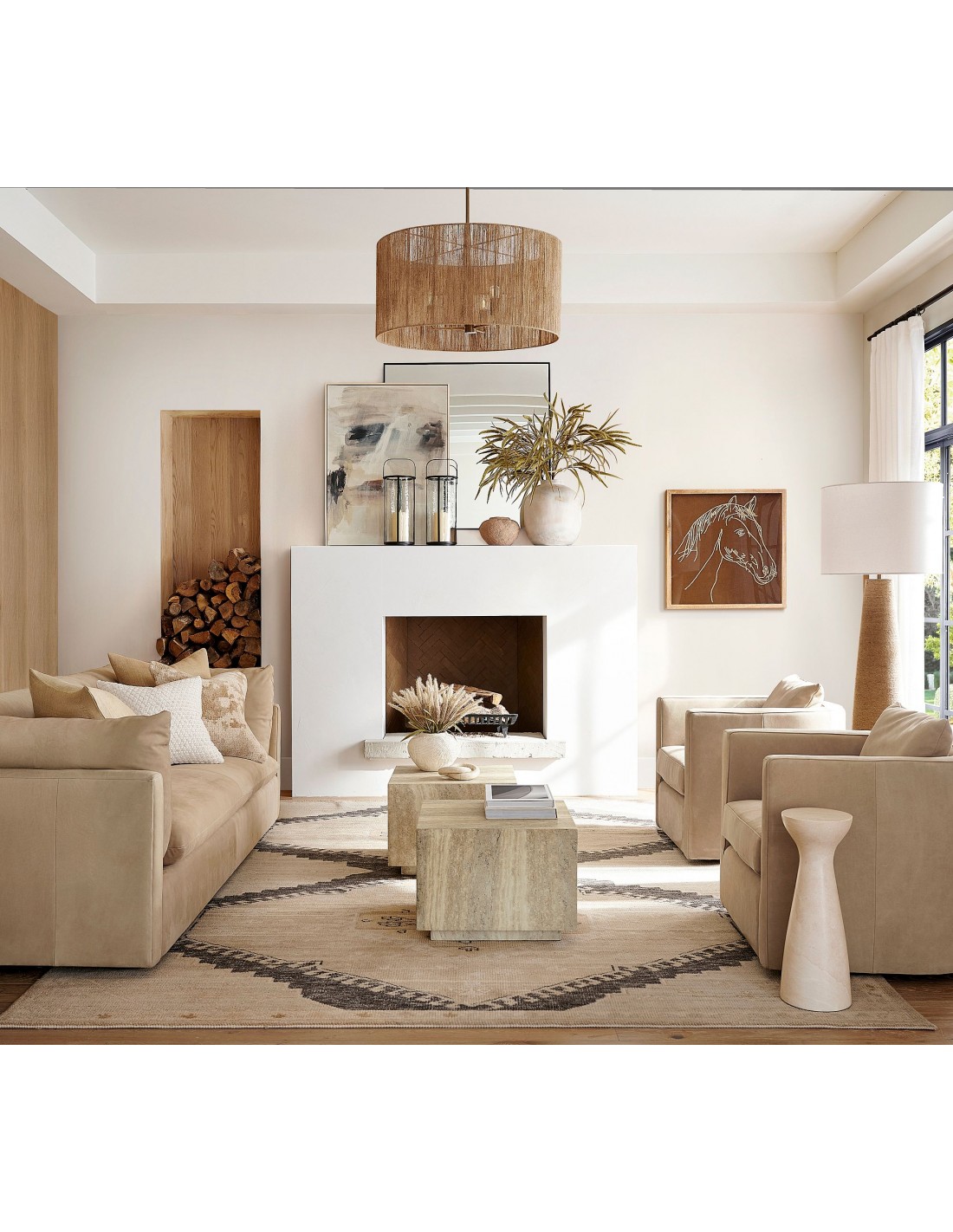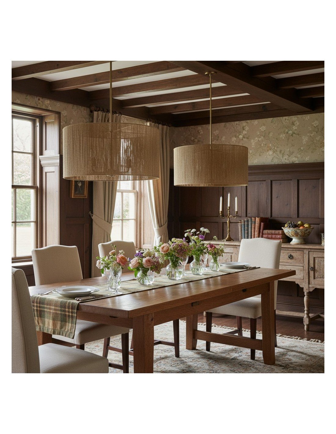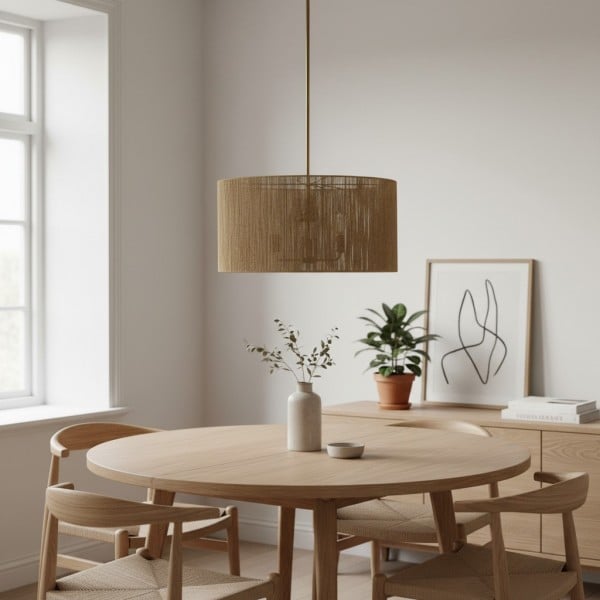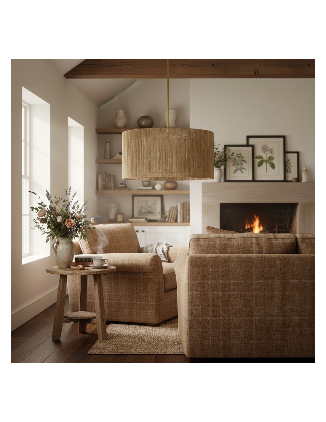 La suspension tambour tissée en laiton antique apporte texture et chaleur à tout intérieur. Dotée d'un abat-jour tambour tissé et d'une élégante finition en laiton antique, cette suspension est idéale pour les salons, les salles à manger ou les entrées. Son design classique s'intègre parfaitement aux intérieurs modernes et traditionnels.