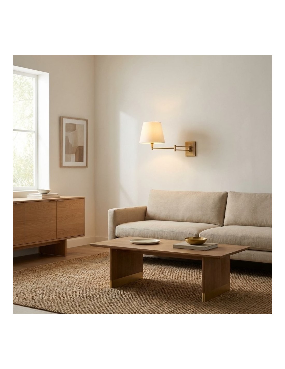 Applique murale moderne à bras articulé, dotée d'un abat-jour en lin clair et d'un bras réglable pour un éclairage modulable. Idéale pour les chambres, les coins lecture, les salons ou les couloirs, elle allie une lumière douce à un design épuré pour sublimer les espaces contemporains et de style transitionnel.