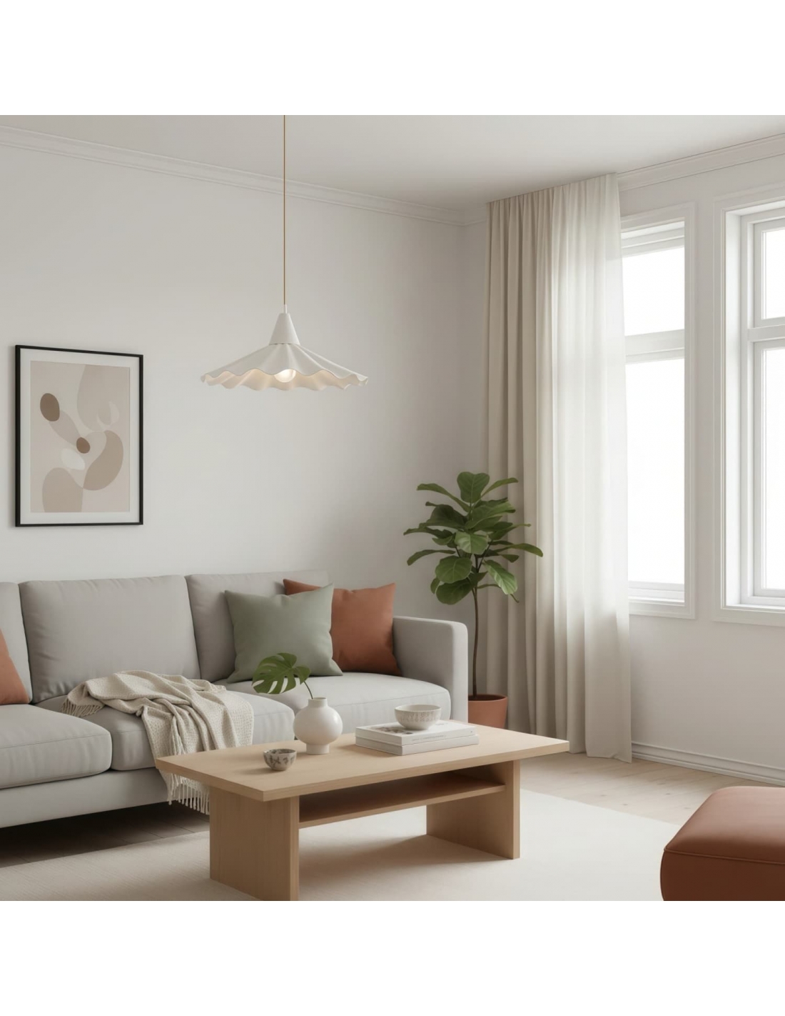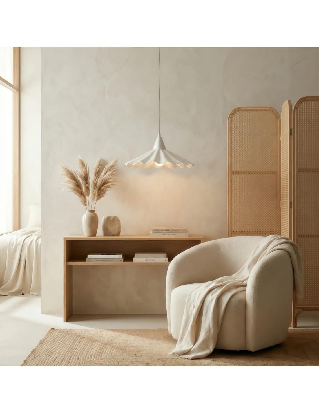 La suspension Arluneva est dotée d'un abat-jour en céramique en forme de vague, inspiré des courbes de l'océan. Fabriqué artisanalement, cet abat-jour dessine une silhouette sculpturale aux lignes organiques. Conçue comme une suspension contemporaine, elle s'intègre parfaitement dans les salles à manger, les chambres et les salons.