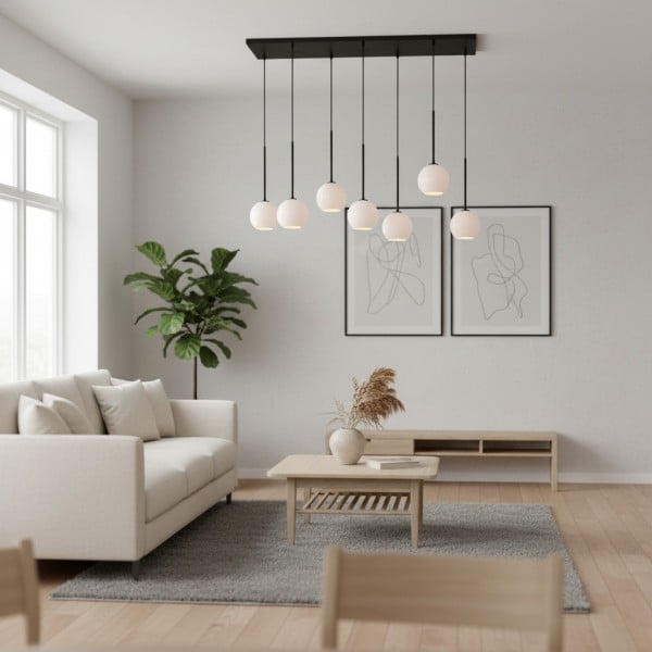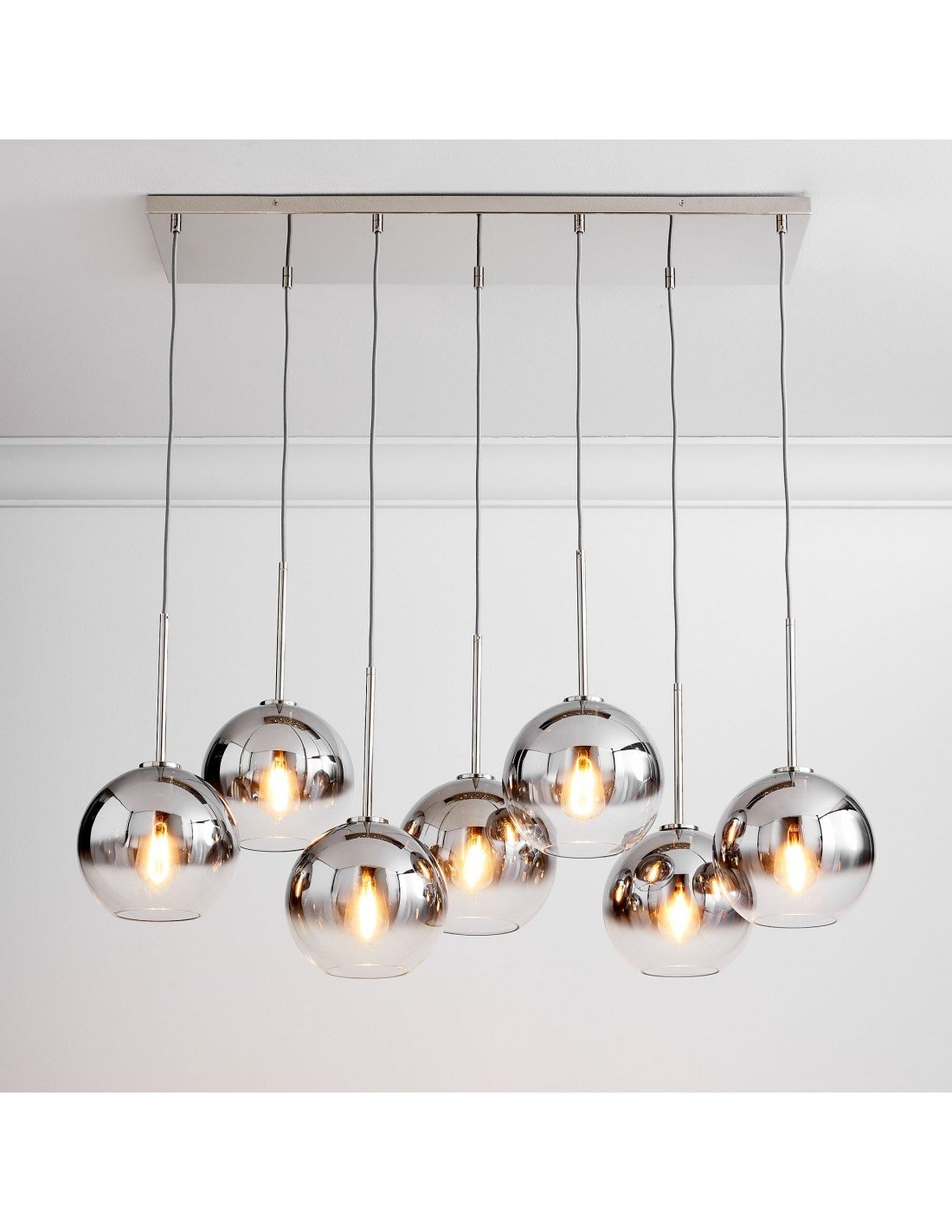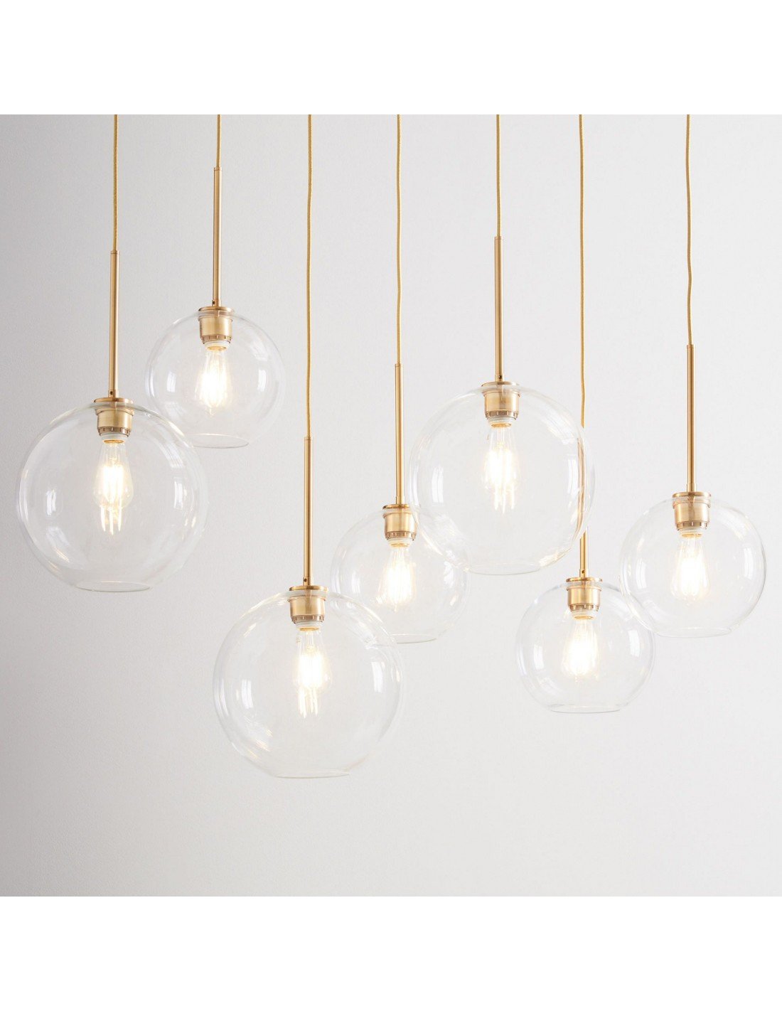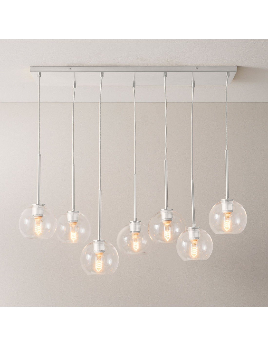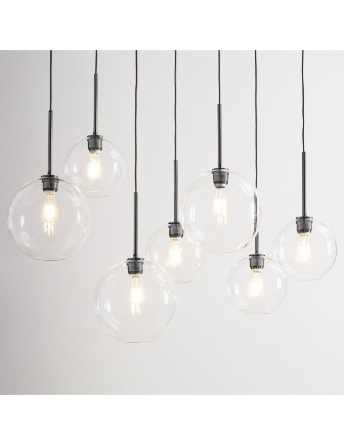 Ce lustre sculptural à 7 lumières incarne l'élégance moderne, avec ses globes en verre et sa finition métallique élégante. Conçu pour s'harmoniser avec les intérieurs contemporains, il est le luminaire idéal pour apporter chaleur et sophistication à votre salle à manger ou à votre salon.