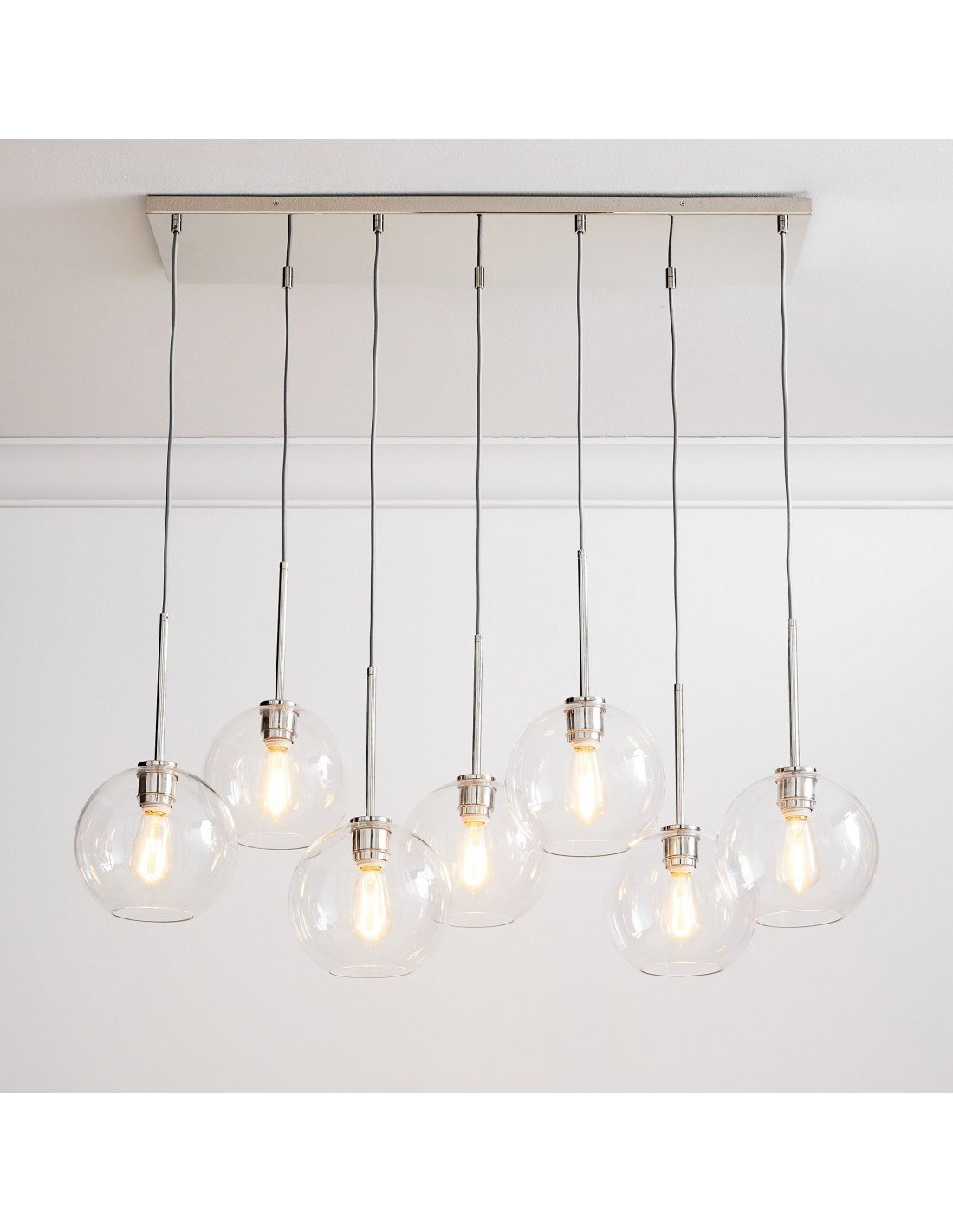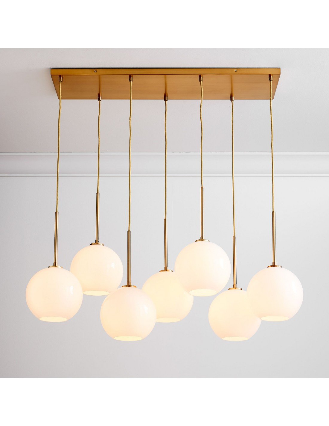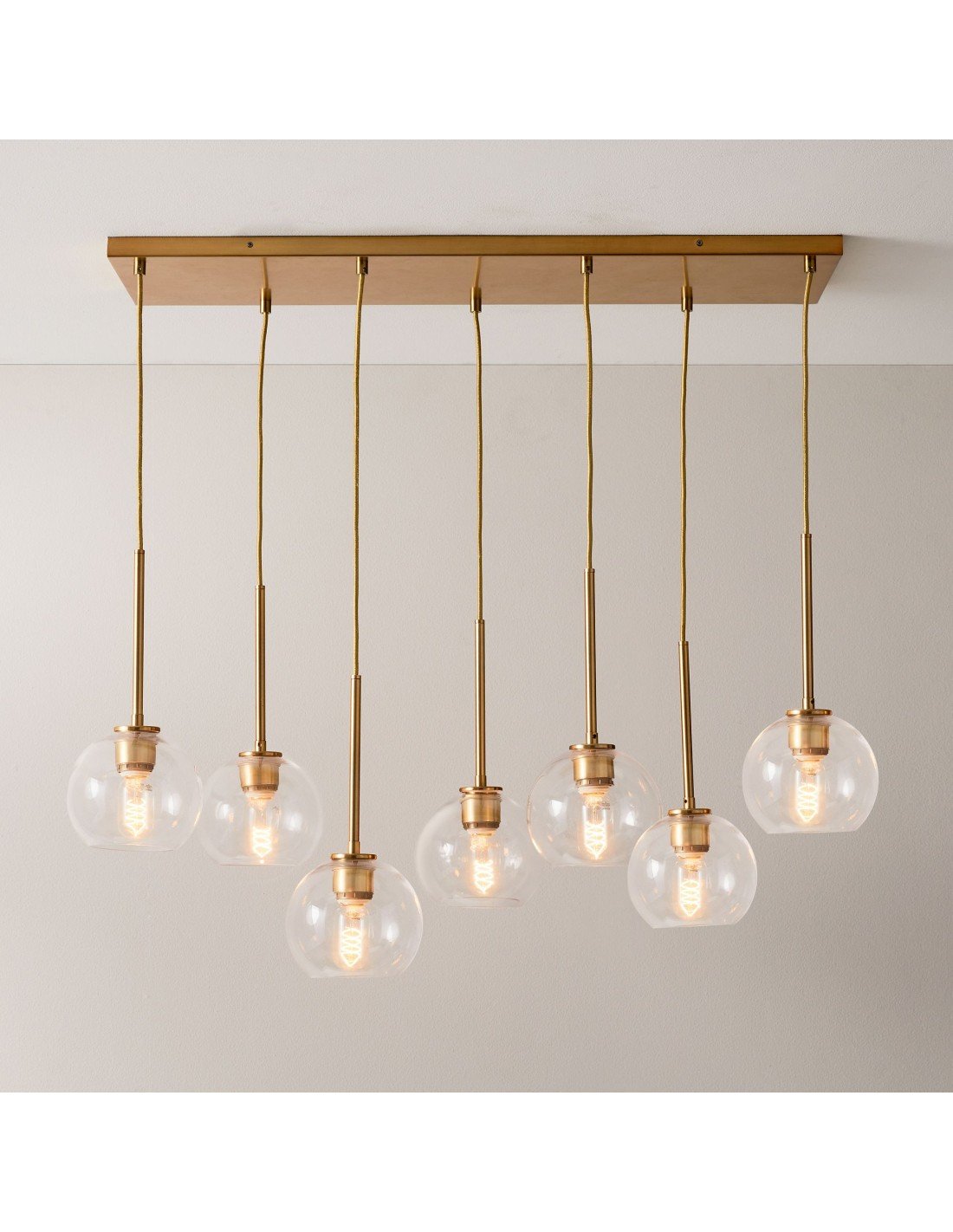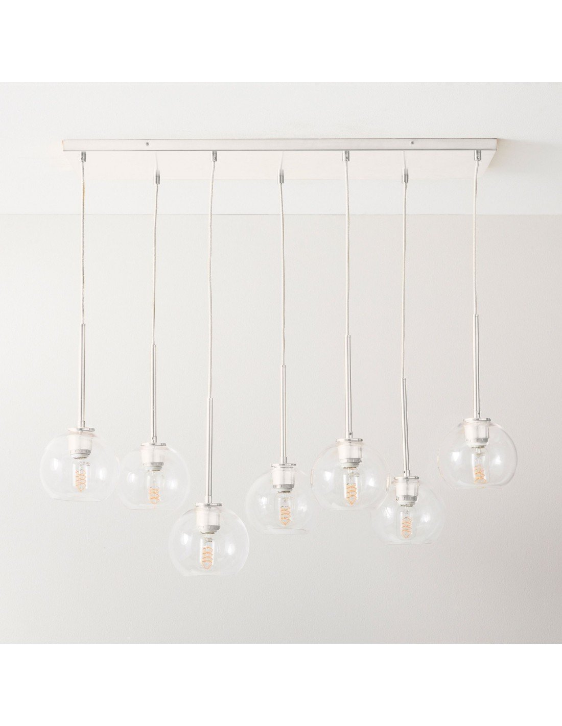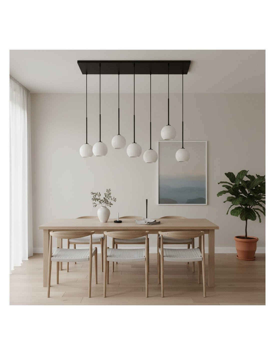 Ce lustre sculptural à 7 lumières incarne l'élégance moderne, avec ses globes en verre et sa finition métallique élégante. Conçu pour s'harmoniser avec les intérieurs contemporains, il est le luminaire idéal pour apporter chaleur et sophistication à votre salle à manger ou à votre salon.