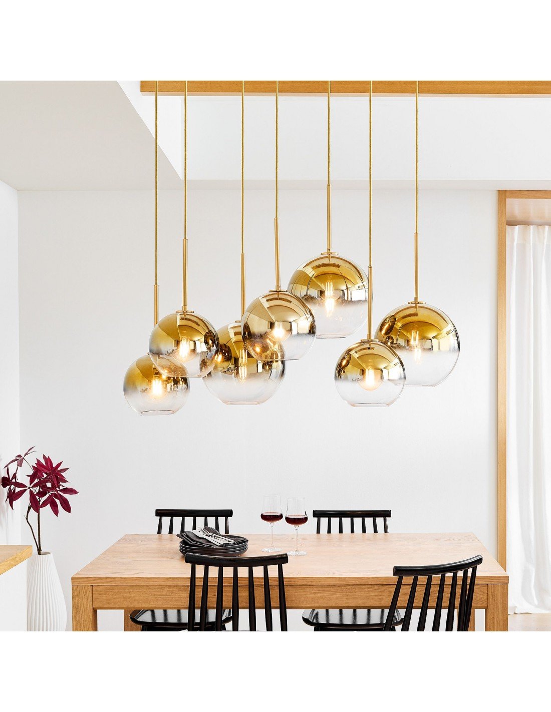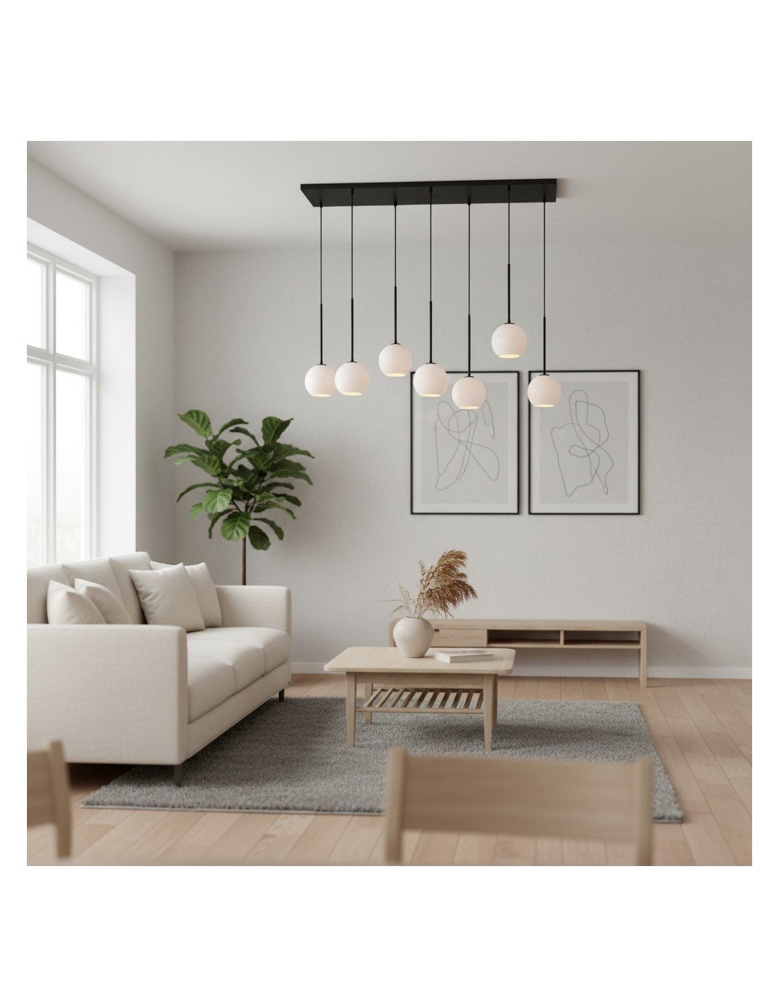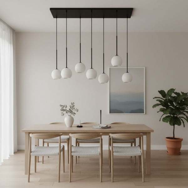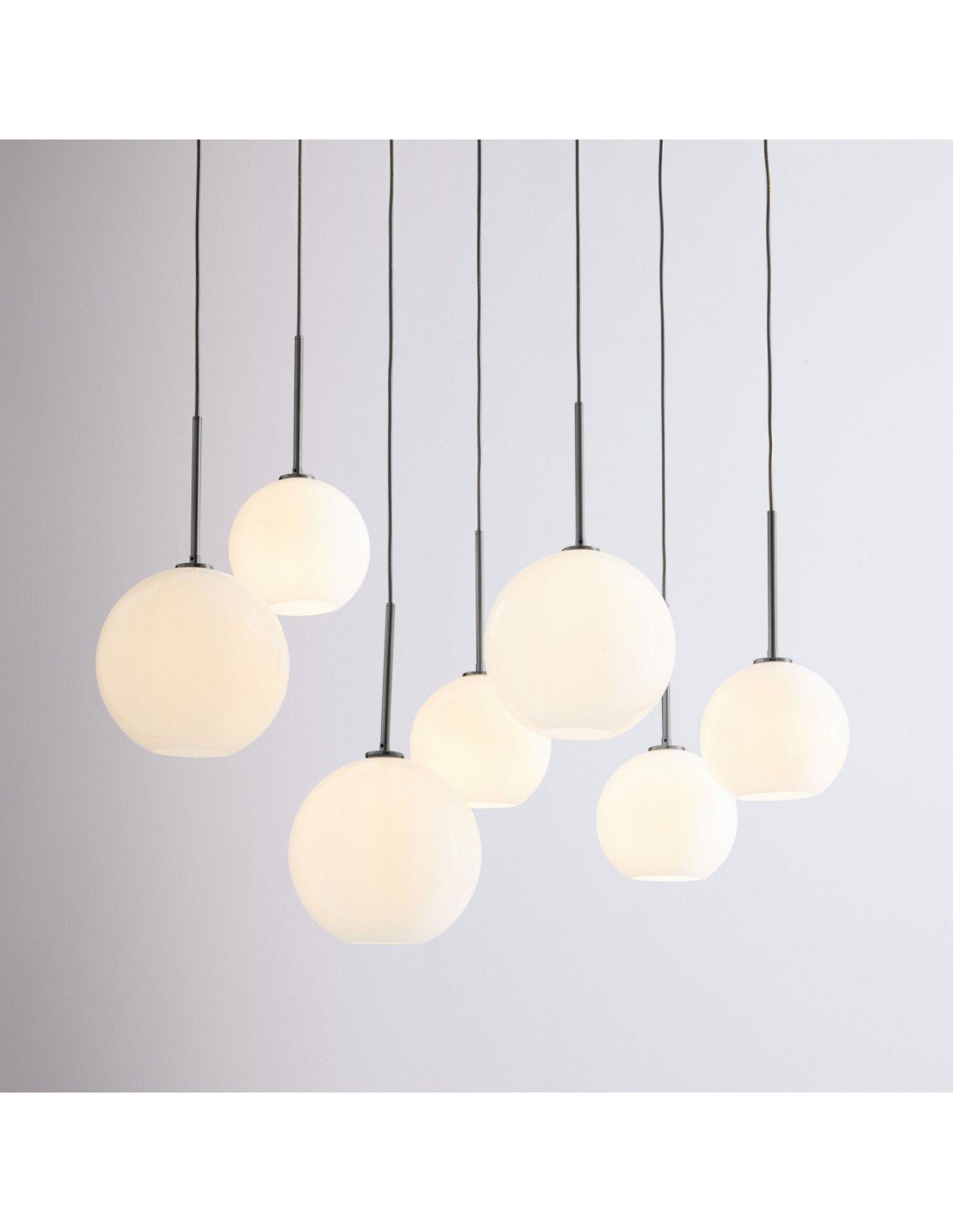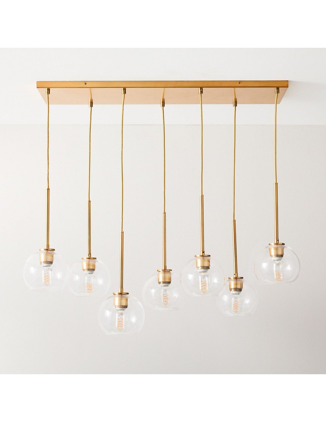 Ce lustre sculptural à 7 lumières incarne l'élégance moderne, avec ses globes en verre et sa finition métallique élégante. Conçu pour s'harmoniser avec les intérieurs contemporains, il est le luminaire idéal pour apporter chaleur et sophistication à votre salle à manger ou à votre salon.