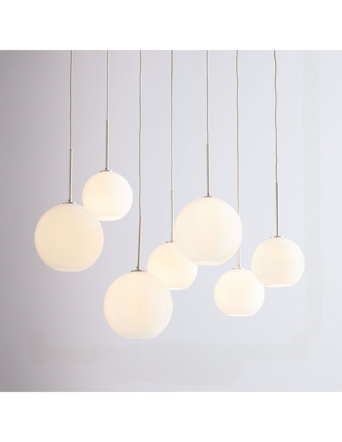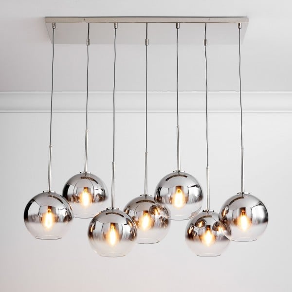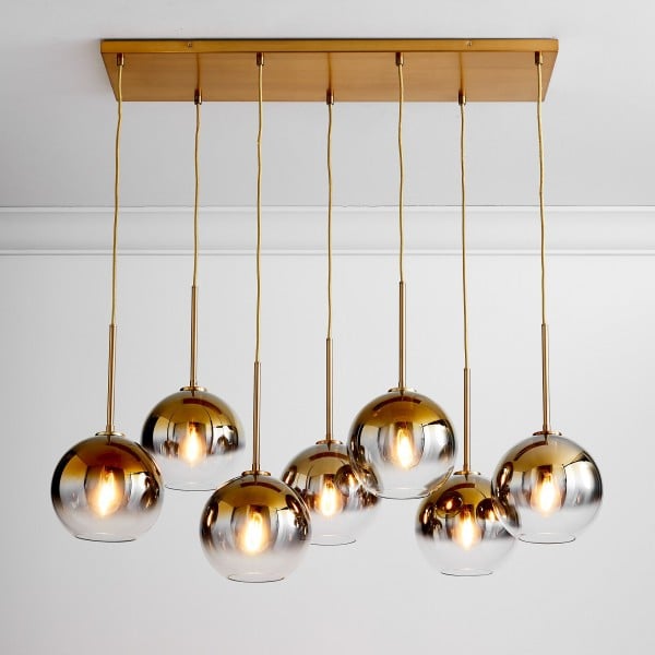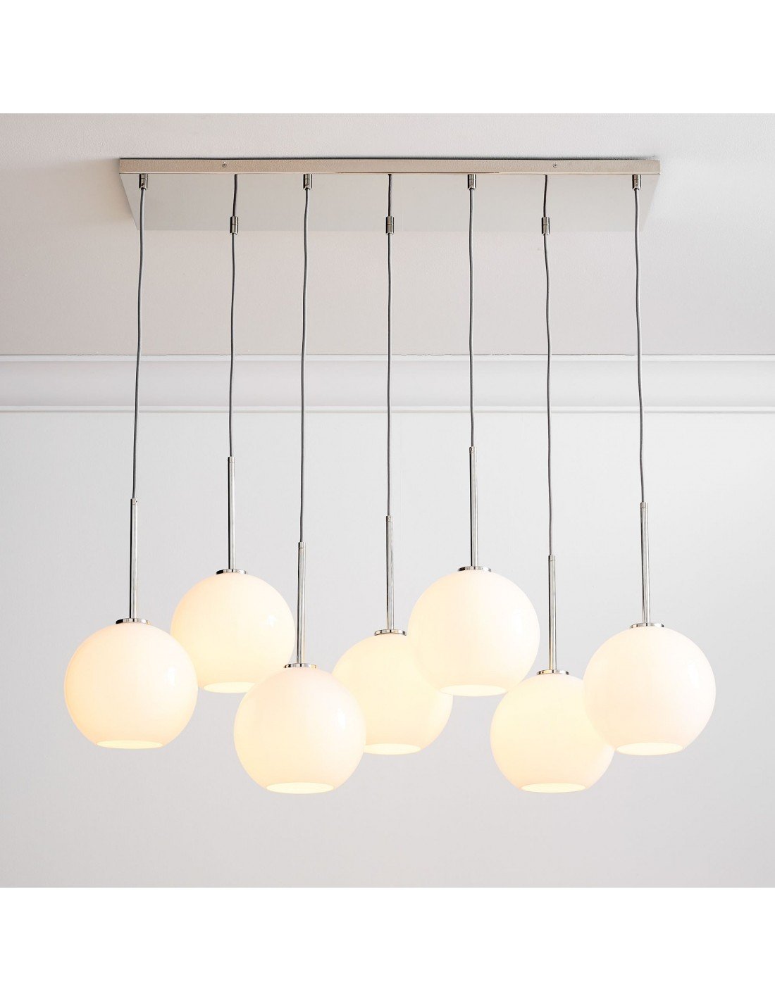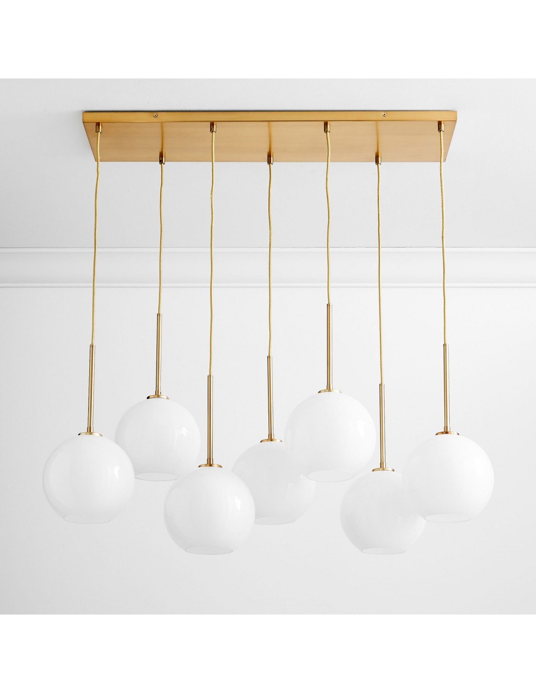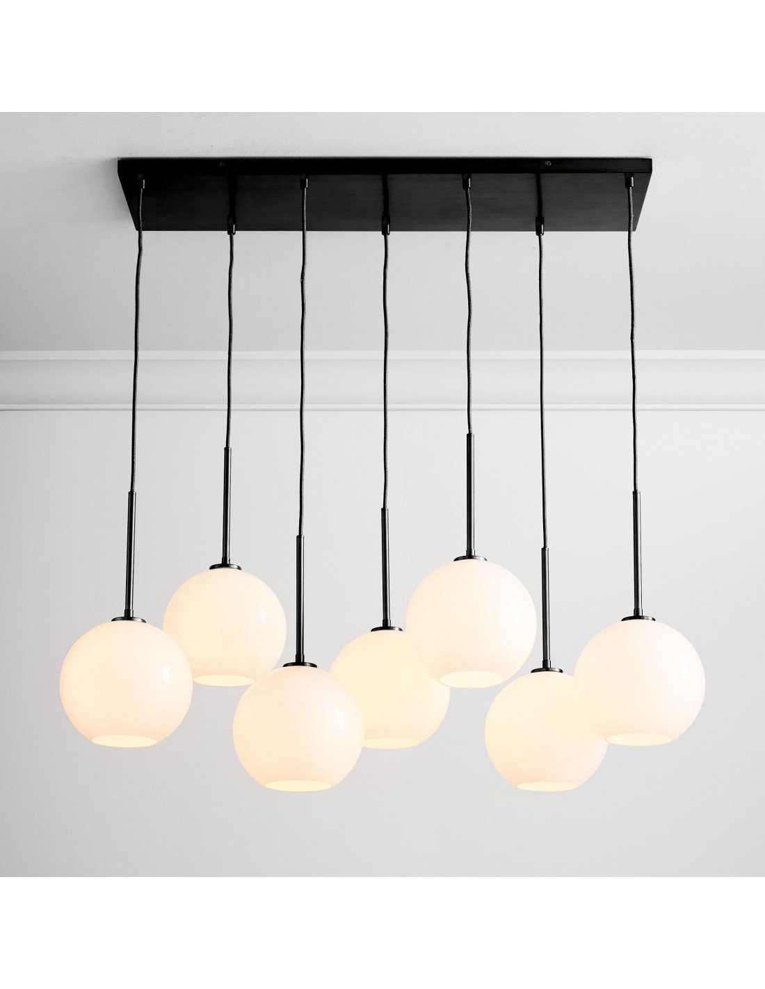 Ce lustre sculptural à 7 lumières incarne l'élégance moderne, avec ses globes en verre et sa finition métallique élégante. Conçu pour s'harmoniser avec les intérieurs contemporains, il est le luminaire idéal pour apporter chaleur et sophistication à votre salle à manger ou à votre salon.
