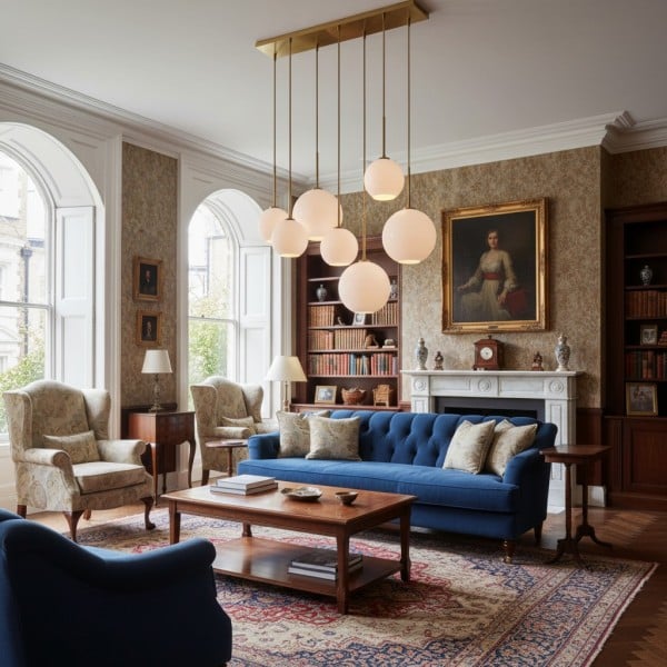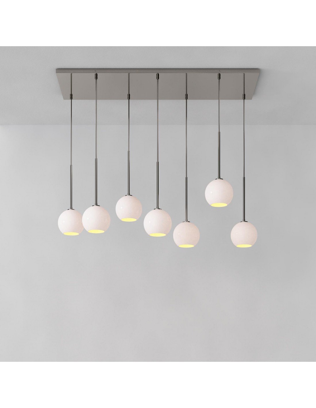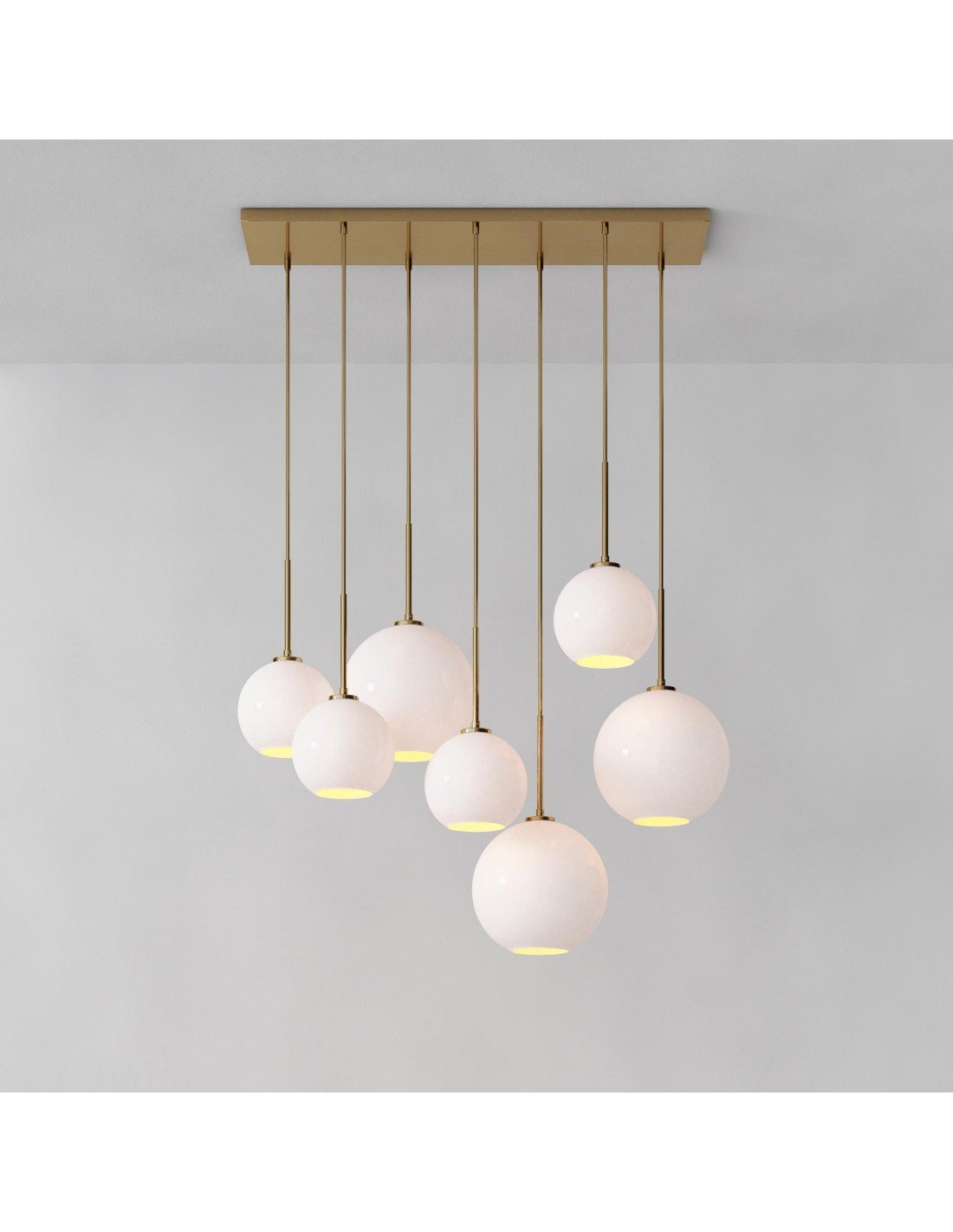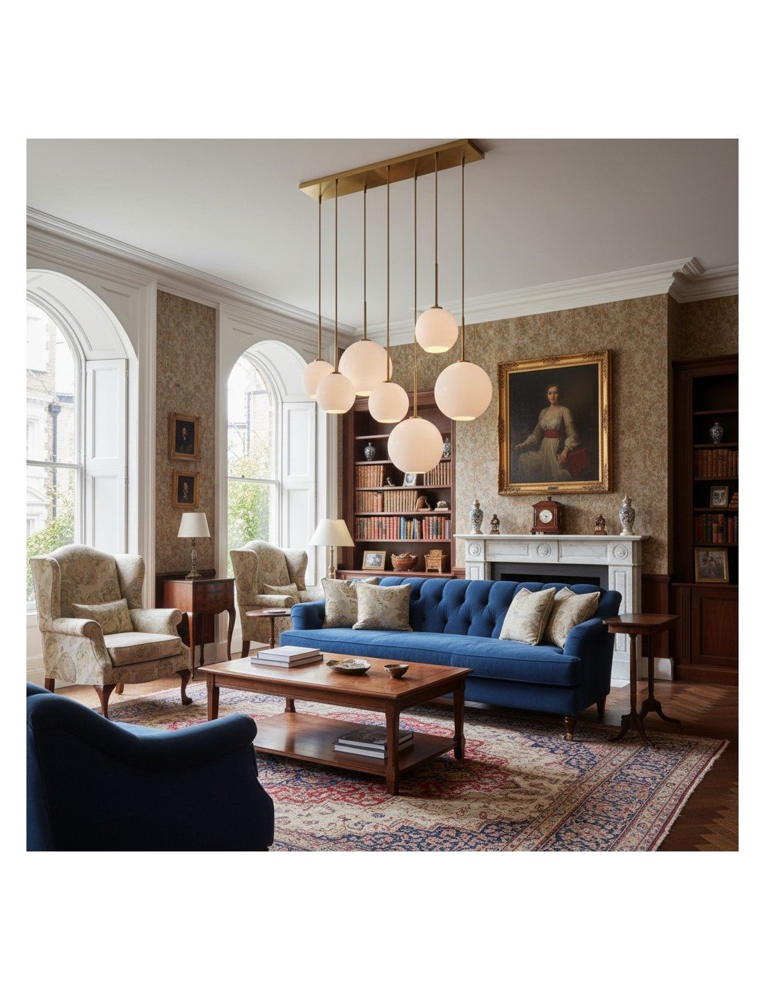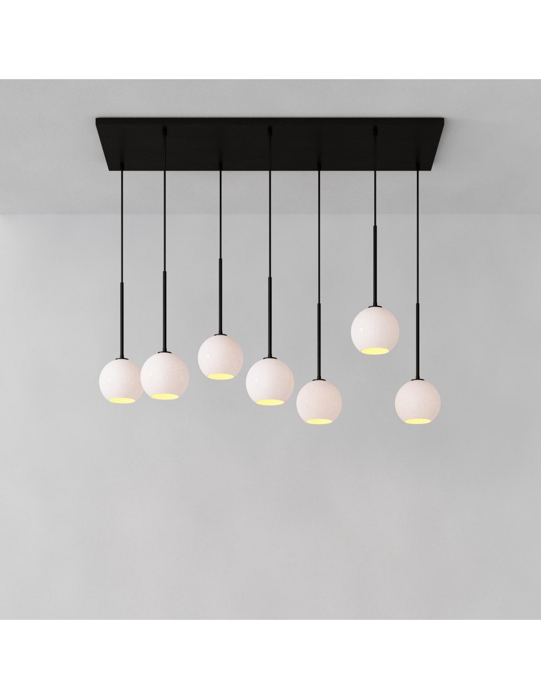 Ce lustre sculptural à 7 lumières incarne l'élégance moderne, avec ses globes en verre et sa finition métallique élégante. Conçu pour s'harmoniser avec les intérieurs contemporains, il est le luminaire idéal pour apporter chaleur et sophistication à votre salle à manger ou à votre salon.