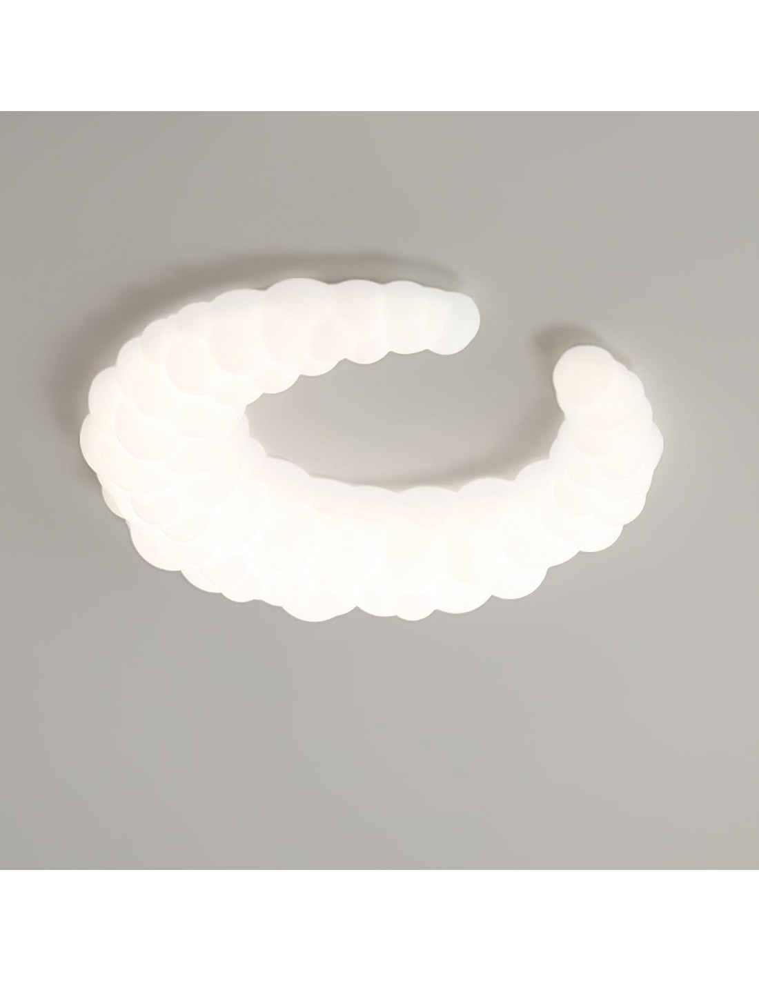 Le plafonnier contemporain aux finitions blanches s'adapte à tous les styles de décoration. L'abat-jour en forme de lune rappelle l'aura dans l'air. De plus, la lumière est un anneau en forme de halo ainsi que les ampoules LED intégrées au cadre, débordant d'amour sentimental.