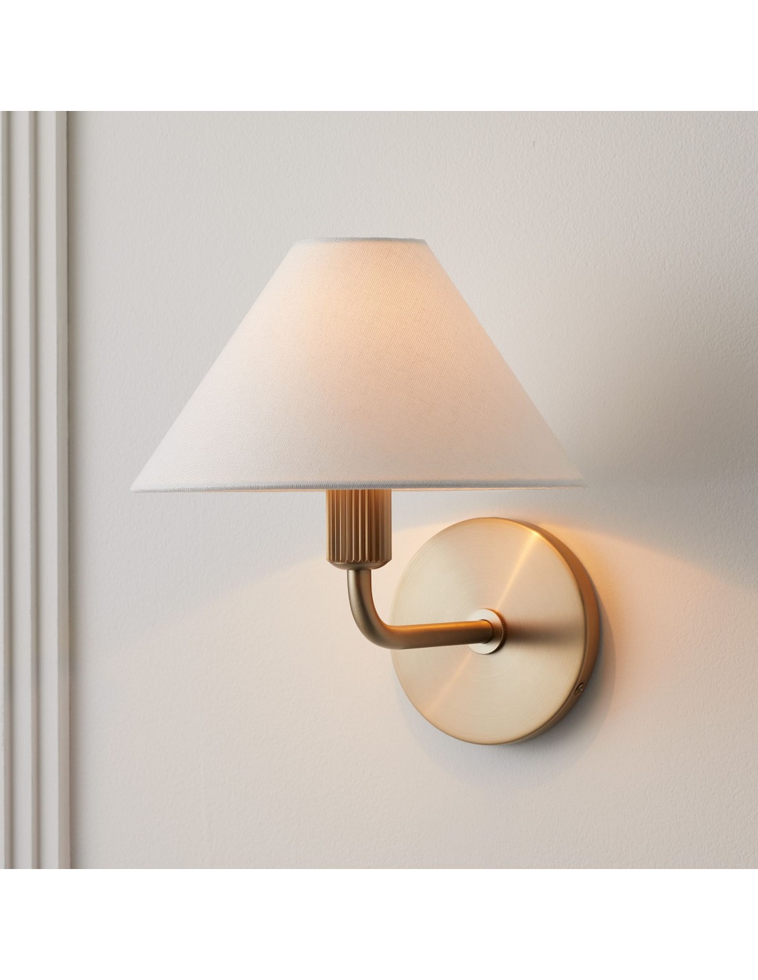 L'applique Diora allie des détails en laiton élégants à un abat-jour fuselé, créant un style raffiné qui sublimera n'importe quel espace. Sa silhouette épurée allie style contemporain et élégance intemporelle, idéale pour les couloirs, les chambres ou les salons recherchant un éclairage chaleureux et élégant.