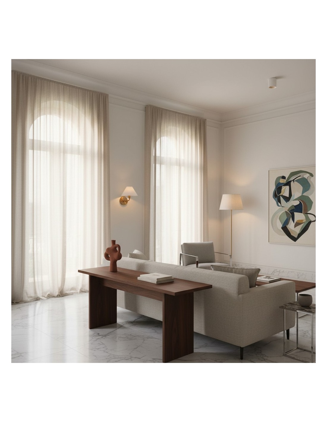 - Abat-jour en lin blanc.