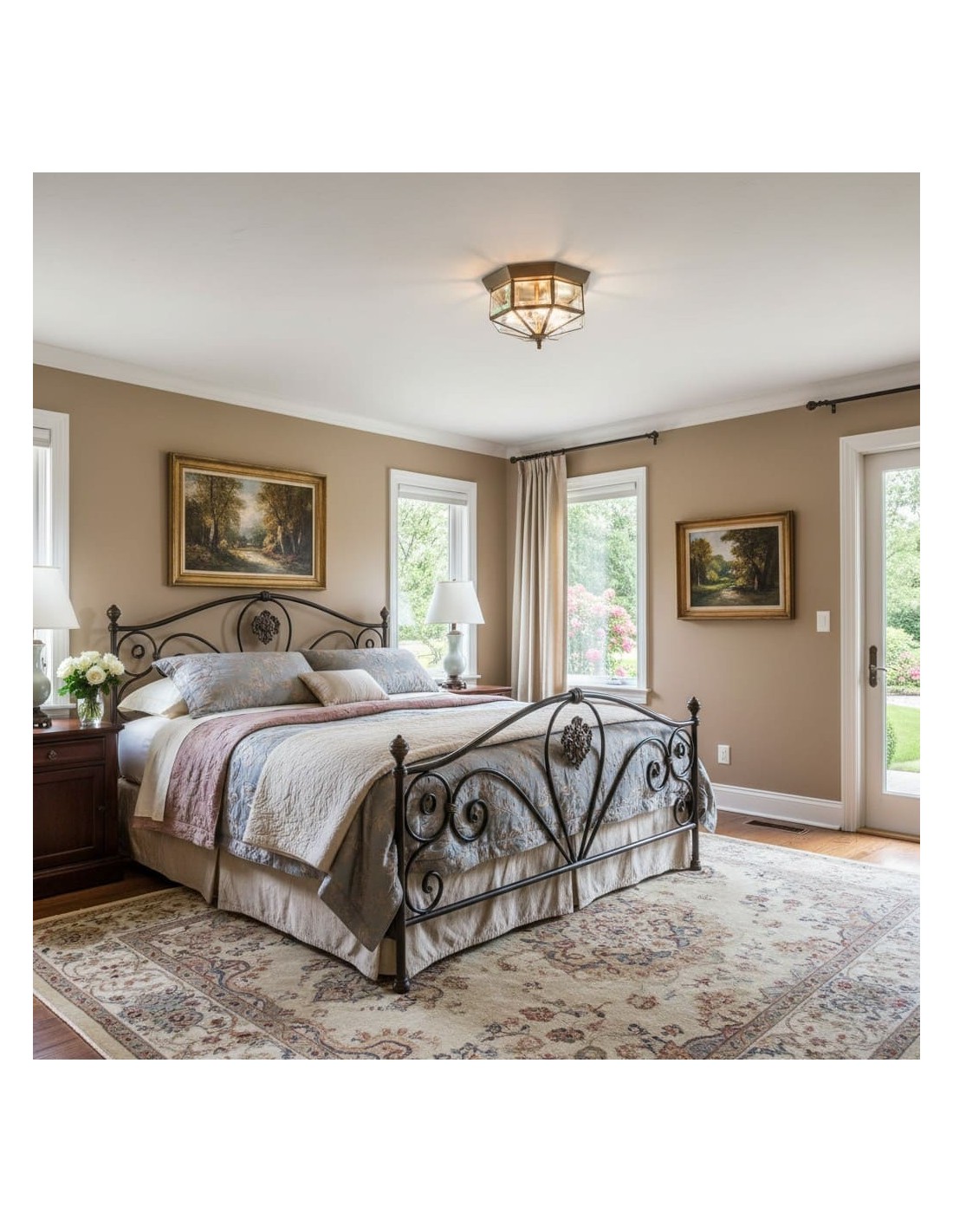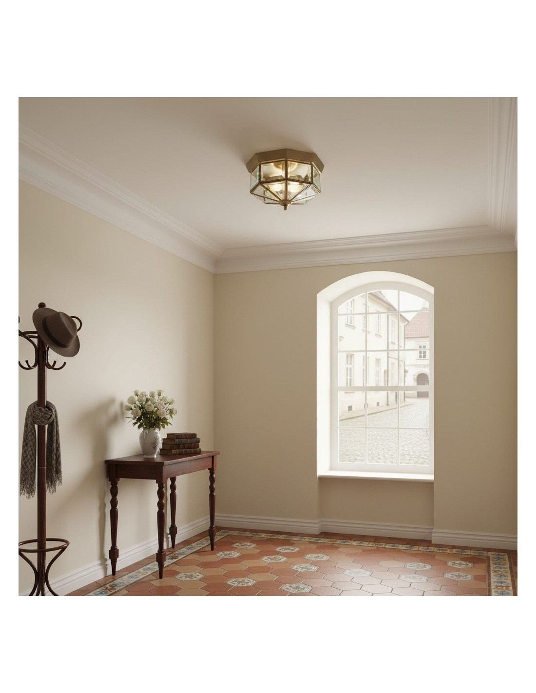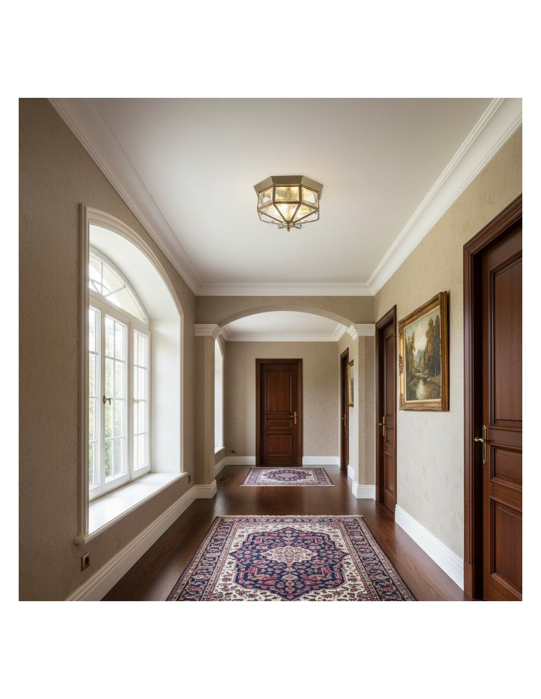 Ce plafonnier encastré de style lanterne associe des panneaux de verre transparent à une structure métallique classique, créant un style intemporel qui convient aux salons, chambres, couloirs et espaces à plafond bas. Son format compact diffuse une lumière chaude et équilibrée, sublimant les intérieurs traditionnels comme modernes.