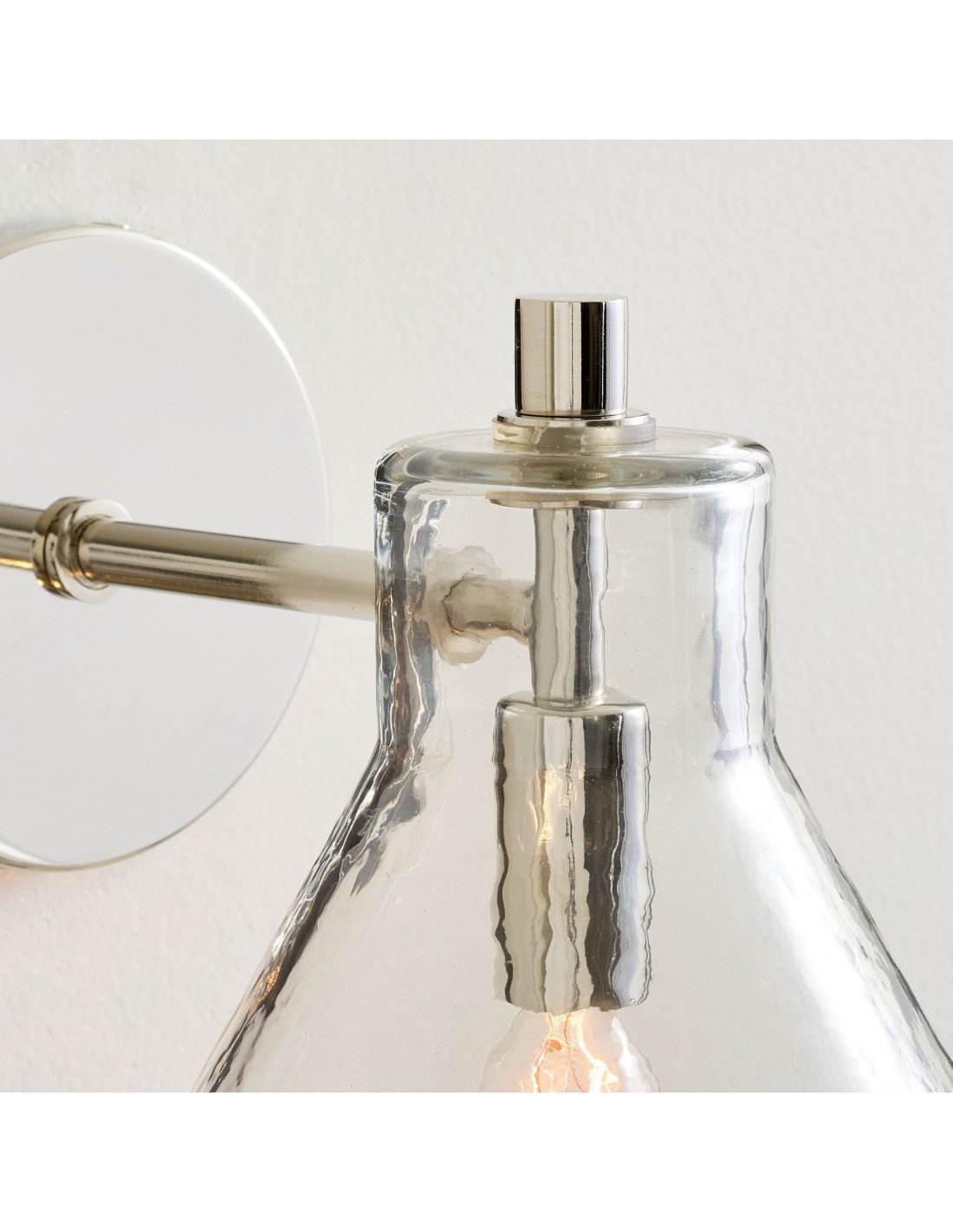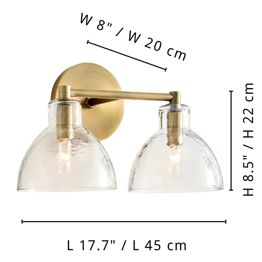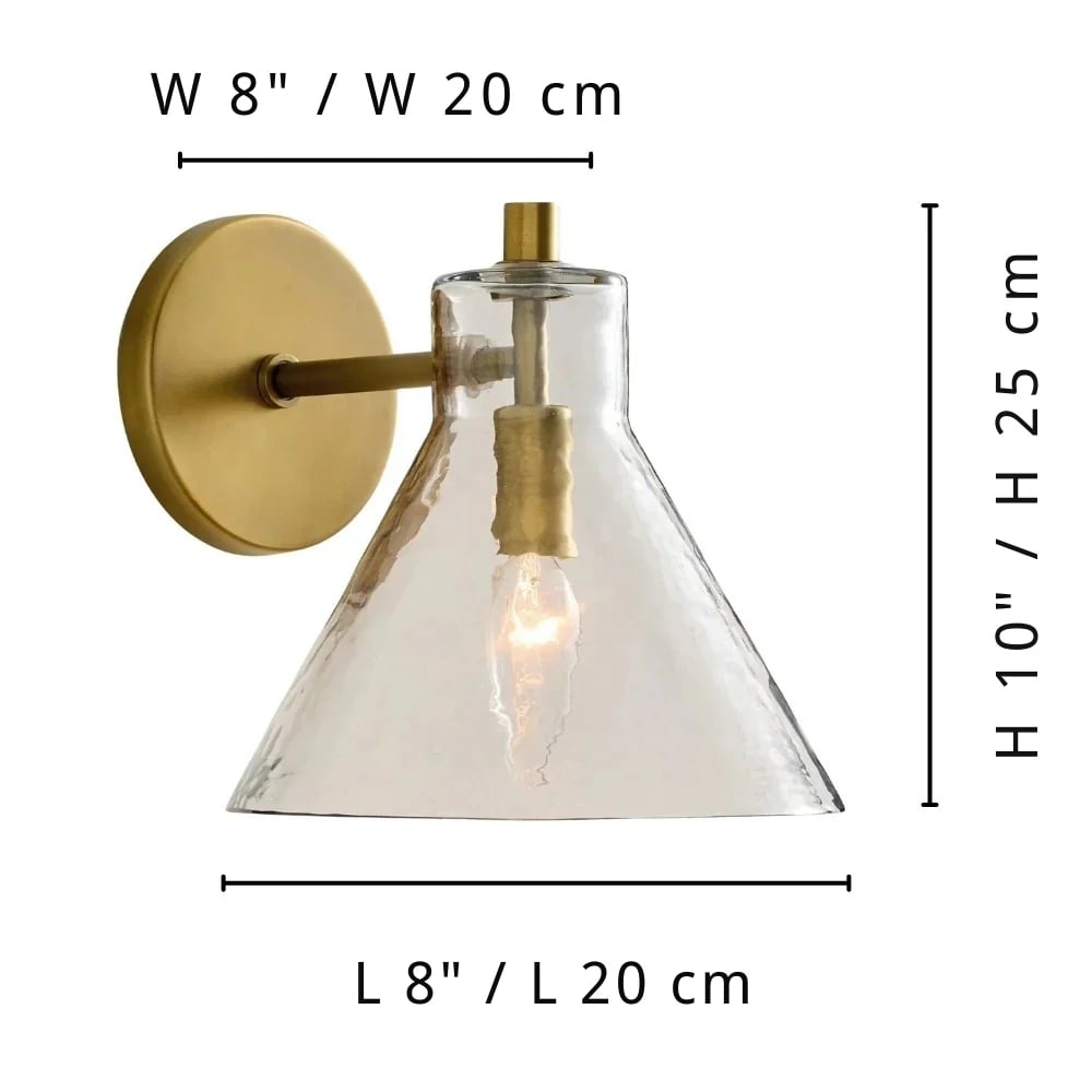 La collection d'appliques en verre recyclé Glavira comprend des modèles petits, évasés, doubles et triples. Chaque applique est fabriquée en laiton et en verre recyclé soufflé, avec des finitions comme laiton vieilli, bronze ou nickel poli. Idéales comme appliques de chambre, de couloir ou de salon, elles offrent une élégance polyvalente.