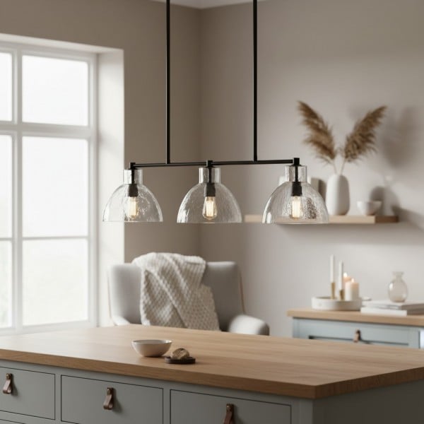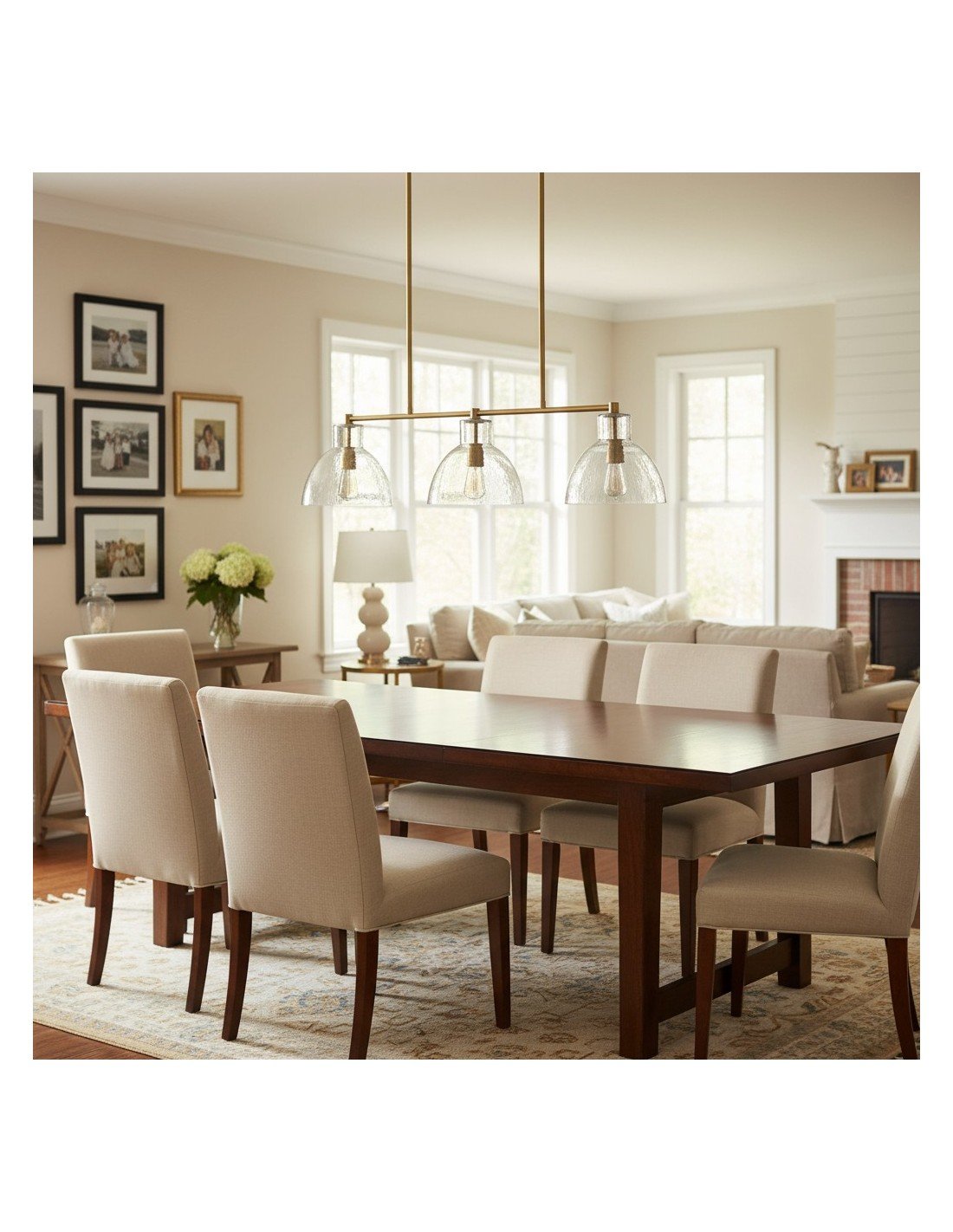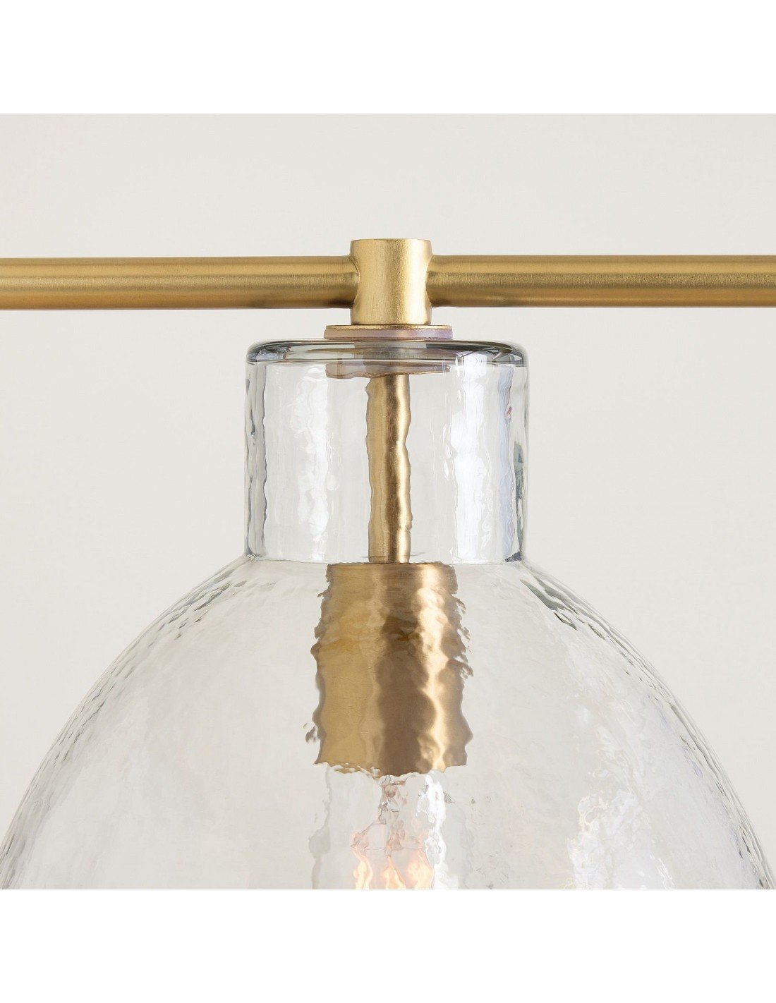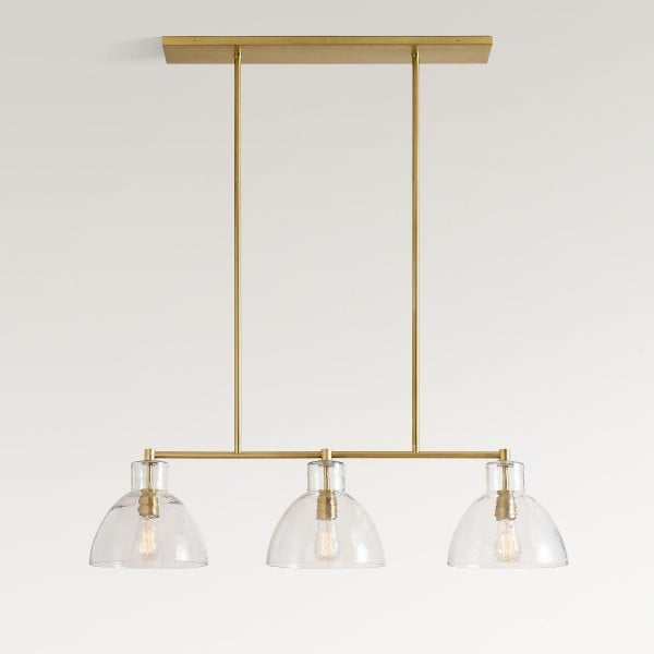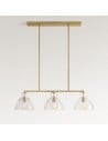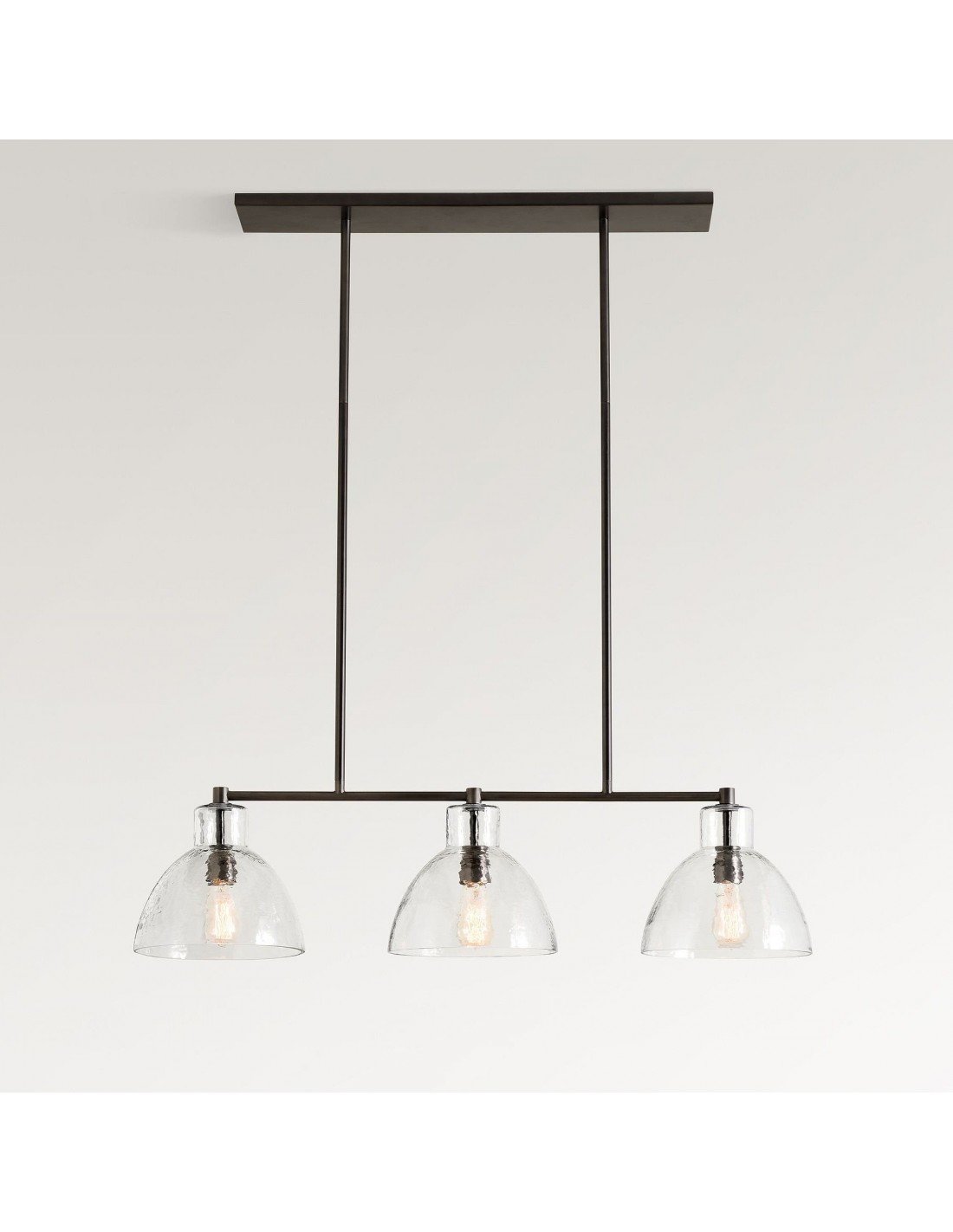 Alliant une structure en acier à des finitions en laiton vieilli ou en bronze, le lustre linéaire Glavira en verre recyclé est doté d'un abat-jour en verre transparent soufflé bouche. Parfait comme lustre de salle à manger, suspension d'îlot de cuisine ou pièce maîtresse de salon, ce lustre linéaire allie durabilité et charme contemporain à votre intérieur.