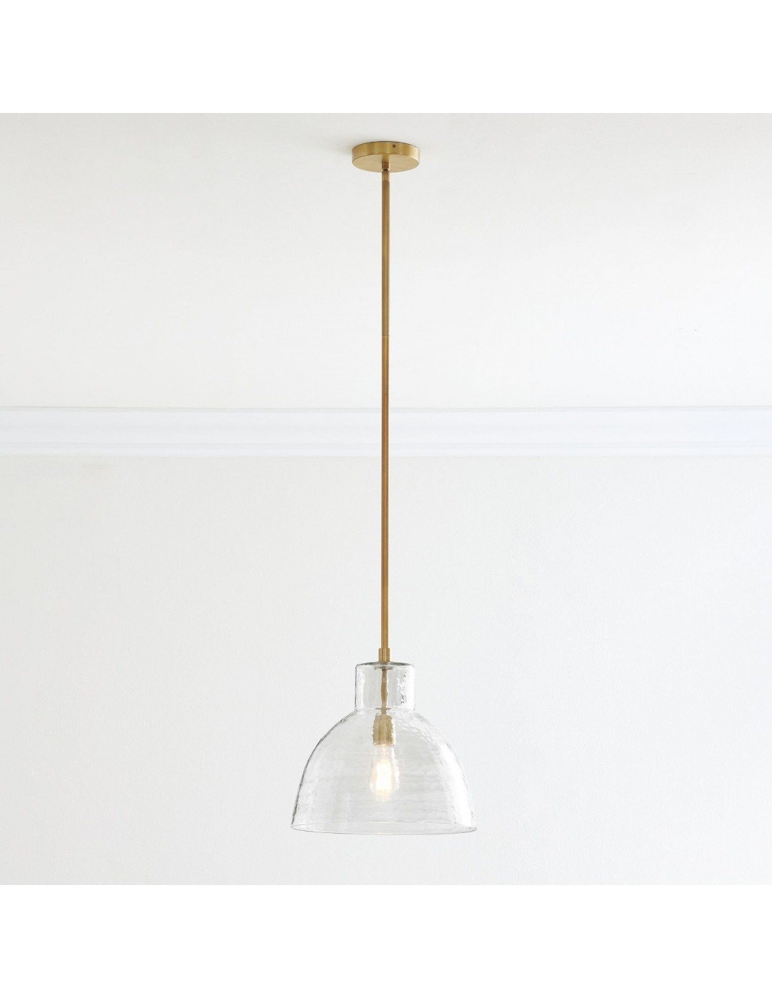 La collection de suspensions Glavira comprend la suspension Bridget en verre recyclé, la suspension évasée Glavira en verre recyclé et la suspension Glavira en métal. Les finitions disponibles sont le nickel poli, le laiton vieilli et le bronze. Ces suspensions modernes sont parfaites pour les salles à manger, les îlots de cuisine ou les salons, apportant une touche d'élégance aux touches de laiton et de verre.