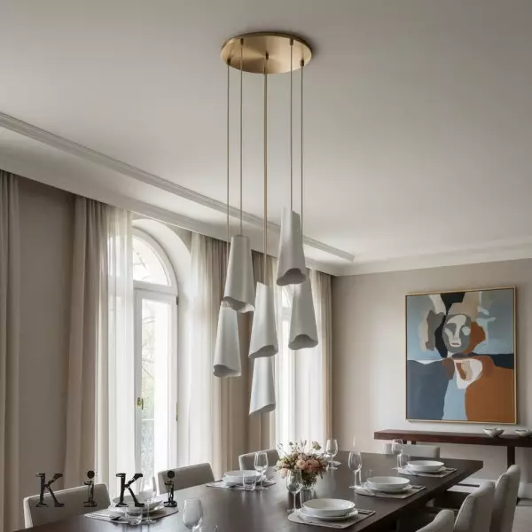 Les lustres Sofia incarnent l’élégance contemporaine et le minimalisme sculptural, idéals pour illuminer et décorer vos espaces de vie. Chaque modèle combine des bras en métal délicatement finis et des diffuseurs élégants qui diffusent une lumière douce et accueillante, créant une ambiance chaleureuse sans éblouir.
