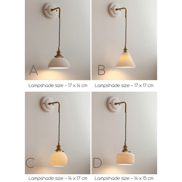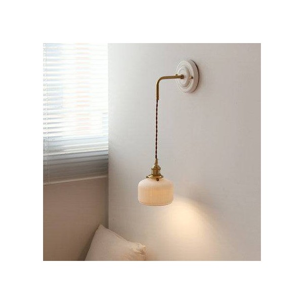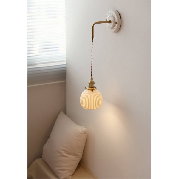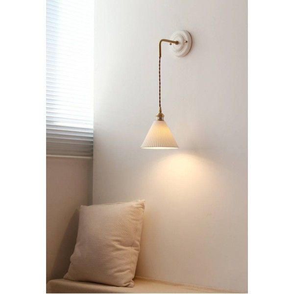 Applique murale décorative avec abat-jour en céramique et plaque murale. Personnalisable, elle peut être branchée sur secteur ou à tirette. Sa couleur blanc neutre s'intègre parfaitement à tous les espaces. Sa finition laiton apportera une touche d'élégance à tout décor moderne.
