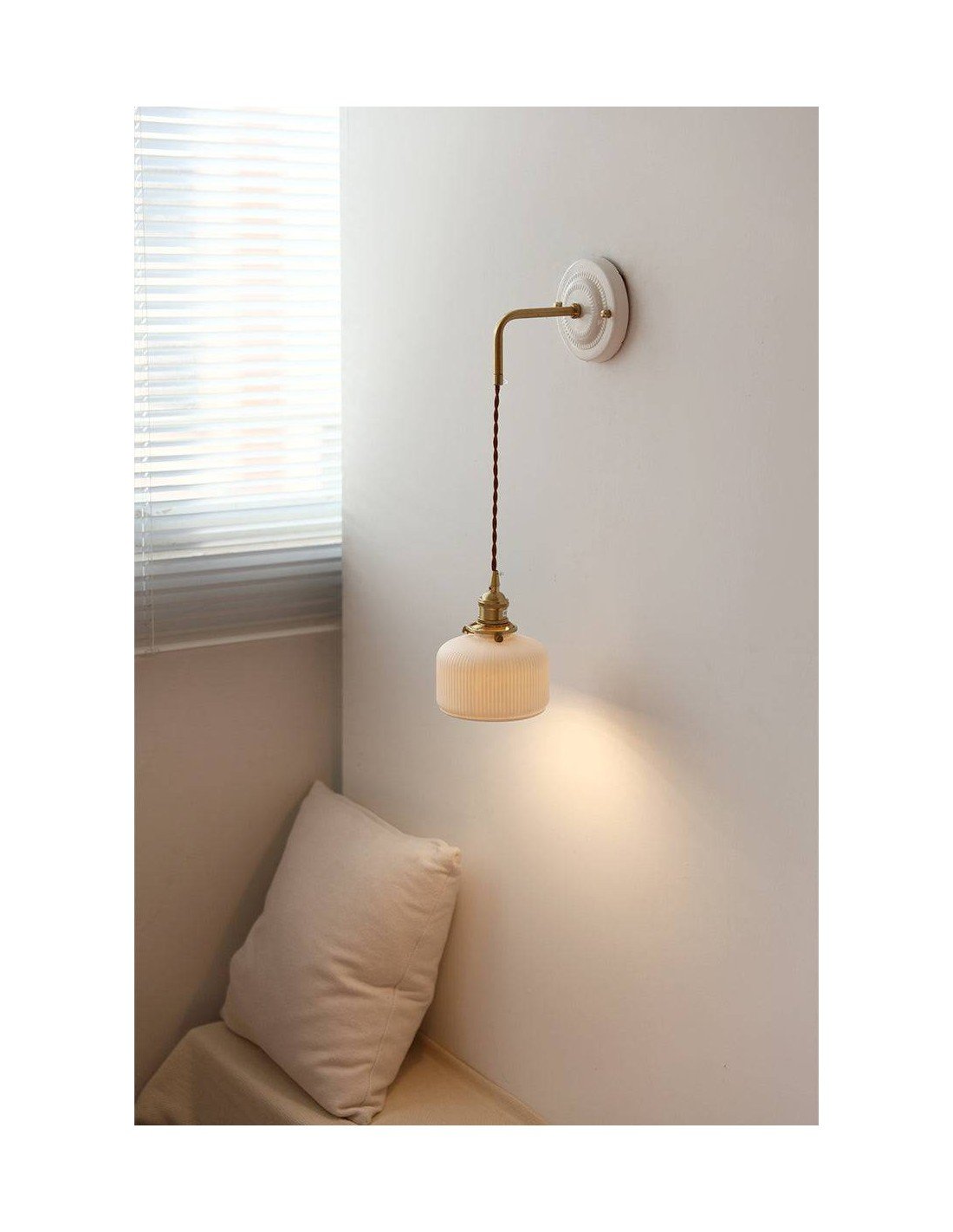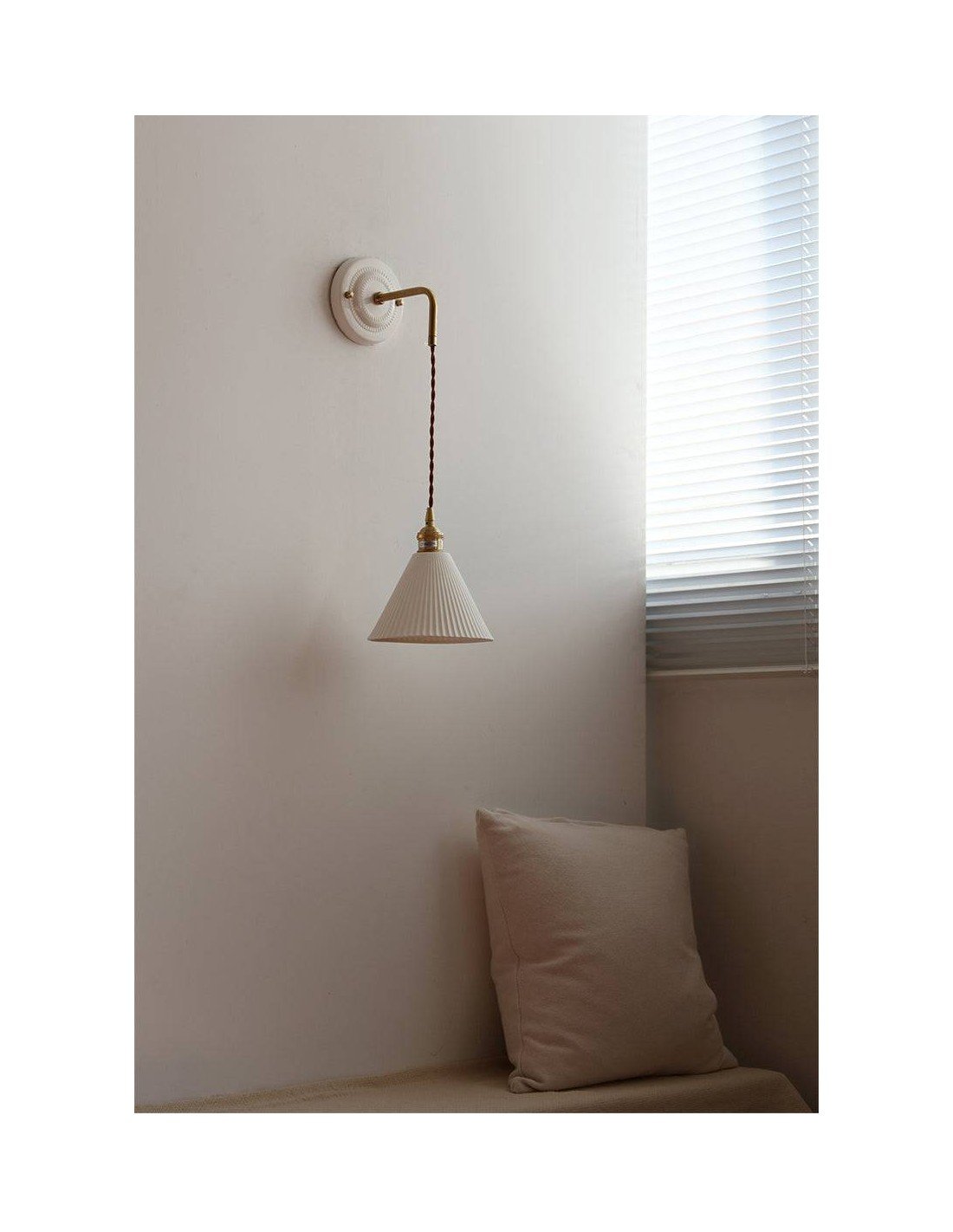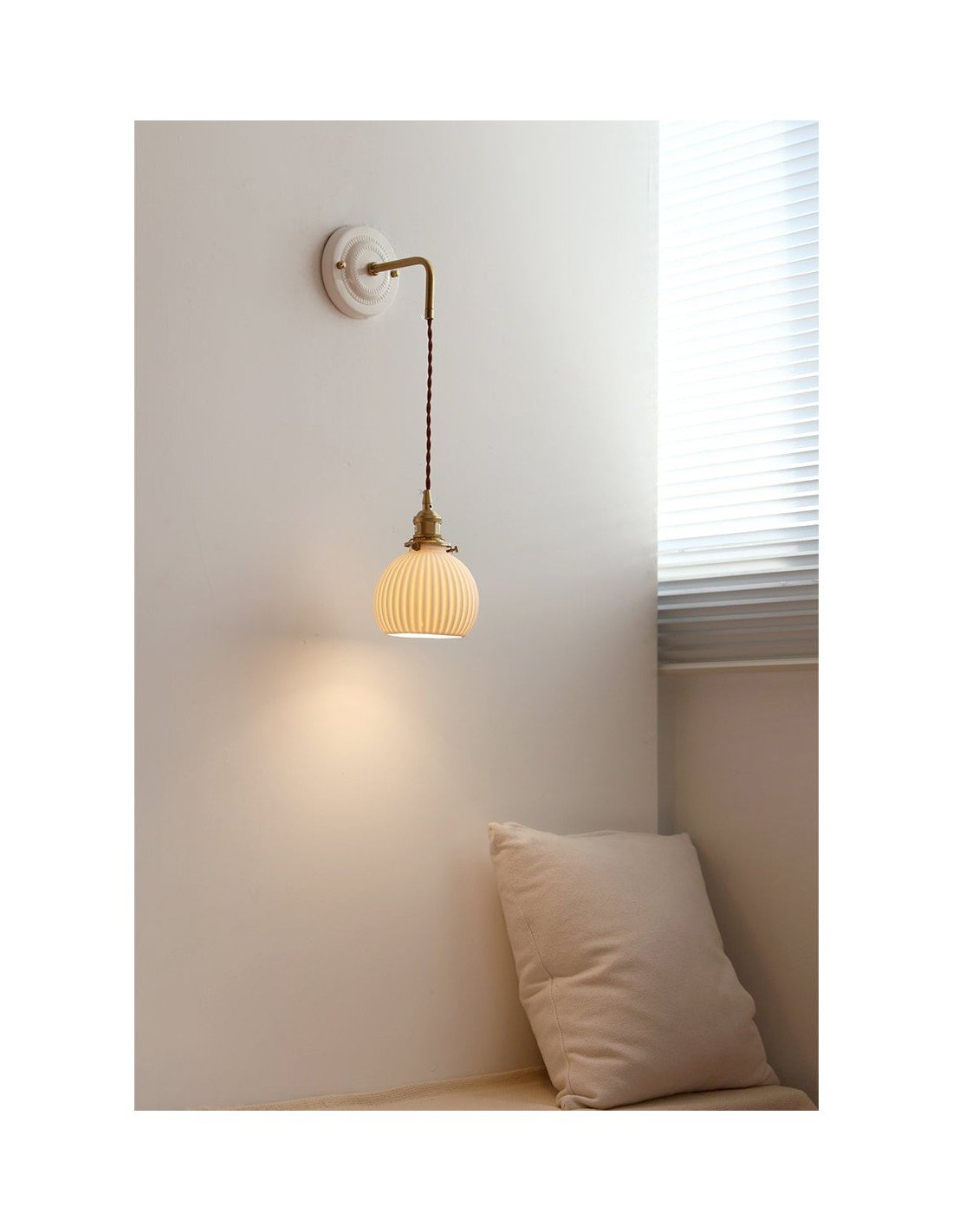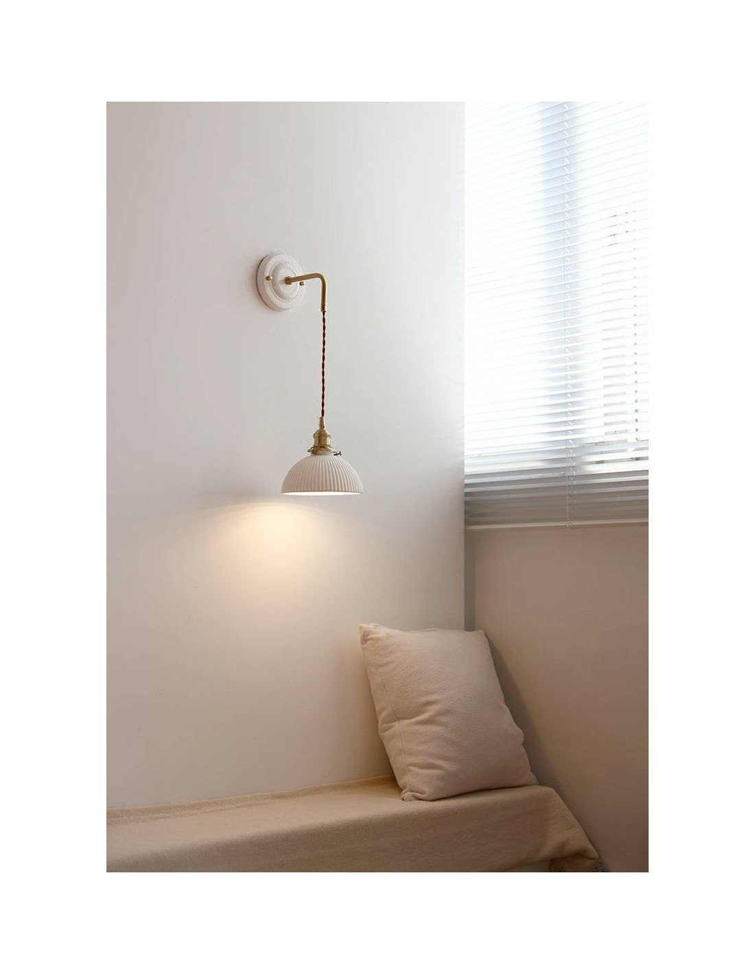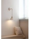 Applique murale décorative avec abat-jour en céramique et plaque murale. Personnalisable, elle peut être branchée sur secteur ou à tirette. Sa couleur blanc neutre s'intègre parfaitement à tous les espaces. Sa finition laiton apportera une touche d'élégance à tout décor moderne.