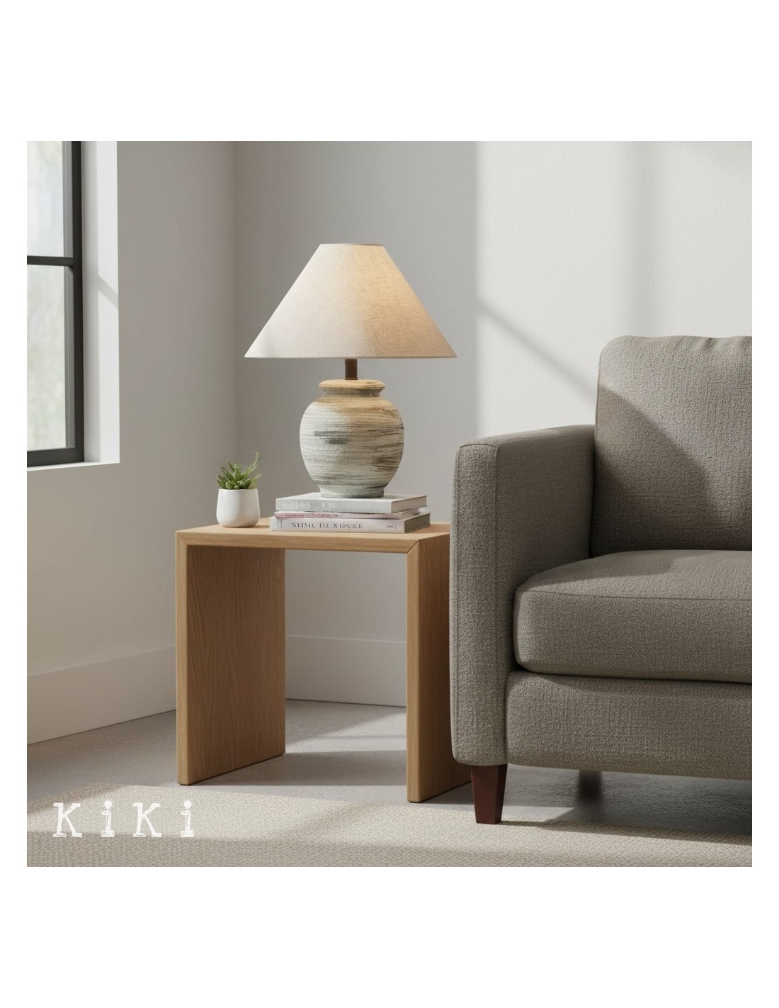 Cette Ceravine lampe de table décorative à base céramique associe une esthétique naturelle inspirée du style wabi sabi à un design intérieur raffiné. Sa base sculptée à texture subtile est surmontée d’un abat jour conique en tissu, créant un équilibre harmonieux entre matière brute et douceur visuelle.