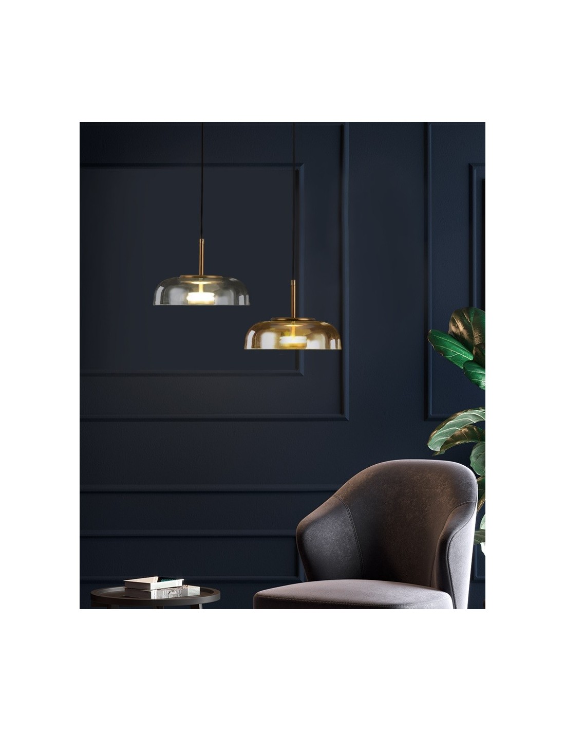 La lampe à suspension en verre classique est un design minimaliste. Avec la forme de l'abat-jour, la lampe est comme un verre à vin inversé. Elle est faite de matériaux mentaux et en verre de haute qualité, et il existe 3 finitions que vous pouvez choisir : gris fumé, ambre et transparent. Le designer utilise les éléments simples et les matériaux de haute qualité pour le créer sincèrement. La lampe conserve les éléments essentiels de la lampe, aucune décoration gênante pour des lignes gracieuses souligne la forme, la technologie de source lumineuse sans éblouissement, un éclairage doux, et donc l'ensemble de la lampe était riche en sens du design minimaliste. La lampe à suspension en verre classique a une spécification, qui peut être suspendue individuellement ou combinée. C'est un choix idéal pour le salon, la cuisine, la chambre, le bureau, etc. Lorsque la lampe à suspension en verre classique est suspendue au-dessus du plafond, elle émet une lumière chaude et confortable, ce qui est un autre spectacle unique. En tant que lampe fonctionnelle, elle ajoutera de l'éclat à votre espace et laissera certainement une impression profonde sur vos invités et créera une atmosphère confortable pour vous.