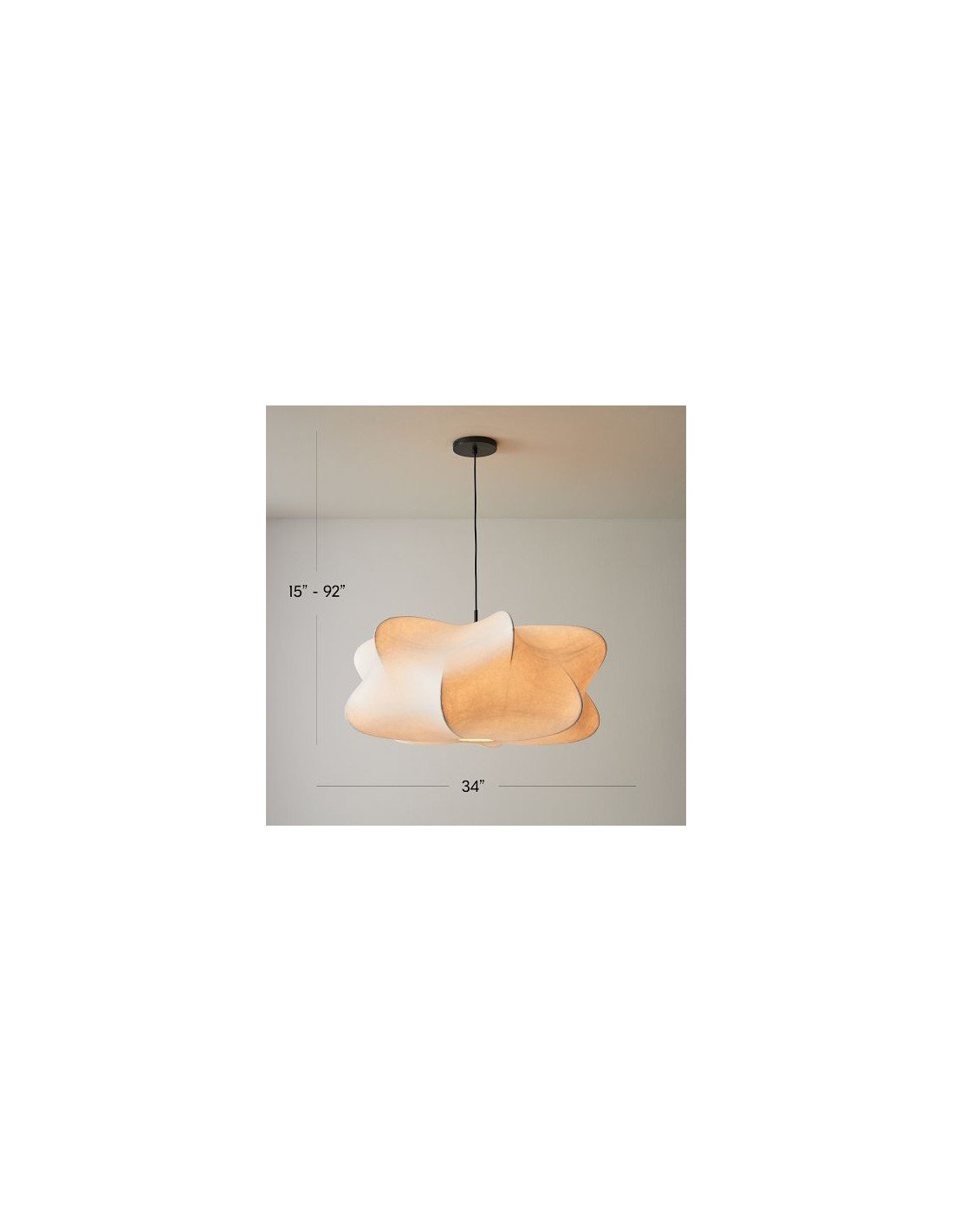 - Dimensions totales : 34" de diamètre x 15"–92" de hauteur/86 cm de diamètre x 38–234 cm de hauteur.