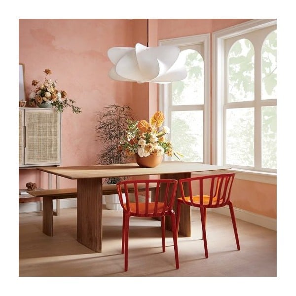 Inspirée par la forme organique d'un cocon, cette suspension associe un abat-jour en polymère résistant à une structure en bronze foncé. Conçue pour une installation polyvalente, elle diffuse une lumière douce et chaleureuse, idéale pour les salles à manger modernes, les îlots de cuisine ou les coins lecture cosy.