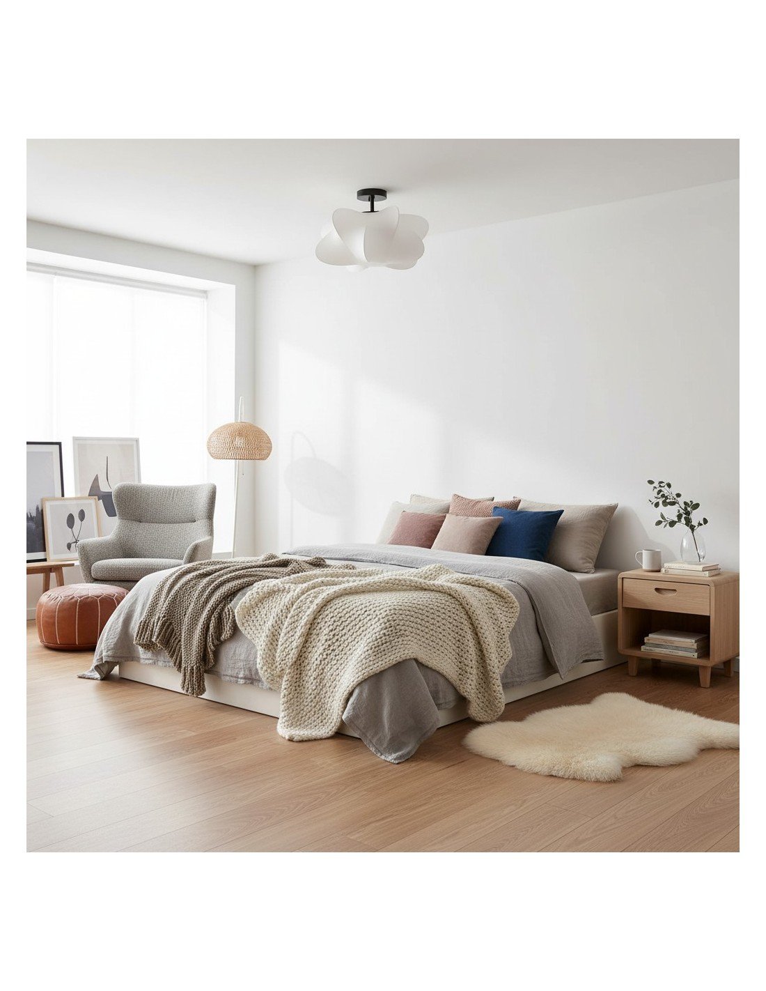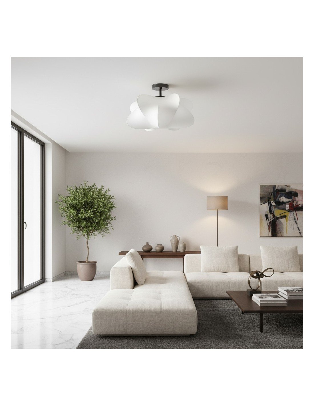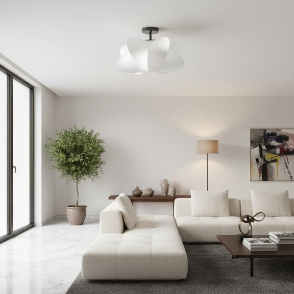 - Abat-jour en polymère en finition blanche.