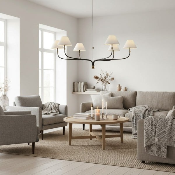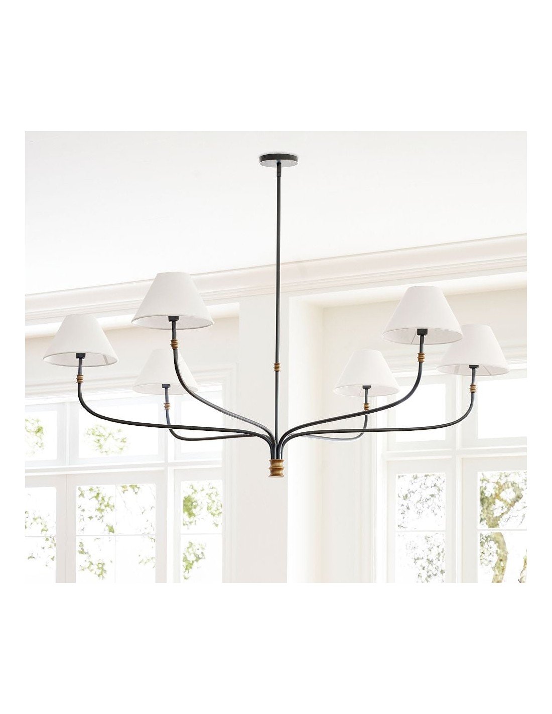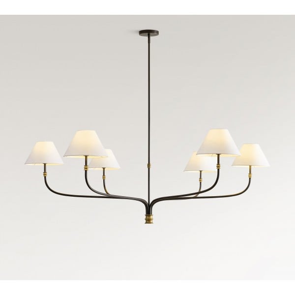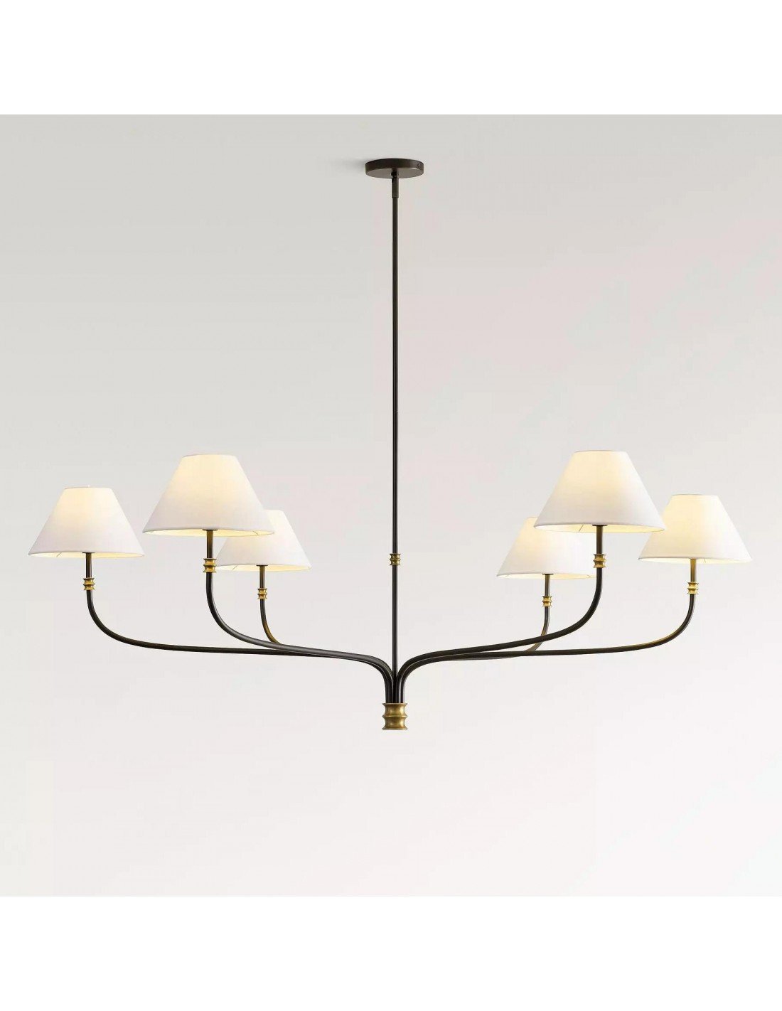 Le lustre rond classique allie savoir-faire artisanal et design élégant. Fabriqué en fer avec une riche finition bronze et doté d'abat-jour en lin blanc doux, il diffuse une lumière chaleureuse et accueillante dans les salles à manger, les salons et les entrées, sublimant les intérieurs contemporains comme traditionnels.