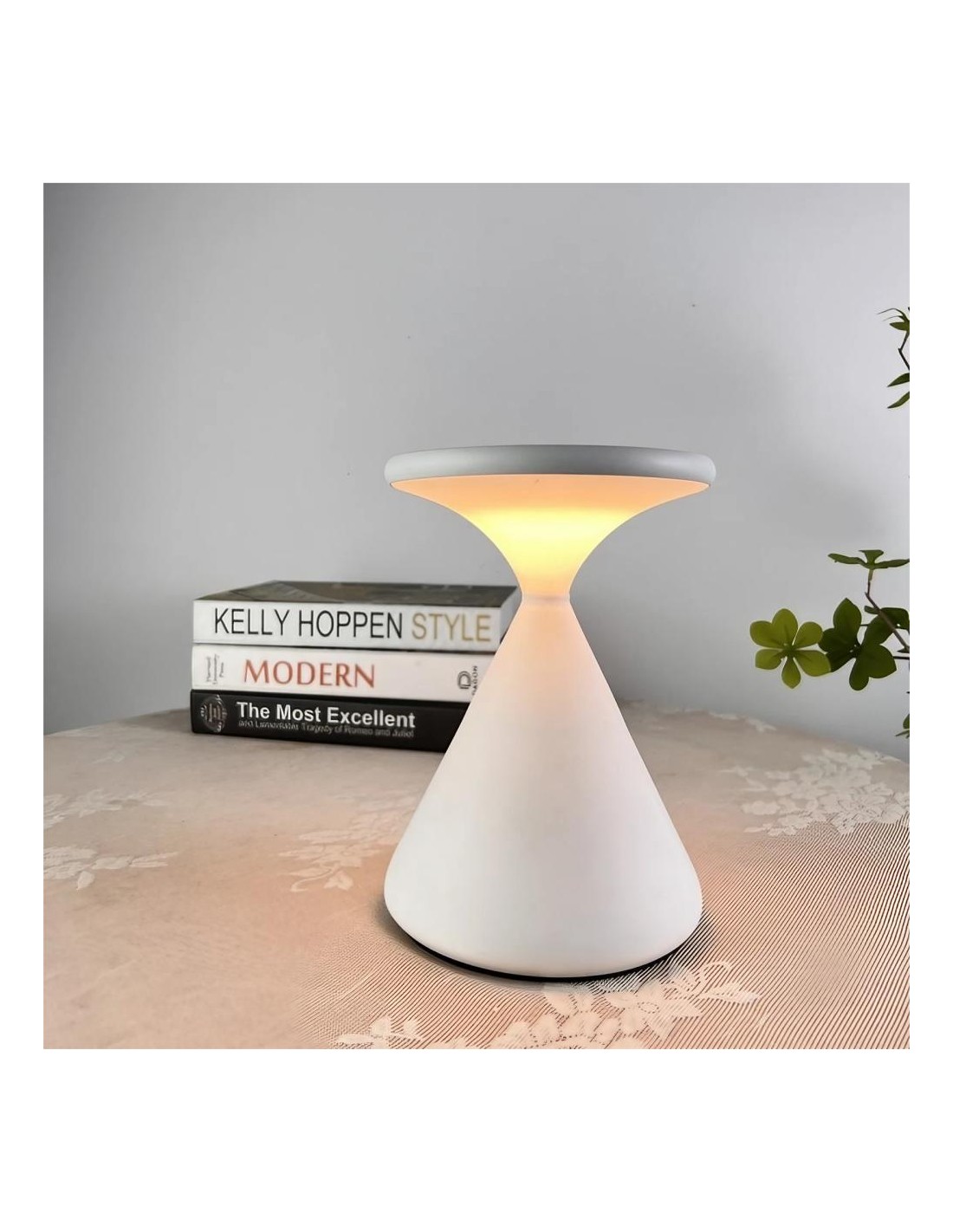 La lampe de table portable Cone Hourglass est une lampe de bureau entièrement portable et rechargeable qui présente un design élégant et convivial. Il est doté d'une sensibilité tactile pour une gradation sans effort, offrant une expérience tactile fluide.