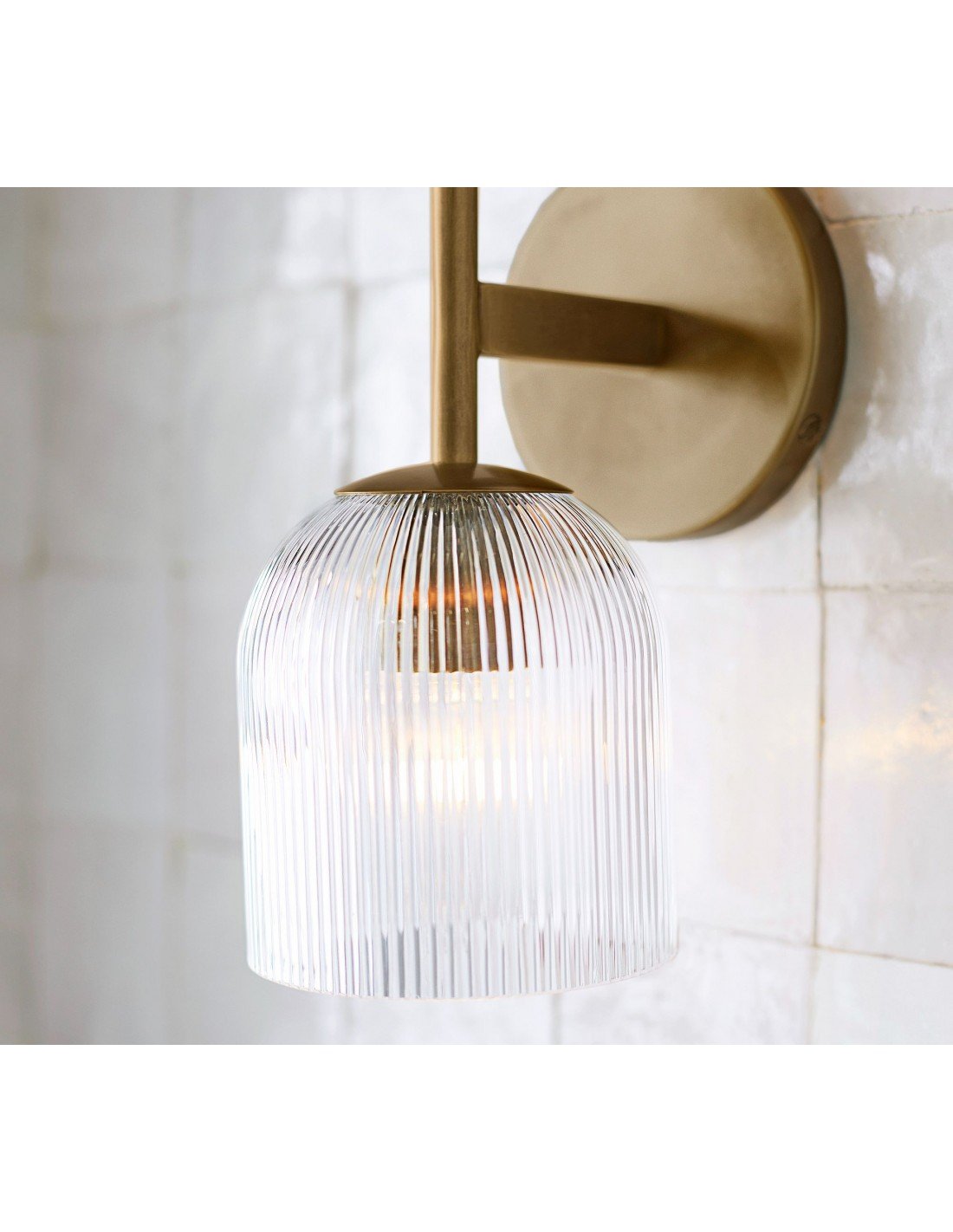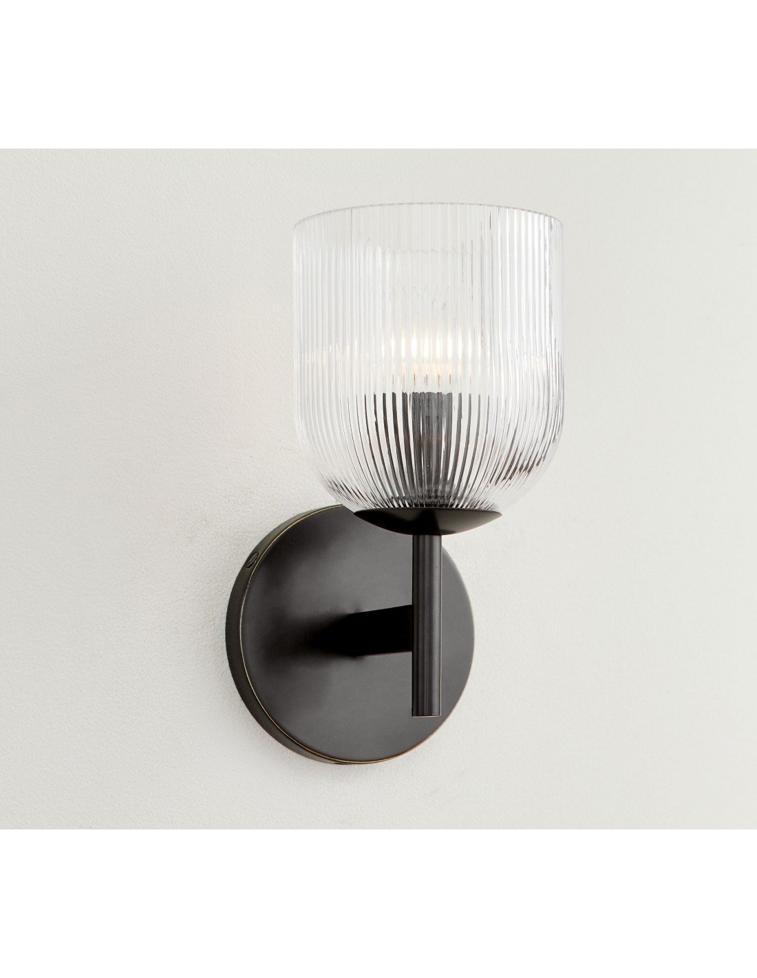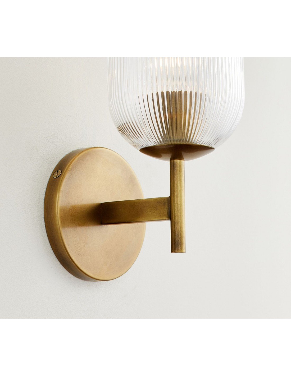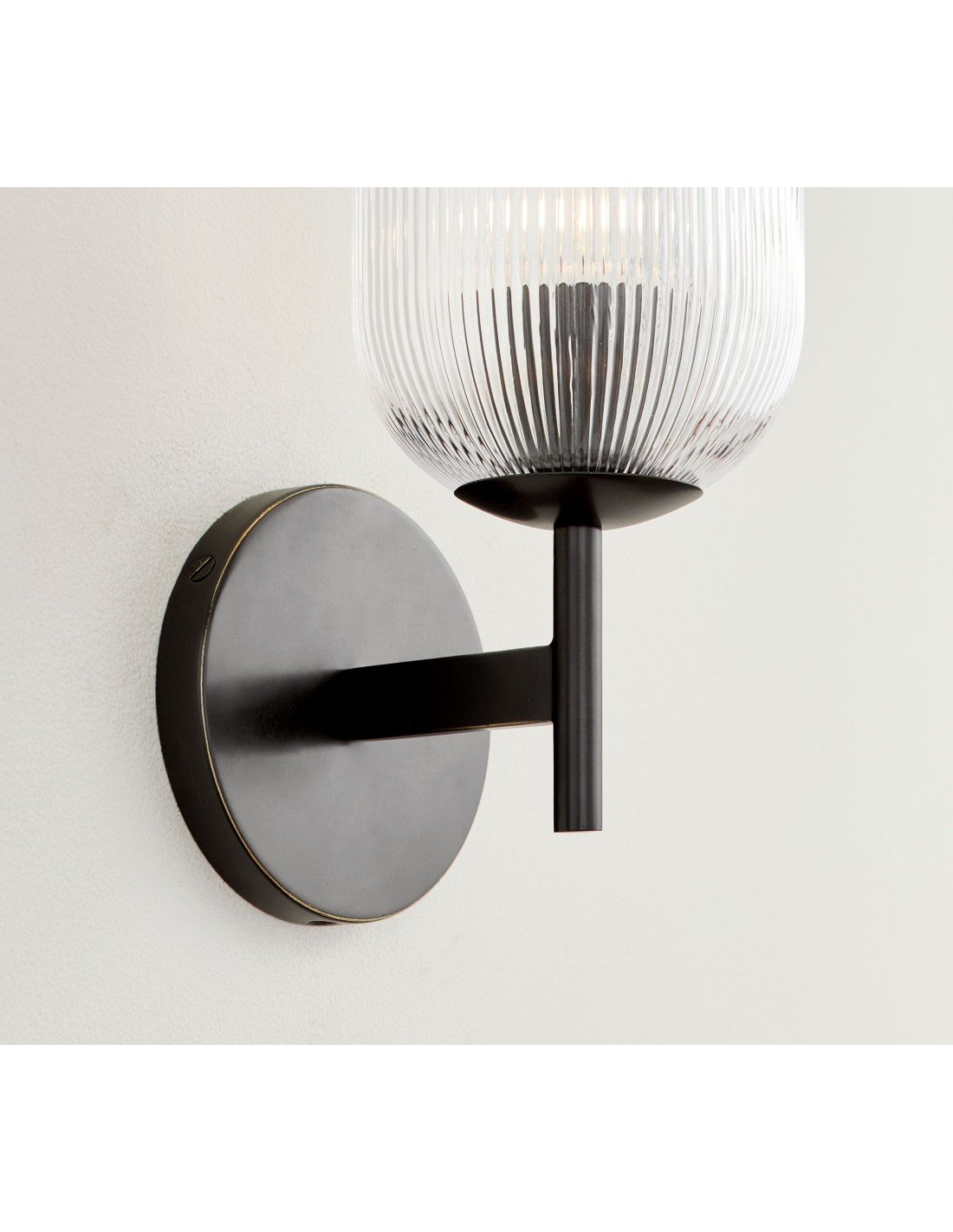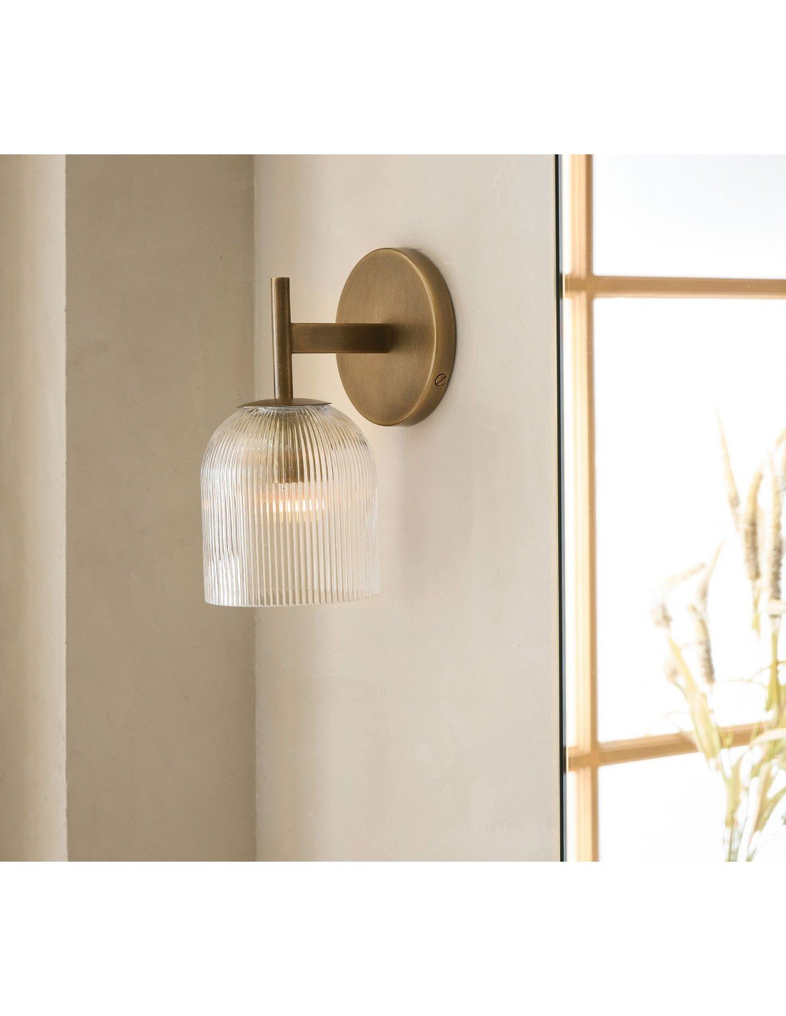 Sublimez n'importe quel espace avec l'applique Bravira en verre strié, conçue pour allier style et fonctionnalité. Fabriquée en fer, elle est disponible en finitions bronze antique, nickel satiné ou laiton vieilli, avec un abat-jour en verre transparent soufflé à la main. Idéale comme applique murale pour une chambre, un couloir ou comme élément décoratif dans un salon.