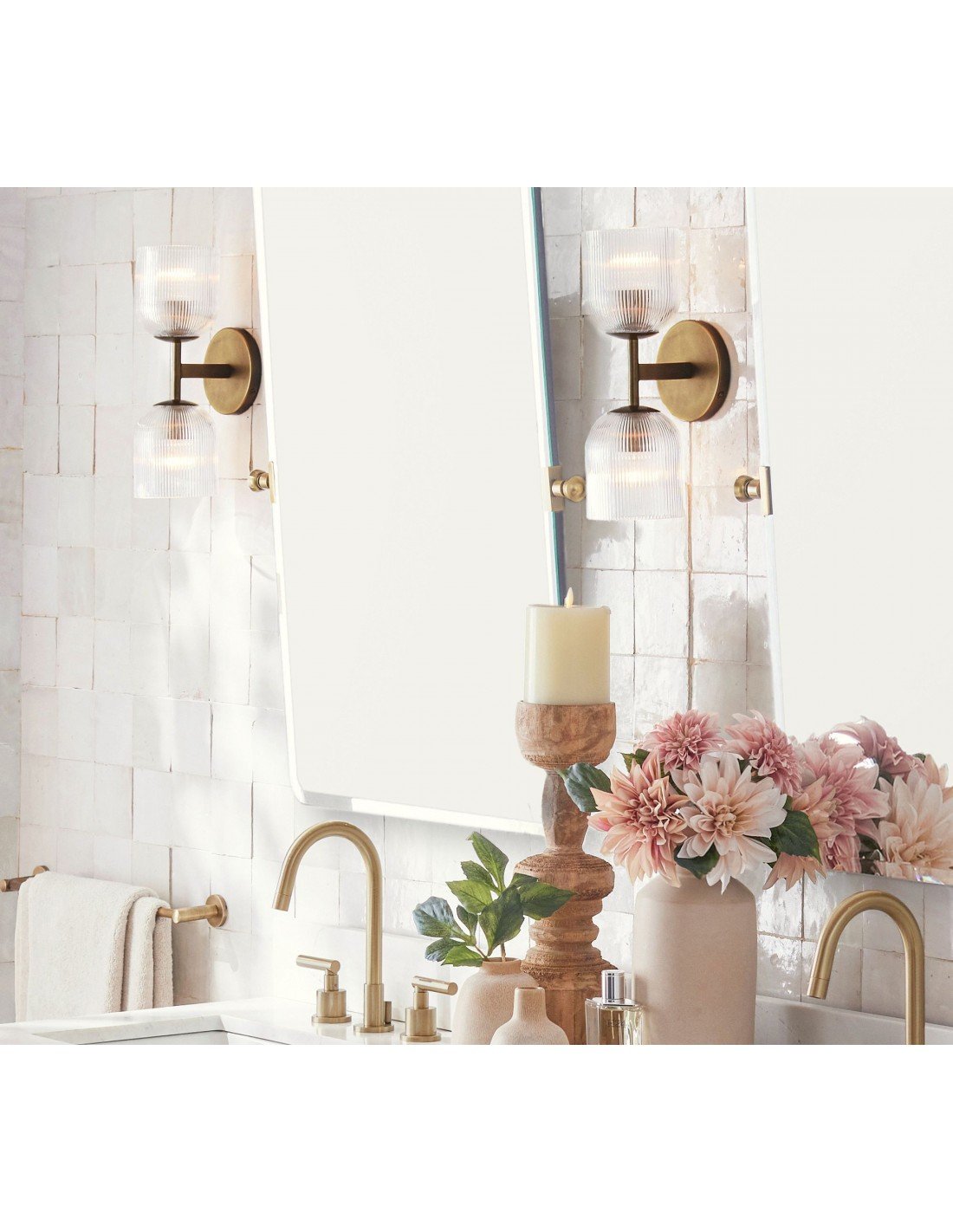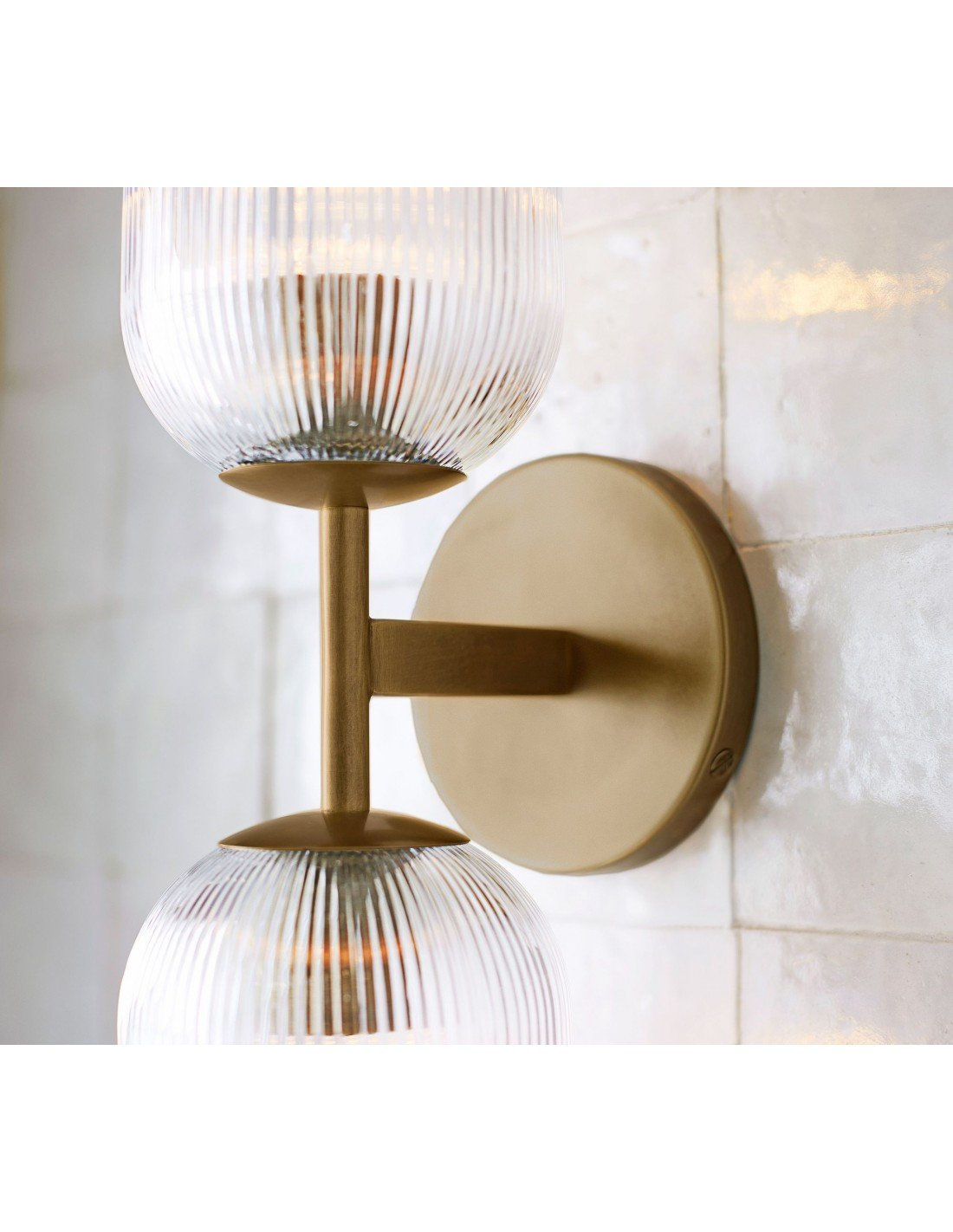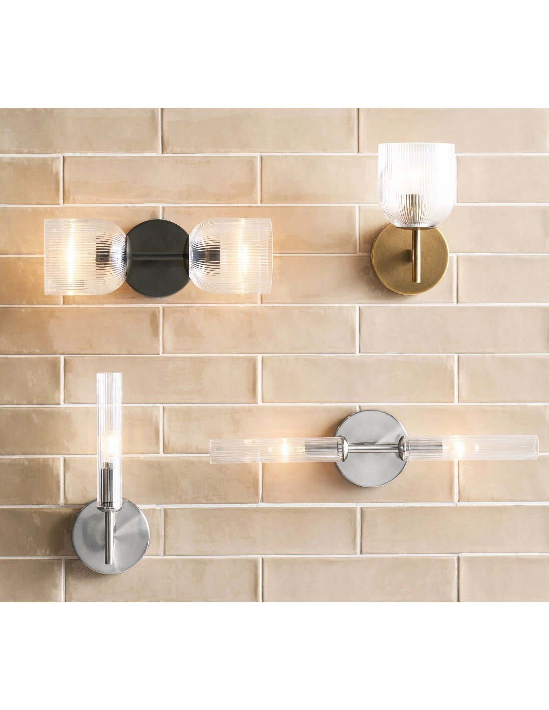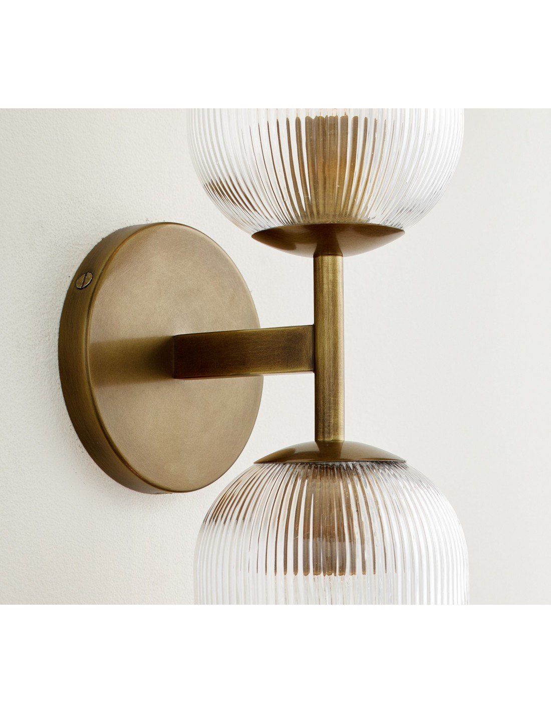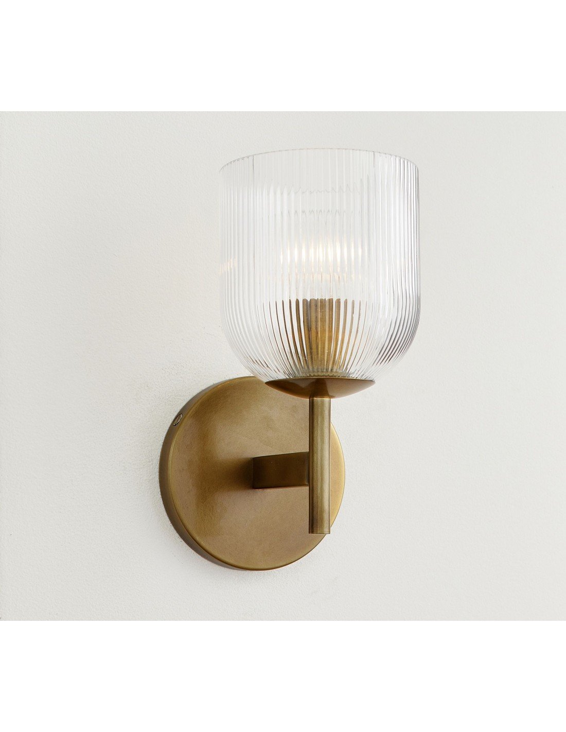 Sublimez n'importe quel espace avec l'applique Bravira en verre strié, conçue pour allier style et fonctionnalité. Fabriquée en fer, elle est disponible en finitions bronze antique, nickel satiné ou laiton vieilli, avec un abat-jour en verre transparent soufflé à la main. Idéale comme applique murale pour une chambre, un couloir ou comme élément décoratif dans un salon.
