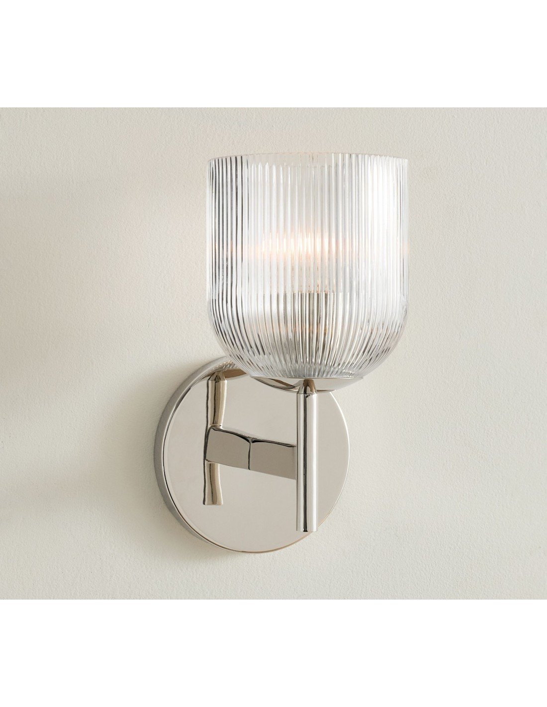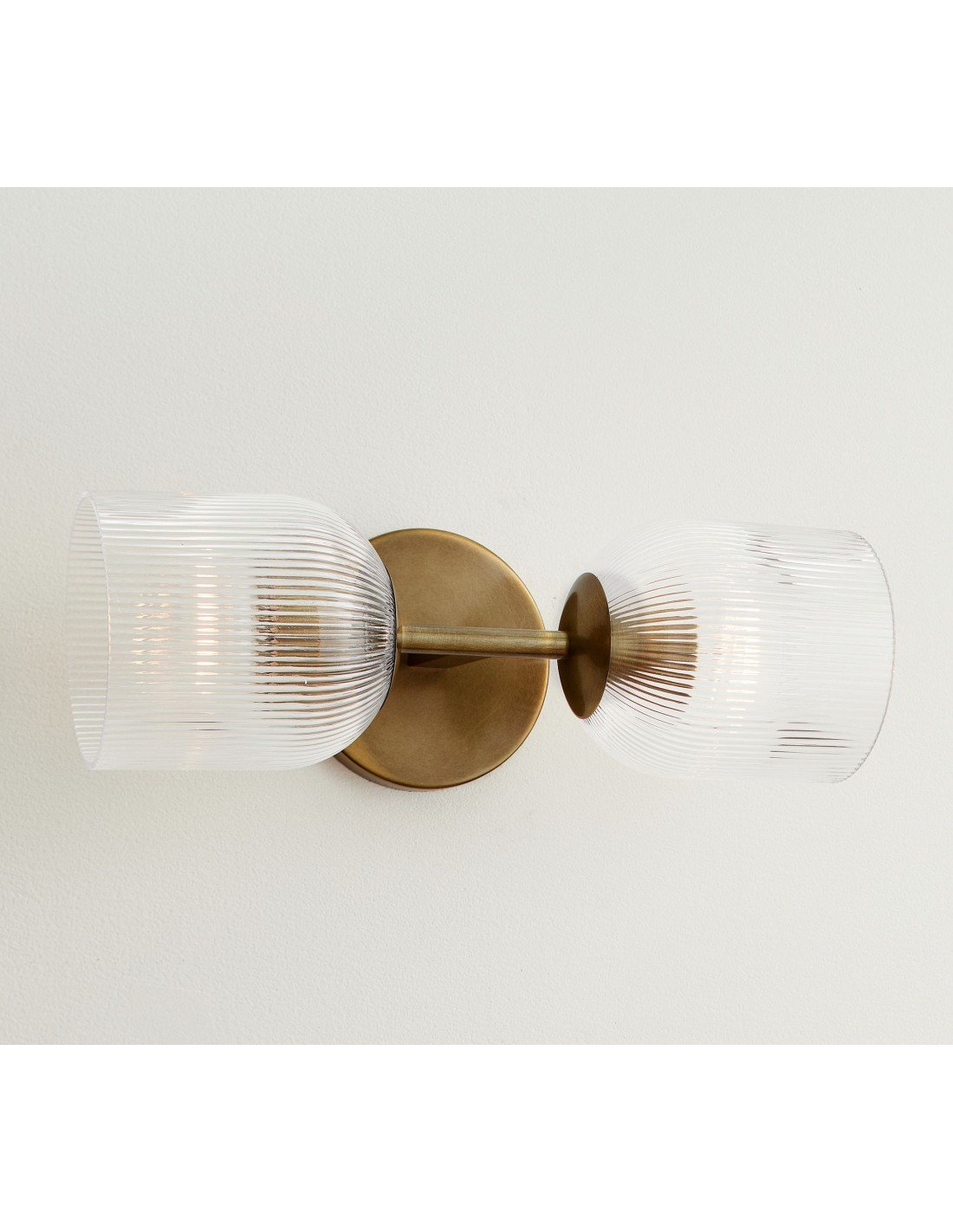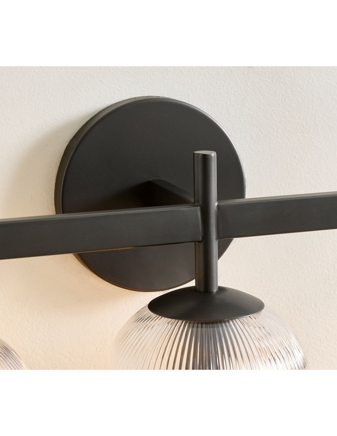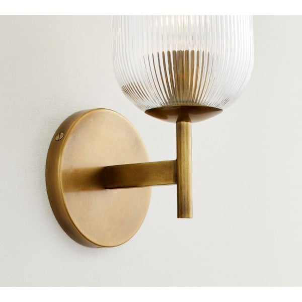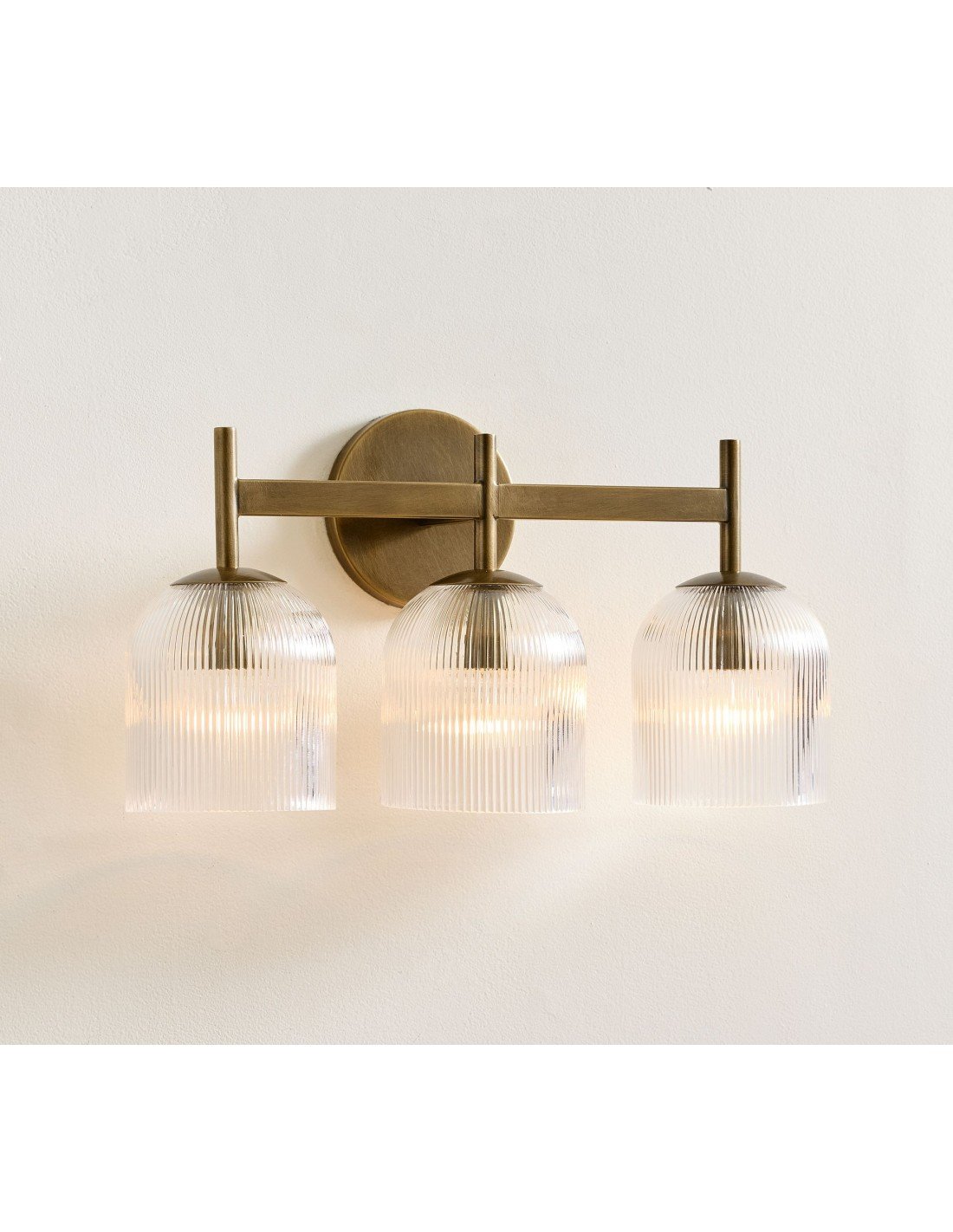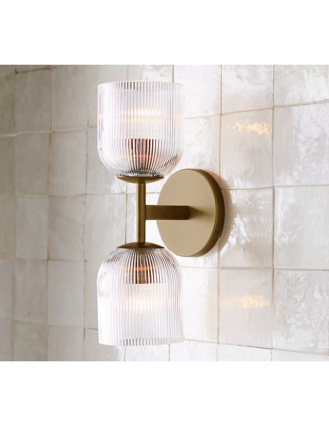 Sublimez n'importe quel espace avec l'applique Bravira en verre strié, conçue pour allier style et fonctionnalité. Fabriquée en fer, elle est disponible en finitions bronze antique, nickel satiné ou laiton vieilli, avec un abat-jour en verre transparent soufflé à la main. Idéale comme applique murale pour une chambre, un couloir ou comme élément décoratif dans un salon.