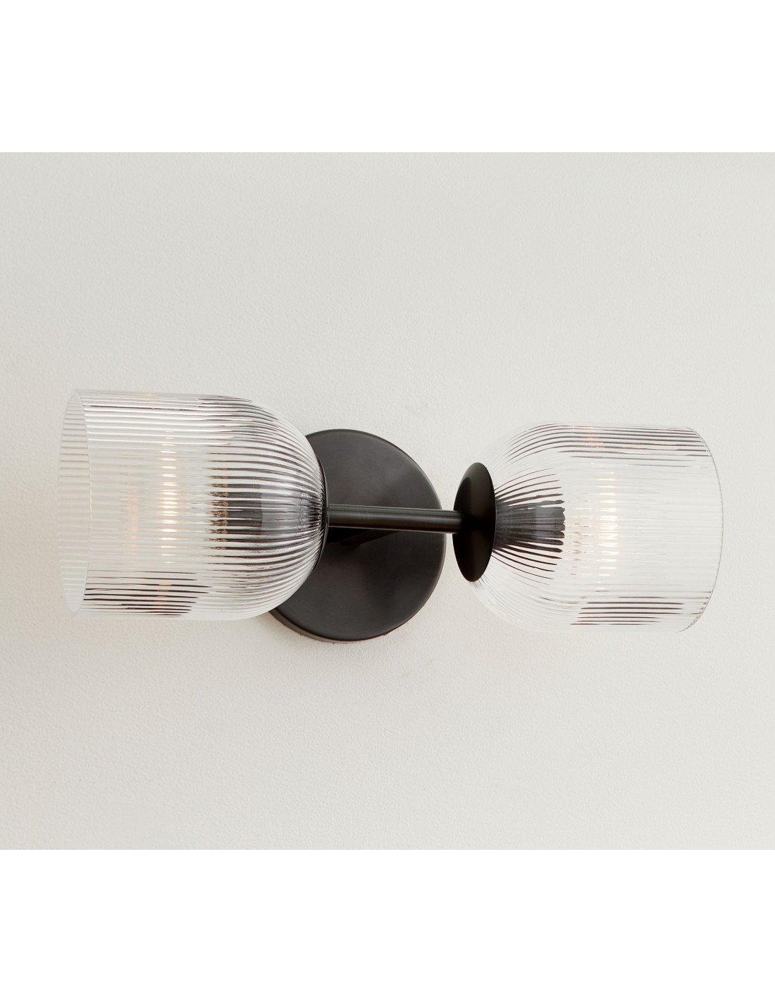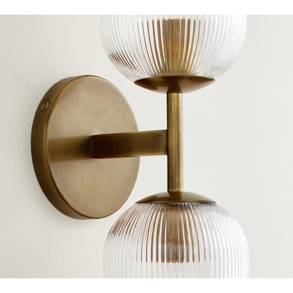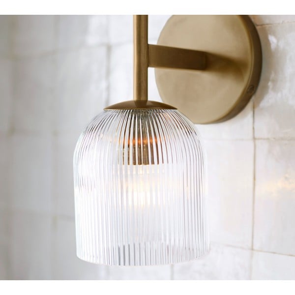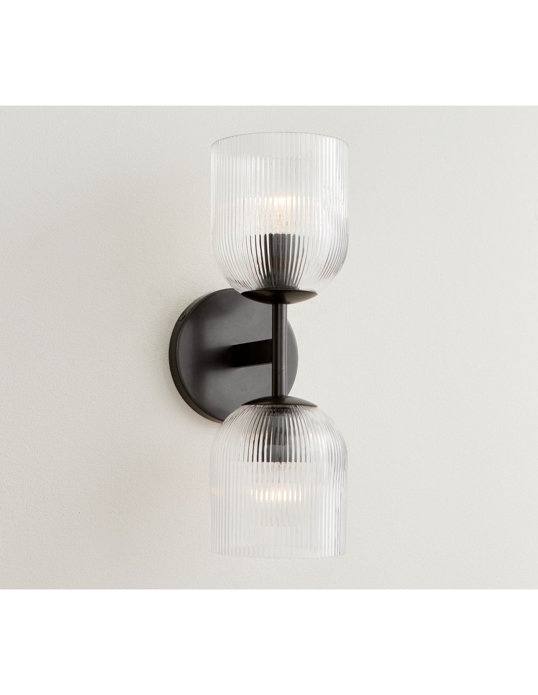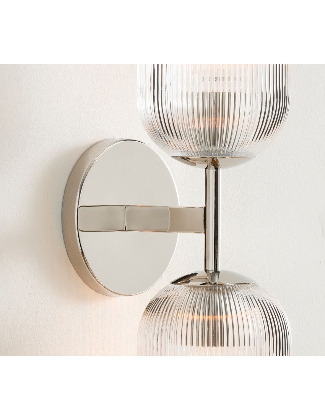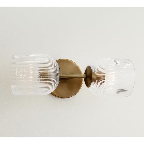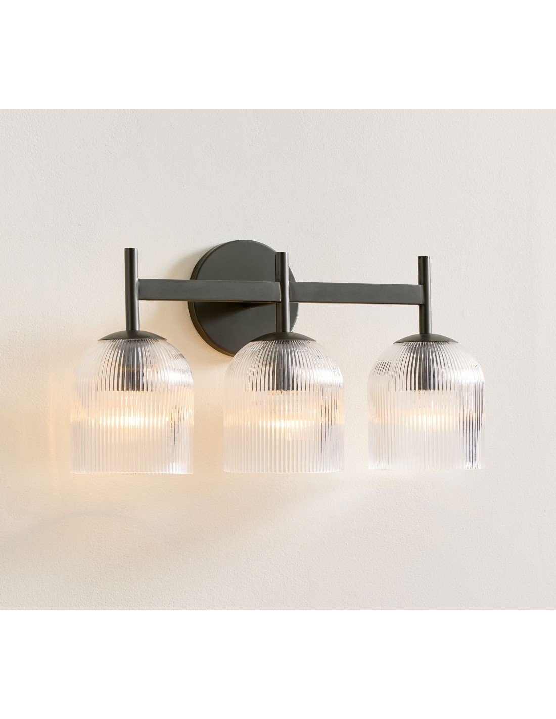 Sublimez n'importe quel espace avec l'applique Bravira en verre strié, conçue pour allier style et fonctionnalité. Fabriquée en fer, elle est disponible en finitions bronze antique, nickel satiné ou laiton vieilli, avec un abat-jour en verre transparent soufflé à la main. Idéale comme applique murale pour une chambre, un couloir ou comme élément décoratif dans un salon.